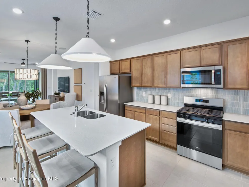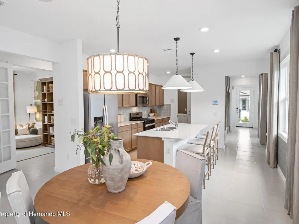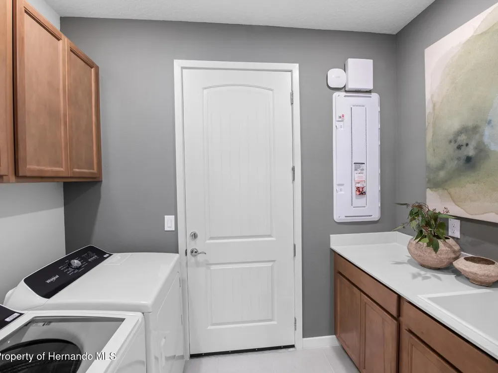 Enjoy all the benefits of a new construction home and experience a new level of retirement living at our newest Del Webb community, Del Webb River Reserve, with a free Golf Cart included. This brand-new active adult community represents everything that your next chapter in life should be about: Finding a place to belong and living life the way you want. Envision a thoughtfully crafted, resort-style residence nestled in nature with expansive amenities and vibrant gathering areas that will foster lifelong connections. This gated, active adult community is located 30 minutes north of Downtown Tampa. With 2 bedrooms, 2 baths, and a versatile enclosed flex room, the Hallmark home design offers an open, consumer-inspired, single-story floor plan and the upgraded finishes you've been looking for. The designer kitchen with a center island features stylish white cabinets, 3cm quartz countertops with a tiled backsplash, and stainless steel Whirlpool appliances, including a built-in oven and microwave, a stovetop with a range hood, dishwasher and refrigerator. The bathrooms have white cabinets and 3cm quartz countertops. At the rear of the home, the private Owner's suite features a walk-in closet and an Owner's bath with a generous vanity, dual sinks, and a walk-in shower with niche. There is luxury vinyl plank flooring in the main living areas and flex room, 18''x18'' tile in the bathrooms and laundry room and stain-resistant carpet in the bedrooms. Additional upgrades and features include a patio extension with screen enclosure, upgraded laundry room with built-in white cabinets and Whirlpool washer and dryer, a pocket sliding glass door from the gathering room, LED downlights in the gathering room, 2'' faux wood blinds in whole home, and a Smart Home technology package with a video doorbell. Enjoy peace of mind with Pulte's transferable, 10-year Limited Structural Warranty that covers materials and workmanship in the 1st year, workability of plumbing, electrical, HVAC, and other mechanical systems through the 2nd year, various types of water infiltration and internal leaks through the 5th year, and the structural integrity of the home through the 10th year. Plus, we're currently offering limited-time incentives and below-market rates!
