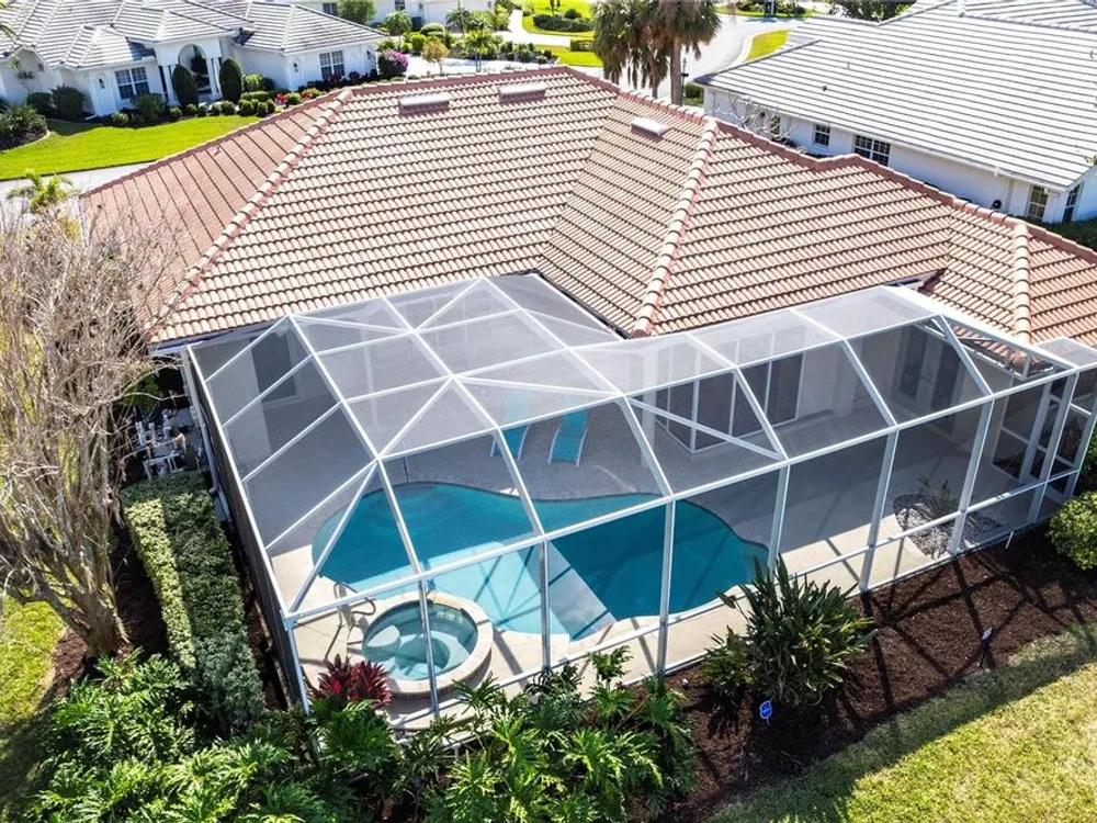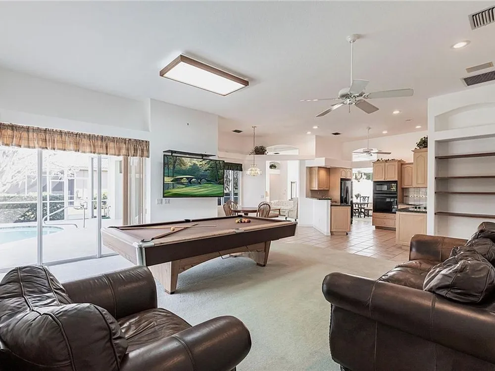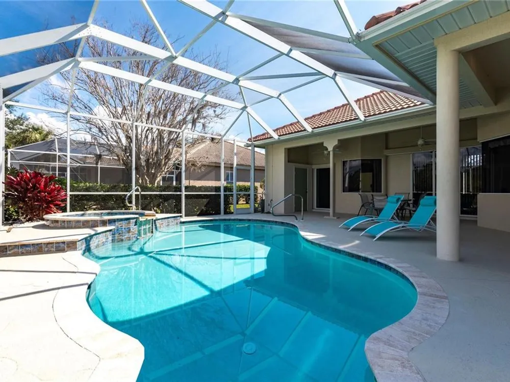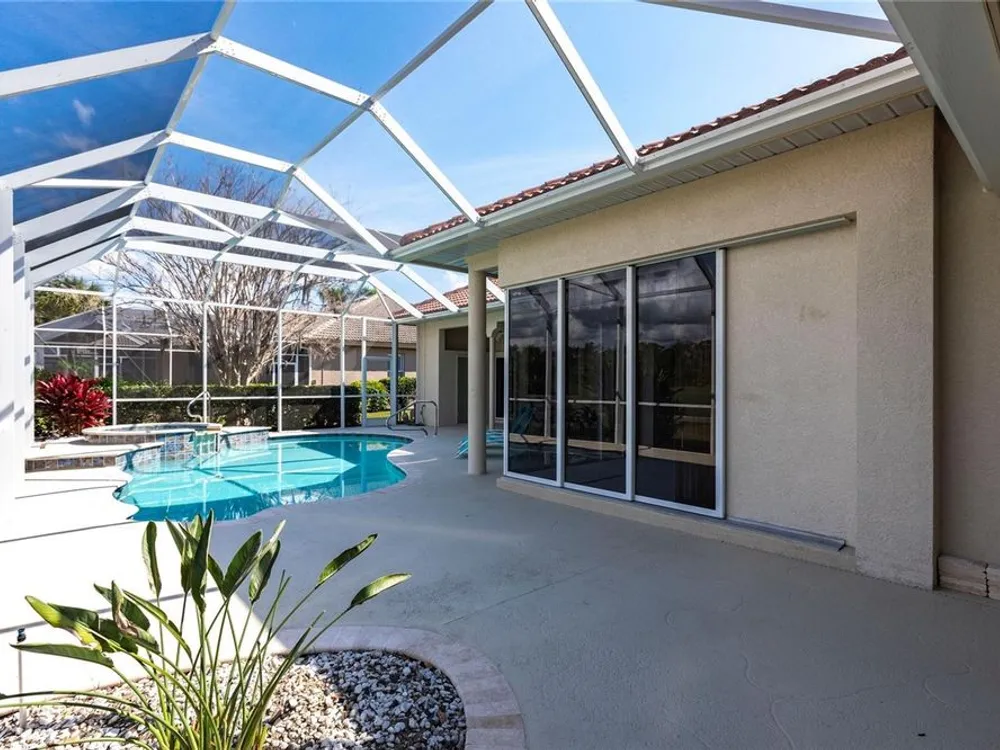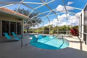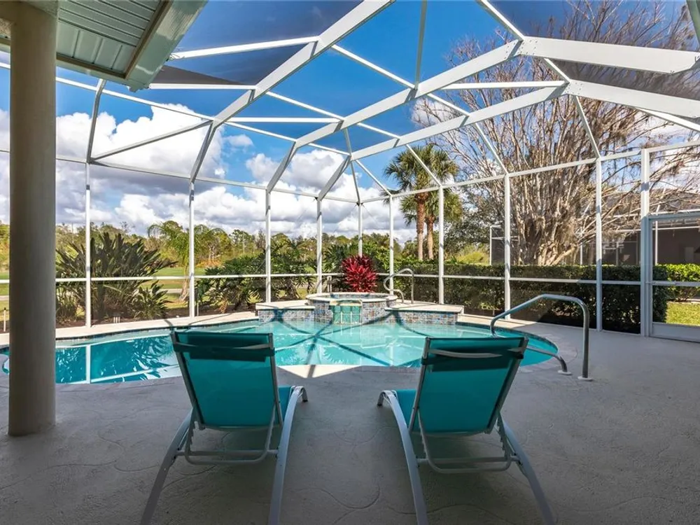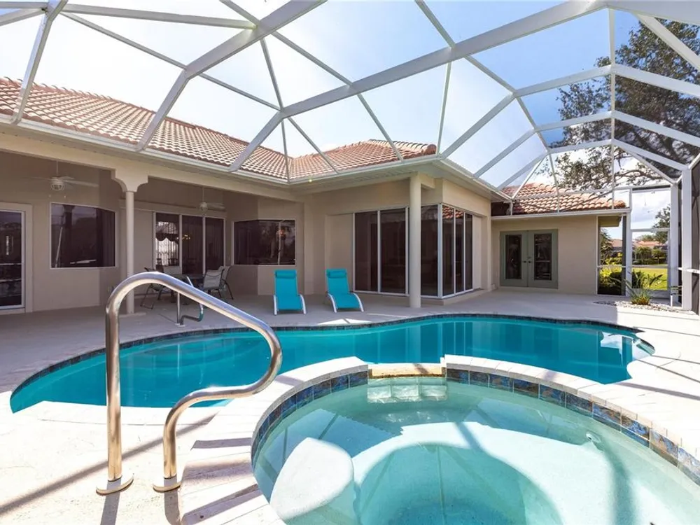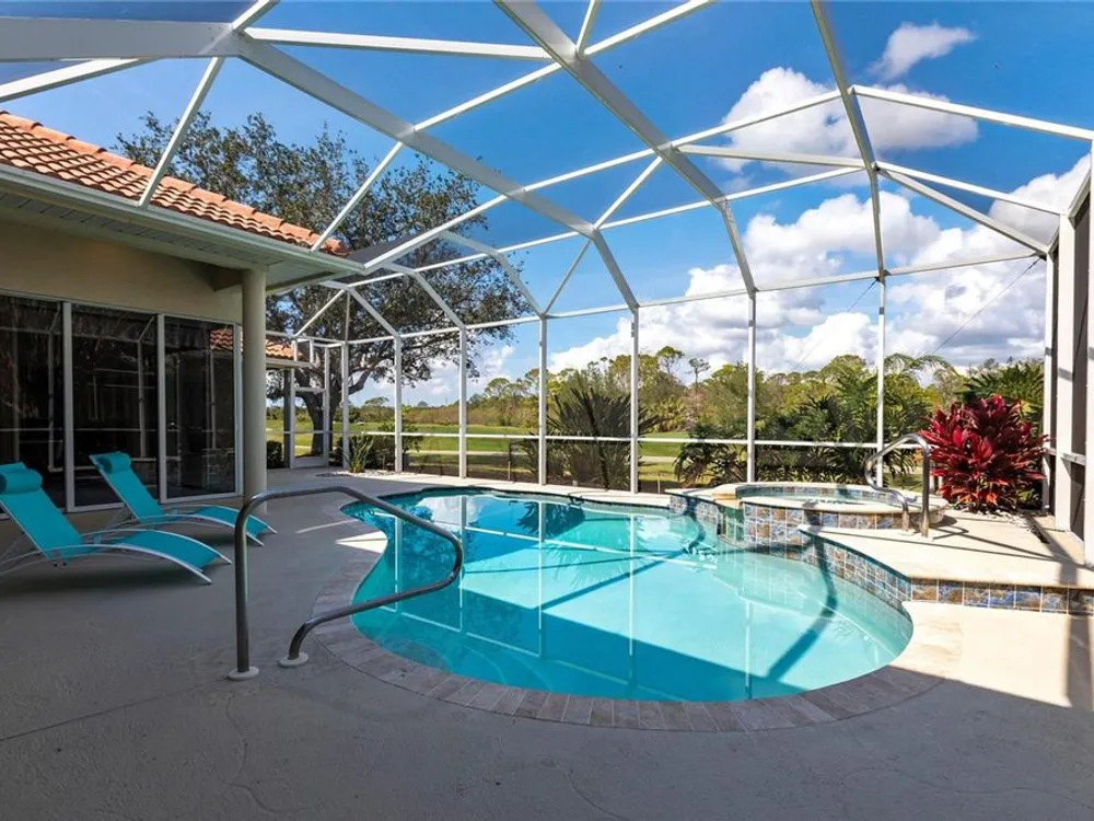 FURNISHED and Nestled along the lush fairway of the Par 5 3rd hole at the highly acclaimed Riverwood Golf Course, this 1997-built estate home offers four bedrooms, two bathrooms, pool and a two-car side-entry garage with a convenient rear golf cart door—perfect for the golf enthusiast. Spanning nearly 2,400 square feet, the residence showcases a timeless design that can be enjoyed as-is or updated to reflect today’s modern styles. Step inside to find a traditional layout featuring a formal living and dining room, both exuding the charm and sophistication of the era, complete with a tray ceiling and sliding glass doors that open directly to the lanai and pool. The true heart of the home is the expansive family room, seamlessly connected to the kitchen and dinette—an inviting space ideal for everyday living and entertaining. The kitchen features raised panel cabinetry with upper crown molding, tiled backsplash, suite of modern appliances including cooktop and built in microwave and oven. Walls of corner sliding glass doors blur the line between indoors and out, opening fully to a spacious screened lanai. Here, a sparkling pool with raised spa and spillway creates your own private oasis for soaking up the Florida sunshine. The primary suite is a private retreat, complete with direct access to the lanai, an oversized walk-in closet, and a spa-style bath featuring a soaking tub, glass-block walk-in shower, and dual vanities. The guest suite includes two generously sized bedrooms connected by a convenient Jack & Jill bath, while a fourth bedroom offers flexibility as an office, den, or hobby space. Additional thoughtful details include a dedicated hot water heater for the primary suite, updated roof, AC system, and pool cage—all providing peace of mind. Life in Riverwood is about more than just a home—it’s a resort lifestyle. Beyond your doorstep, enjoy championship golf on the Golfer’s Choice 2021 #1 Florida Course and Top 15 U.S. Courses, plus a vibrant Activity Center Campus featuring lap and resort-style pools, a fitness center, pickleball and tennis courts, croquet, bocce, art studios, library, and countless social events. For added amenities, the Riverwood Golf Club, Private Beach Club on Manasota Key, and RV/Boat storage are also available by membership. Ideally located near the Tampa Bay Rays and Atlanta Braves Spring Training facilities, world-class Gulf beaches, Charlotte Harbor, the Myakka River, Punta Gorda, Englewood, and Boca Grande—Riverwood is where Florida’s natural beauty meets resort-style living. Don’t miss this opportunity to make this slice of paradise your own. - **PLEASE ENJOY THE 3D INTERACTIVE VIRTUAL TOUR ASSOCIATED WITH THIS LISTING**