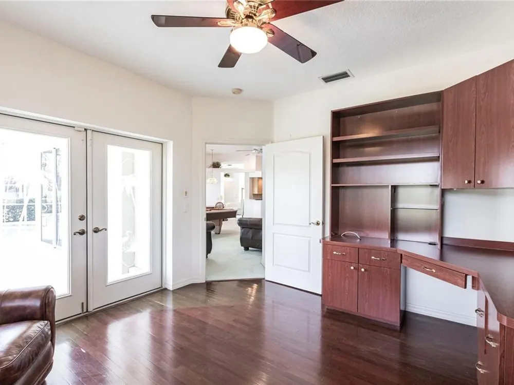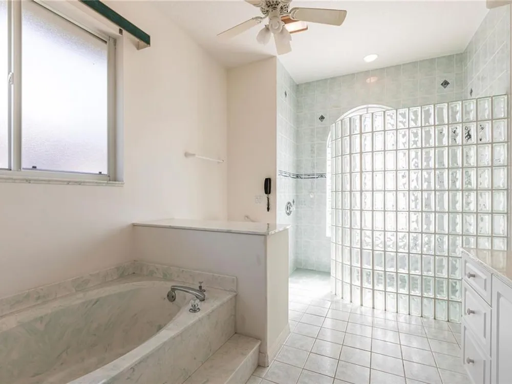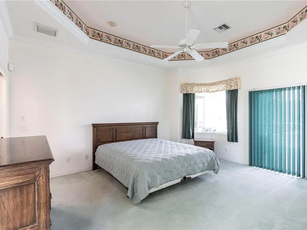 - Built-in Features, Ceiling Fan(s), Crown Molding, High Ceilings, Kitchen/Family Room Combo, Open Floorplan, Main Level Primary, Split Bedrooms, Thermostat, Tray Ceiling(s), Walk-In Closet(s)