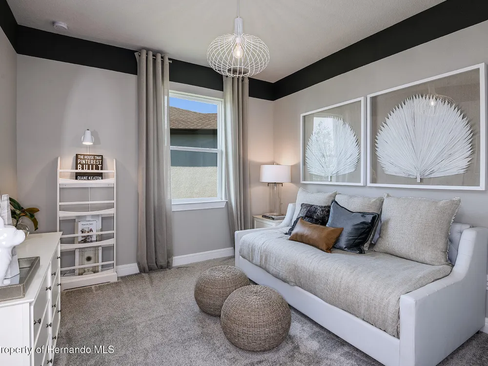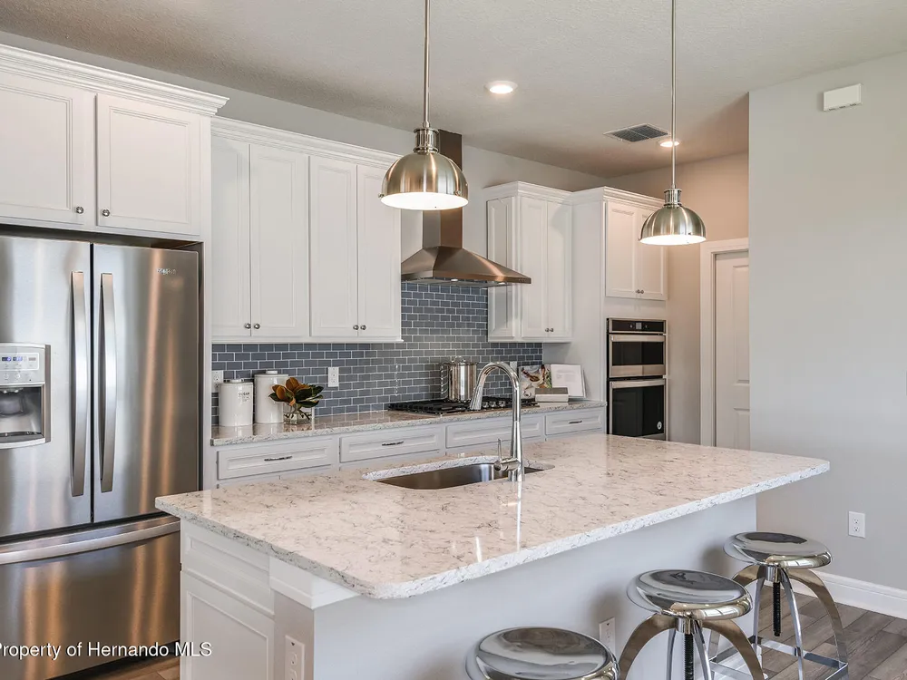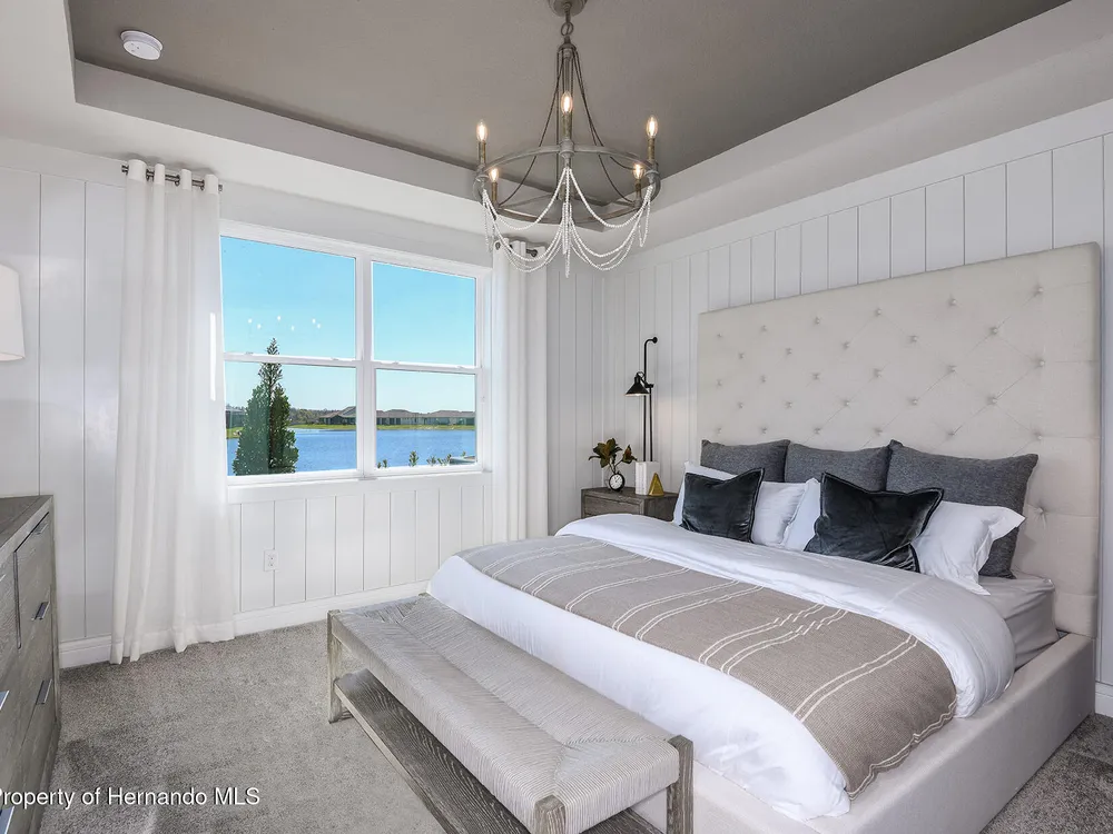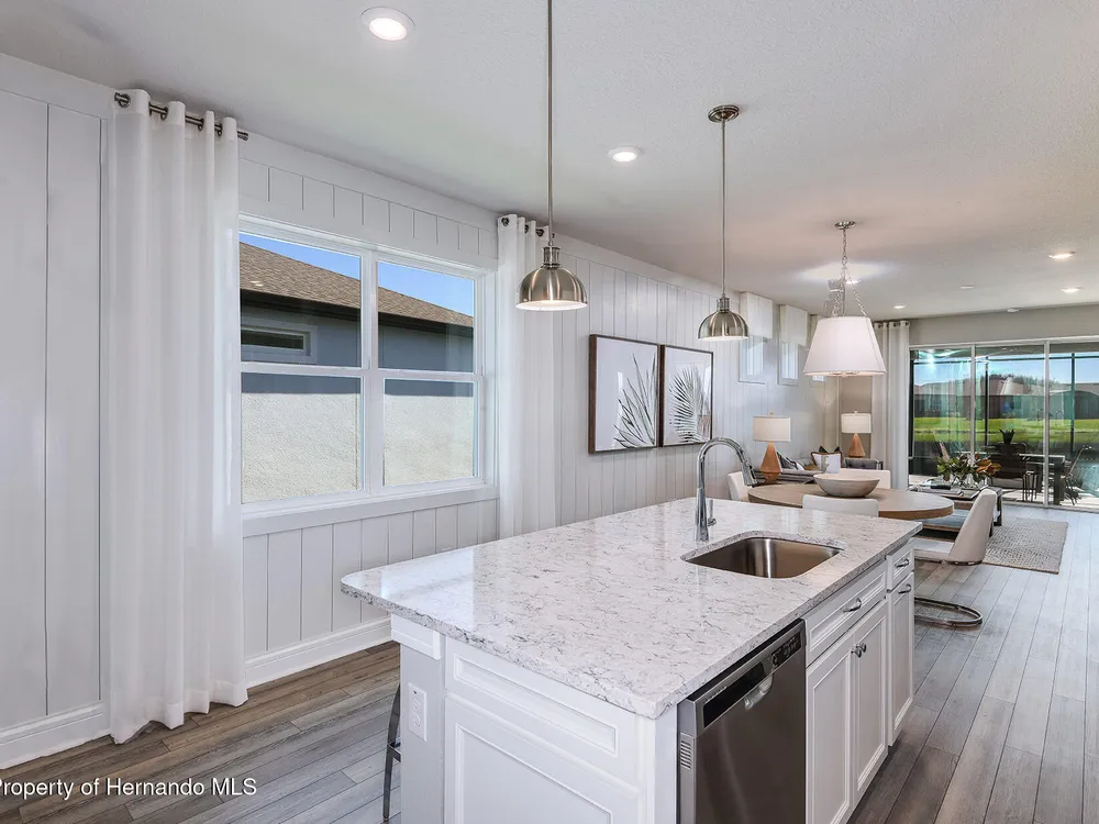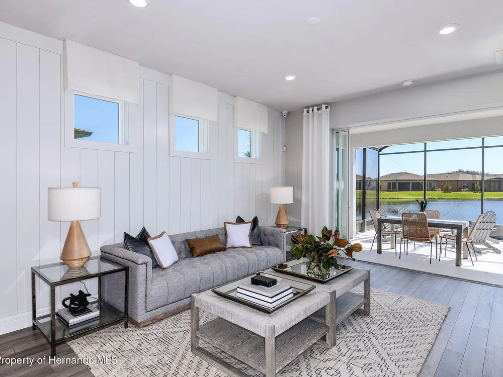 Enjoy all the benefits of a new construction home and experience a new level of retirement living at our newest Del Webb community, Del Webb River Reserve, with a free Golf Cart included. This brand-new active adult community represents everything that your next chapter in life should be about: Finding a place to belong and living life the way you want. Envision a thoughtfully crafted, resort-style residence nestled in nature with expansive amenities and vibrant gathering areas that will foster lifelong connections. This gated, active adult community is located 30 minutes north of Downtown Tampa. With 2 bedrooms, 2 baths, and a versatile enclosed flex room, the Hallmark home design offers an open, consumer-inspired, single-story floor plan and the upgraded finishes you've been looking for. The designer kitchen with a center island features stylish white cabinets, 3cm quartz countertops with 3''x12'' tiled backsplash, and stainless steel Whirlpool appliances, including microwave, range, dishwasher and refrigerator. The bathrooms have white cabinets and quartz countertops. At the rear of the home, the private Owner's suite features a walk-in closet and an Owner's bath with a generous vanity, dual sinks, and a walk-in shower with heavy glass door. There is luxury vinyl plank flooring in the main living areas, flex room, 18'' x 18'' tile in the bathrooms and laundry room and and stain-resistant carpet in the bedrooms. Additional upgrades and features include glass insert at front door, built-in cabinets in the laundry room with Whirlpool washer and dryer, a pocket sliding glass door at the gathering room, LED downlights in the gathering room, 2'' faux wood blinds in whole home, and a Smart Home technology package with a video doorbell. Enjoy peace of mind with Pulte's transferable, 10-year Limited Structural Warranty that covers materials and workmanship in the 1st year, workability of plumbing, electrical, HVAC, and other mechanical systems through the 2nd year, various types of water infiltration and internal leaks through the 5th year, and the structural integrity of the home through the 10th year. Plus, we're currently offering limited-time incentives and below-market rates!