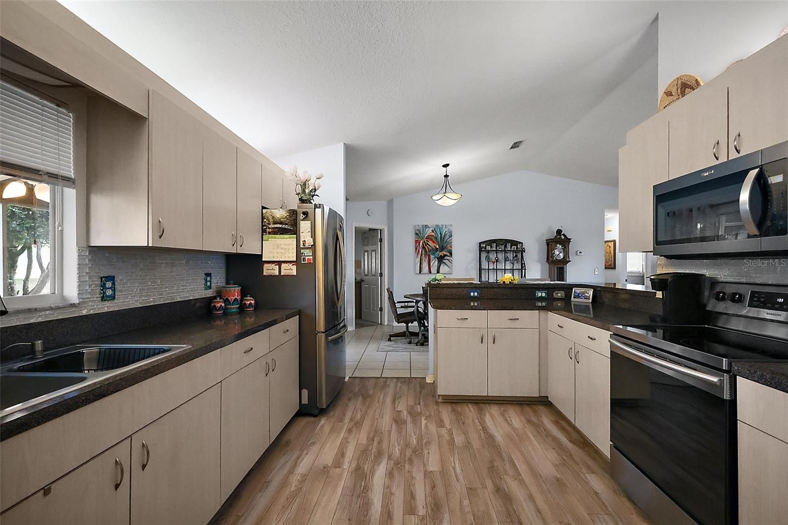 Welcome to the Palm Model - Turnkey - Just reduced price and added Furniture to be Included - Open Floor Plan -2 Large Bedrooms - 2 Full Baths the Primary was Remodeled in 2017 - Newer S/S Appliances - Glass Tile Back Splash - Washer & Dryer 2017 - Exterior painted 2017 - Extened Garage 21 x 26 - with Epoxy Painted Floor - Screen in Lanai 24 x 12- Leads out to a Patio - The Yard is Big enough for a Pool - This home is on a Shared Well for Irrigation Only - New 50 Gallon Hot Water Heater 2024 - Micro 2024 - Garbage Disposal 2025 - Roof 2014 - A / C 2017 - This Home is Well Keept and it Shows!! Come See it before its Gone!!