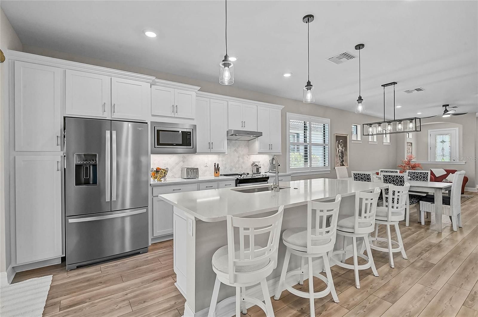 Welcome to this beautifully appointed 2022 Divosta-built Crestview model in the highly sought-after, resort-style community of IslandWalk at the West Villages. This elevated 3-bedroom, 2-bath home, with one room that easily doubles as a study or flex space, offers timeless style and thoughtful upgrades throughout. At the heart of the home, the chef’s kitchen combines elegance and practicality with stunning quartz countertops, upgraded soft-close cabinetry, pull-out drawers, under-cabinet lighting, and a spacious island perfect for entertaining. The kitchen’s sliding doors feature an automatic roller shade, giving you effortless control of light and privacy with the touch of a button. Step outside to the extended, paved lanai overlooking a peaceful pond, complete with Storm Smart weather protection curtains which is perfect for year-round Florida living. Inside, you’ll find plantation shutters, rain shower heads in both baths, two linen closets, and a whole-house generator and water purification system for added comfort and peace of mind. The extended two-car garage features an epoxy finished floor and utility sink, providing both practicality and extra space for storage or projects. IslandWalk offers an unmatched resort-style lifestyle with 24-hour staffed gated entry, sparkling resort and lap pools, tennis, pickleball, bocce, fitness centers, and a full calendar of social events. Scenic lakes, picturesque bridges, and endless walking and biking trails set the backdrop for daily adventures. Just beyond the gates, you’ll find Downtown Wellen Park, home to waterfront dining, boutique shops, live music, the CoolToday Park (Atlanta Braves Spring Training), and year-round community events. Gulf Coast beaches, shopping, and dining are only minutes away. This is more than a home. It’s a lifestyle waiting for you in the heart of Wellen Park. ¤ Please see 3D Tour and Video ¤
