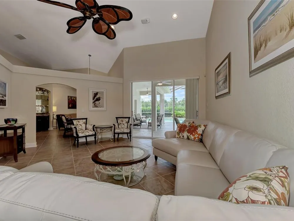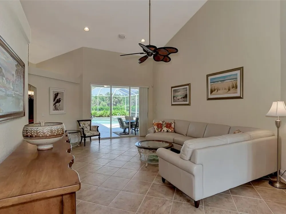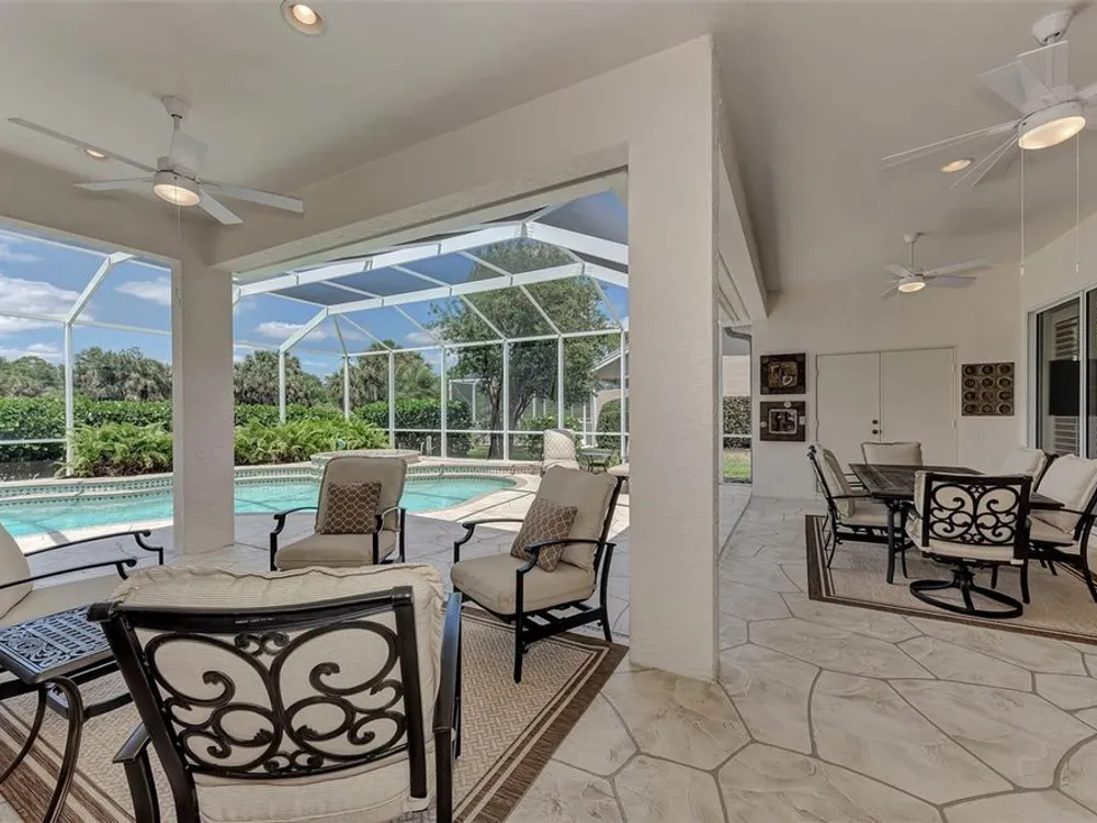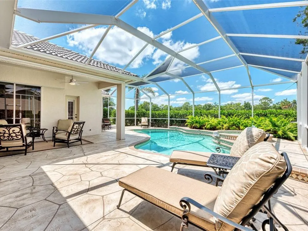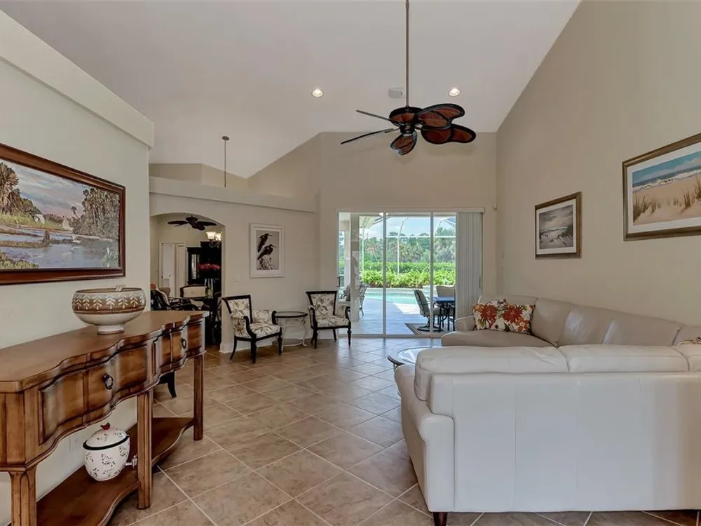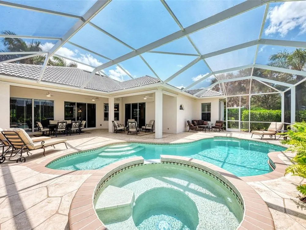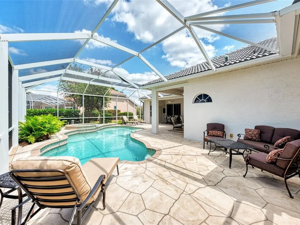 INCREDIBLE QUALITY, FURNISHED TURN-KEY HOME & VALUE! Begin living the Grand Florida Lifestyle by owning this WELL PRICED, MOVE IN READY, meticulously crafted, spacious 3-Bedroom, 3-Bathroom plus Den RIVERWOOD ESTATE HOME overlooking the picturesque golf course. Situated in the sought-after Fairway Lakes neighborhood, the location offers scenic views of the verdant fairway. Step inside to discover a renovated interior boasting numerous upgrades, including an expansive outdoor lanai with a resurfaced heated pool and spa, surrounded by private landscaped grounds adorned with majestic Royal Palms. The kitchen is a haven for culinary enthusiasts, featuring quality wood cabinets, granite countertops, stainless steel appliances, a wine cooler, and a convenient breakfast bar for additional seating. The primary bedroom is generously proportioned and includes a luxurious en-suite bathroom with his and her vanities, a walk-in shower, and a relaxing garden bath. ADDED BONUS: 2025 BRAND NEW HVAC AIR CONDITIONER, designer lighting and window treatments throughout. Garage offers a desirable 4ft extension. Ask the agent for details. This executive-designed architectural marvel is perfectly complemented by Riverwood's gated, golf-centric community, offering residents a resort-style lifestyle. Enjoy strolls along tree-lined paths, indulge in games of tennis or pickleball, or participate in various classes and social activities at the Activity Center. Recognized as an Audubon Green Community, Riverwood provides a natural habitat for Florida wildlife. Pet Owners will appreciate the R.O.M.P. Dog Park, while golf enthusiasts can tee off at the Riverwood Golf Club's Par 72 Championship course or access the exclusive Beach Club on Manasota Key (subject to membership availability). Conveniently located between Sarasota and Fort Myers on Florida's West Coast, Riverwood offers easy access to boating, cultural events, dining, shopping, and the breathtaking beaches of Southwest Florida. Don't miss the chance to embrace the exceptional lifestyle afforded by this Riverwood home.