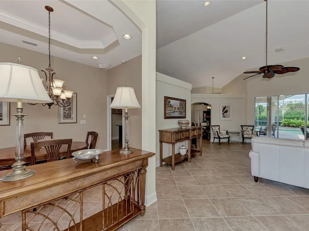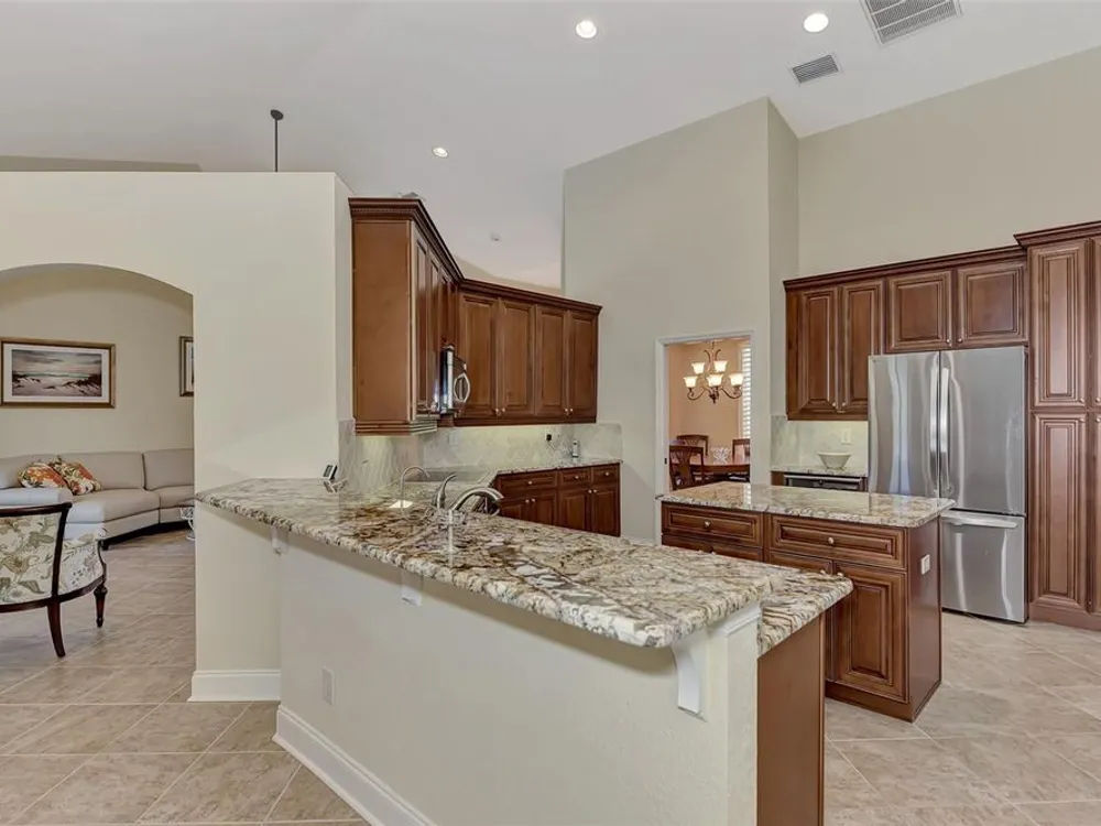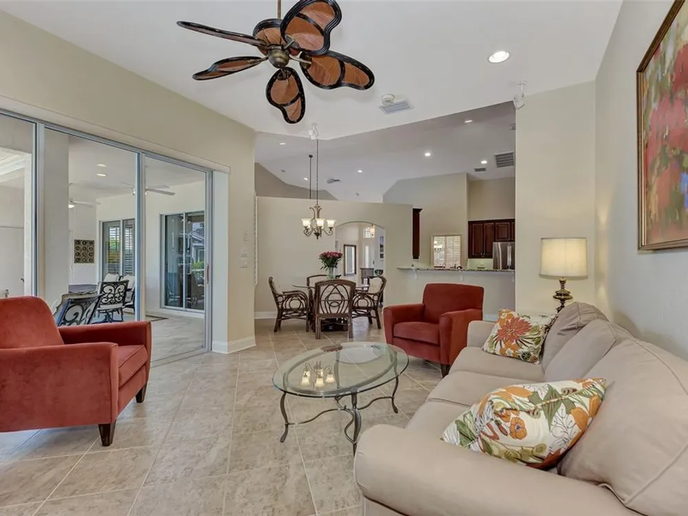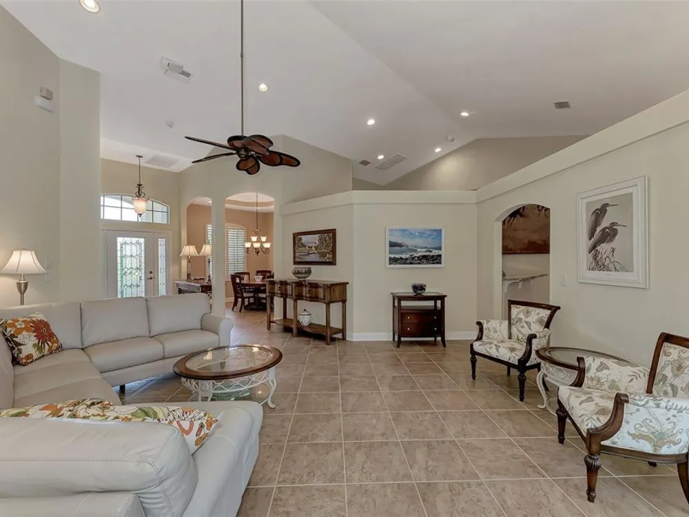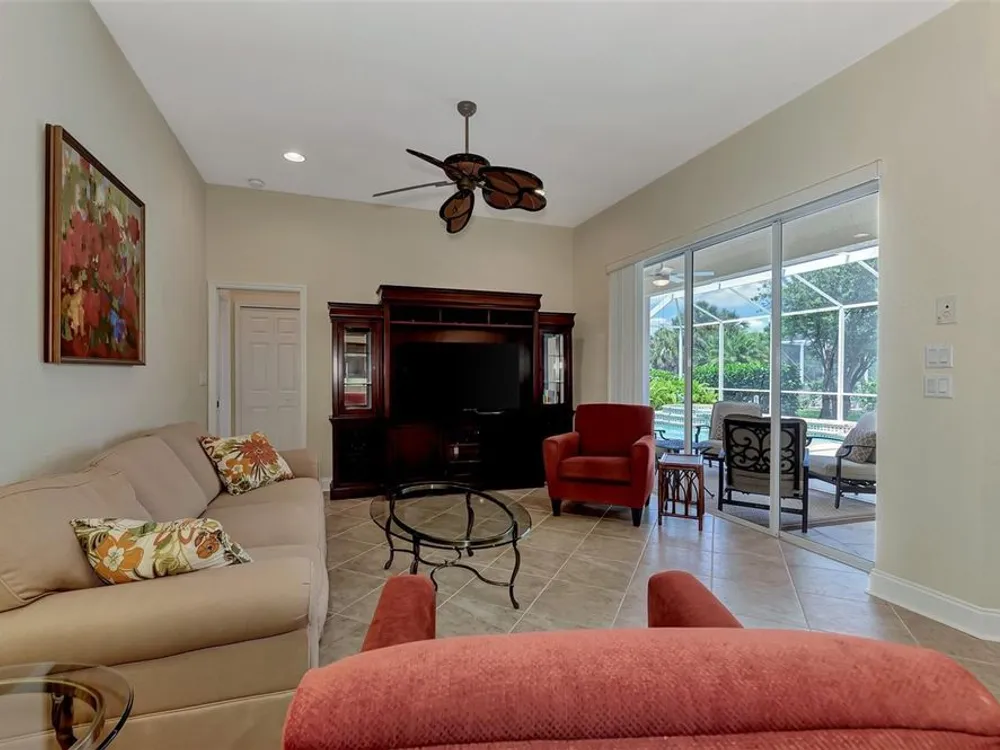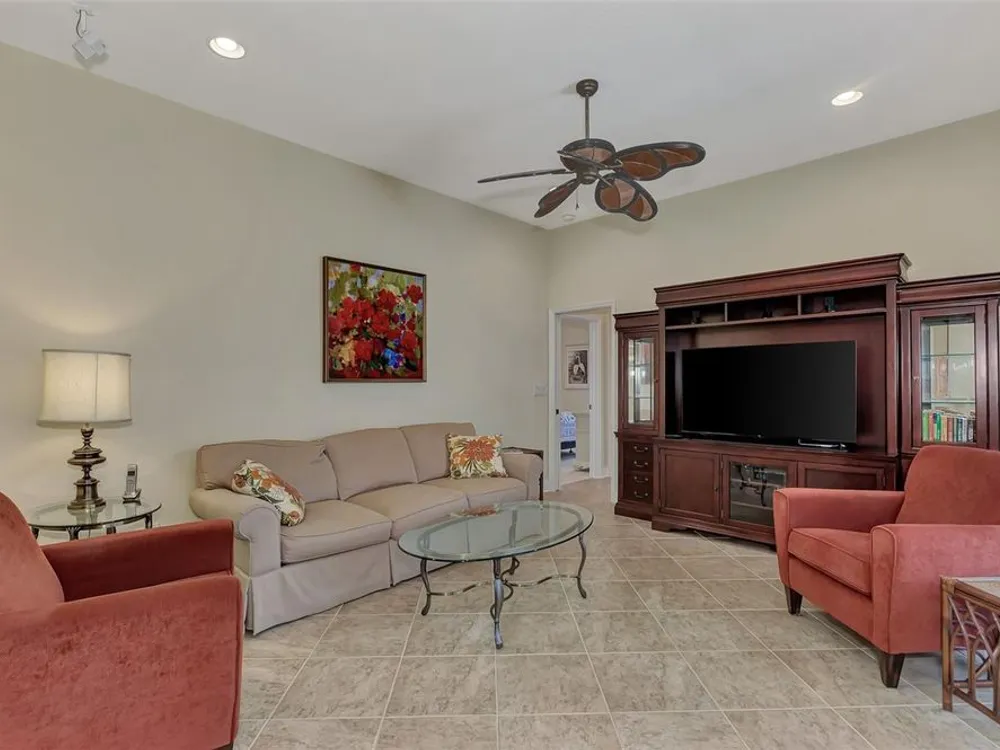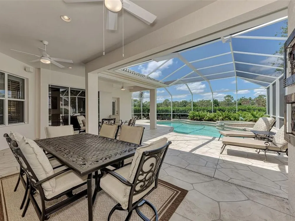 INCREDIBLE QUALITY, FURNISHED TURN-KEY HOME & VALUE! Begin living the Grand Florida Lifestyle by owning this WELL PRICED, MOVE IN READY, meticulously crafted, spacious 3-Bedroom, 3-Bathroom plus Den RIVERWOOD ESTATE HOME overlooking the picturesque golf course. Situated in the sought-after Fairway Lakes neighborhood, the location offers scenic views of the verdant fairway. Step inside to discover a renovated interior boasting numerous upgrades, including an expansive outdoor lanai with a resurfaced heated pool and spa, surrounded by private landscaped grounds adorned with majestic Royal Palms. The kitchen is a haven for culinary enthusiasts, featuring quality wood cabinets, granite countertops, stainless steel appliances, a wine cooler, and a convenient breakfast bar for additional seating. The primary bedroom is generously proportioned and includes a luxurious en-suite bathroom with his and her vanities, a walk-in shower, and a relaxing garden bath. ADDED BONUS: 2025 BRAND NEW HVAC AIR CONDITIONER, designer lighting and window treatments throughout. Garage offers a desirable 4ft extension. Ask the agent for details. This executive-designed architectural marvel is perfectly complemented by Riverwood's gated, golf-centric community, offering residents a resort-style lifestyle. Enjoy strolls along tree-lined paths, indulge in games of tennis or pickleball, or participate in various classes and social activities at the Activity Center. Recognized as an Audubon Green Community, Riverwood provides a natural habitat for Florida wildlife. Pet Owners will appreciate the R.O.M.P. Dog Park, while golf enthusiasts can tee off at the Riverwood Golf Club's Par 72 Championship course or access the exclusive Beach Club on Manasota Key (subject to membership availability). Conveniently located between Sarasota and Fort Myers on Florida's West Coast, Riverwood offers easy access to boating, cultural events, dining, shopping, and the breathtaking beaches of Southwest Florida. Don't miss the chance to embrace the exceptional lifestyle afforded by this Riverwood home.