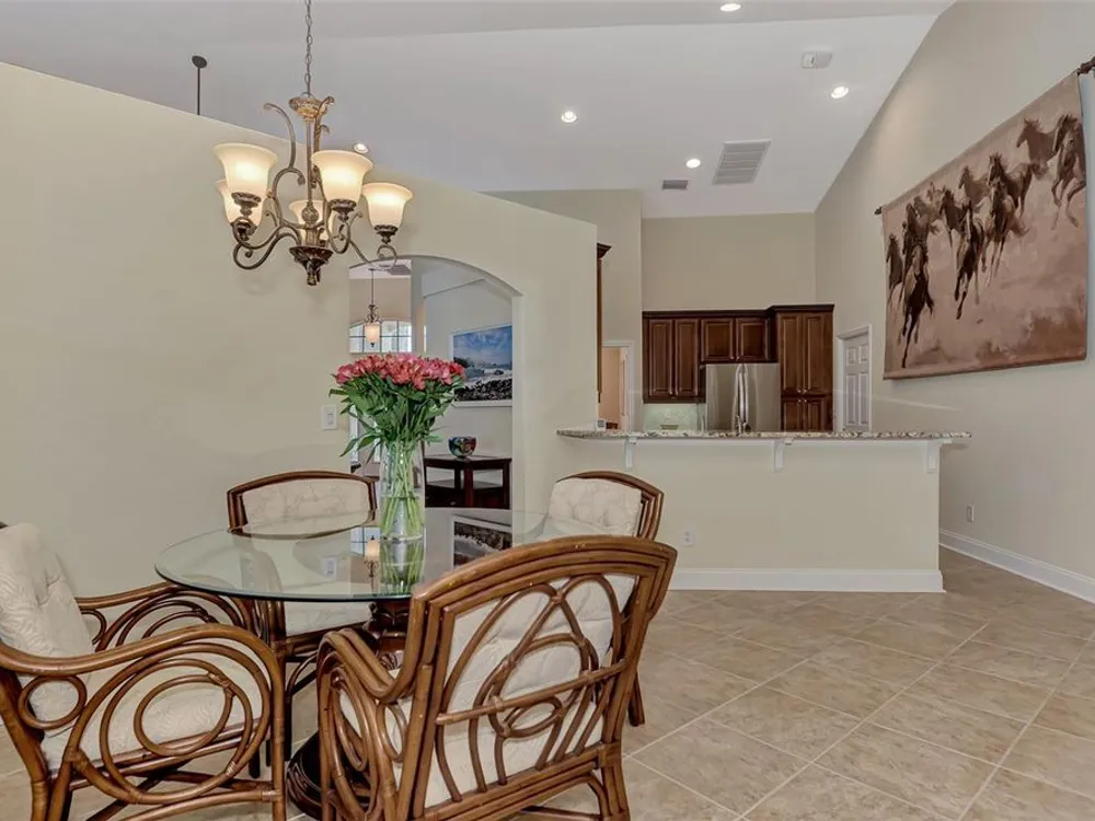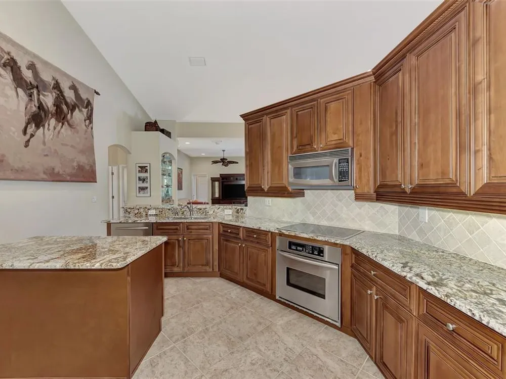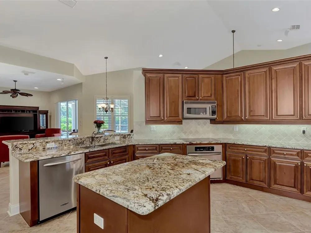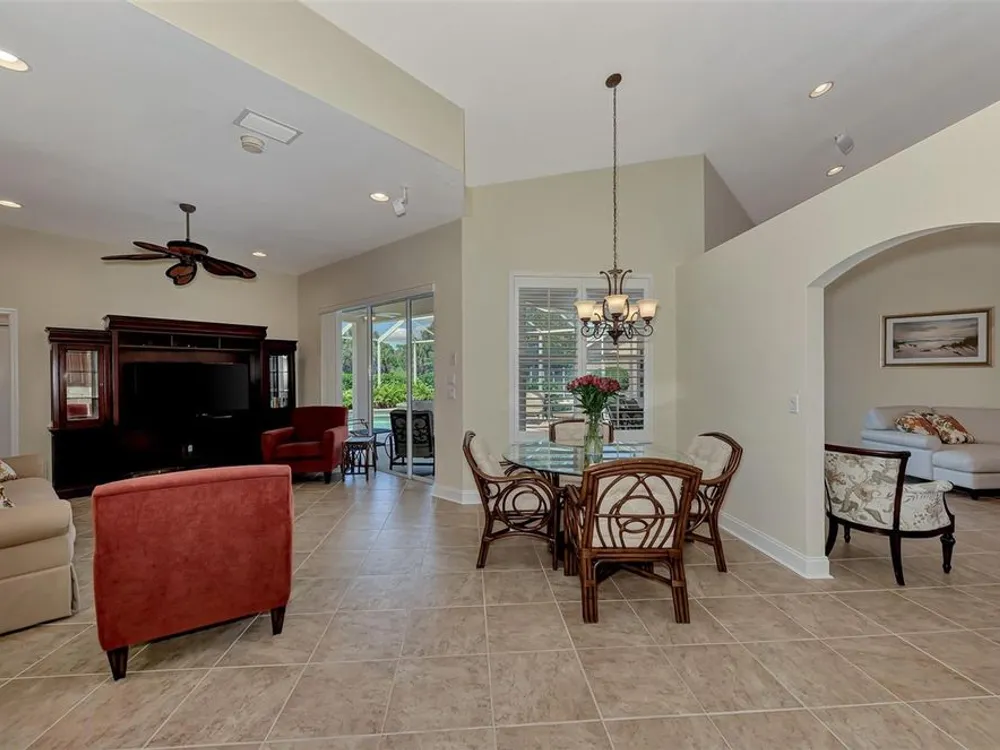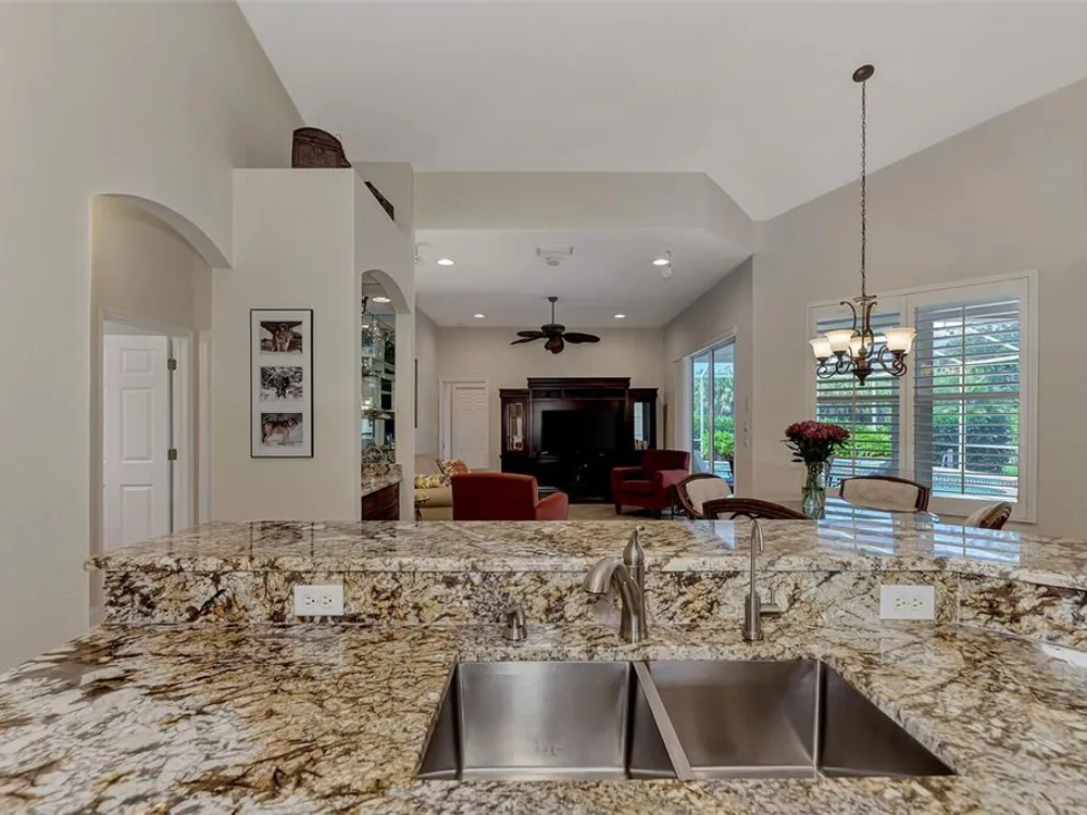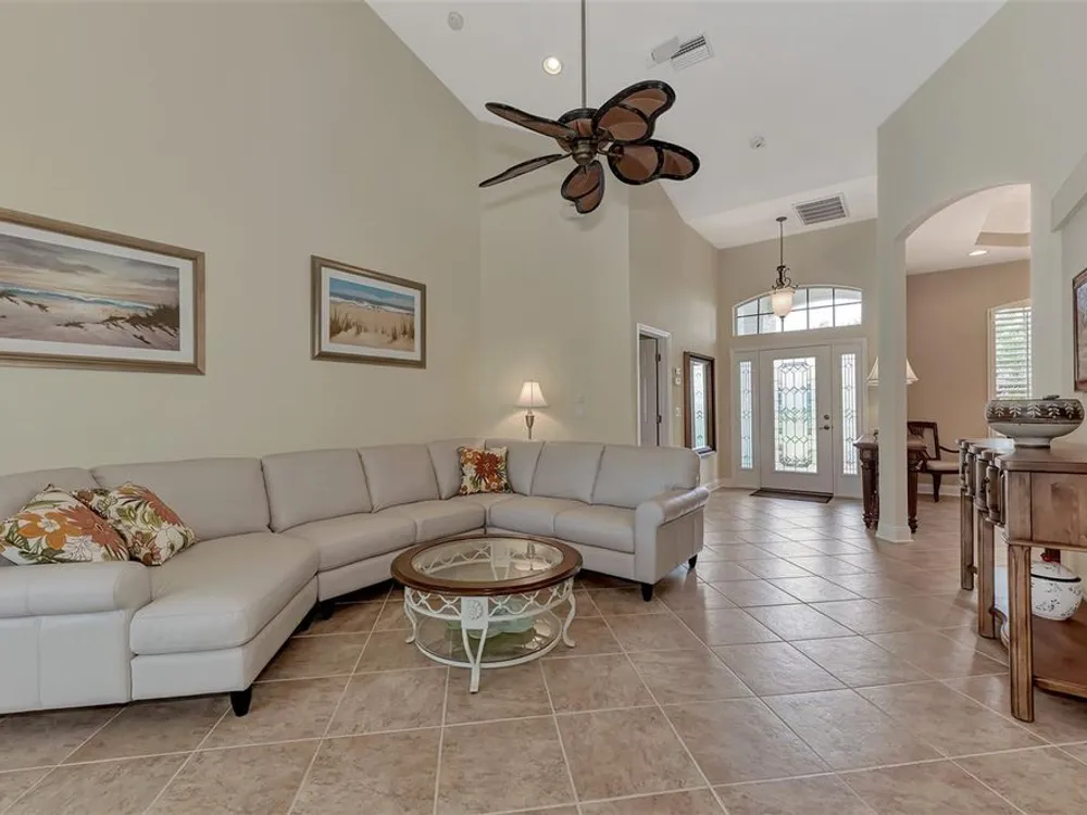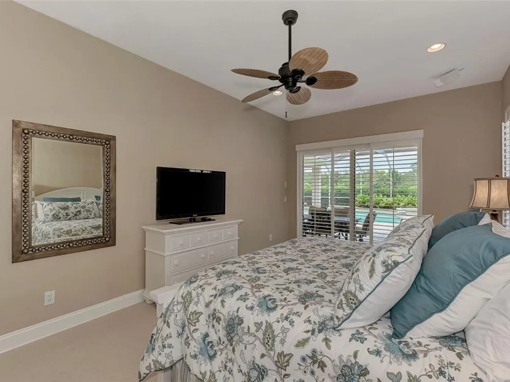 INCREDIBLE QUALITY, FURNISHED TURN-KEY HOME & VALUE! Begin living the Grand Florida Lifestyle by owning this WELL PRICED, MOVE IN READY, meticulously crafted, spacious 3-Bedroom, 3-Bathroom plus Den RIVERWOOD ESTATE HOME overlooking the picturesque golf course. Situated in the sought-after Fairway Lakes neighborhood, the location offers scenic views of the verdant fairway. Step inside to discover a renovated interior boasting numerous upgrades, including an expansive outdoor lanai with a resurfaced heated pool and spa, surrounded by private landscaped grounds adorned with majestic Royal Palms. The kitchen is a haven for culinary enthusiasts, featuring quality wood cabinets, granite countertops, stainless steel appliances, a wine cooler, and a convenient breakfast bar for additional seating. The primary bedroom is generously proportioned and includes a luxurious en-suite bathroom with his and her vanities, a walk-in shower, and a relaxing garden bath. ADDED BONUS: 2025 BRAND NEW HVAC AIR CONDITIONER, designer lighting and window treatments throughout. Garage offers a desirable 4ft extension. Ask the agent for details. This executive-designed architectural marvel is perfectly complemented by Riverwood's gated, golf-centric community, offering residents a resort-style lifestyle. Enjoy strolls along tree-lined paths, indulge in games of tennis or pickleball, or participate in various classes and social activities at the Activity Center. Recognized as an Audubon Green Community, Riverwood provides a natural habitat for Florida wildlife. Pet Owners will appreciate the R.O.M.P. Dog Park, while golf enthusiasts can tee off at the Riverwood Golf Club's Par 72 Championship course or access the exclusive Beach Club on Manasota Key (subject to membership availability). Conveniently located between Sarasota and Fort Myers on Florida's West Coast, Riverwood offers easy access to boating, cultural events, dining, shopping, and the breathtaking beaches of Southwest Florida. Don't miss the chance to embrace the exceptional lifestyle afforded by this Riverwood home.