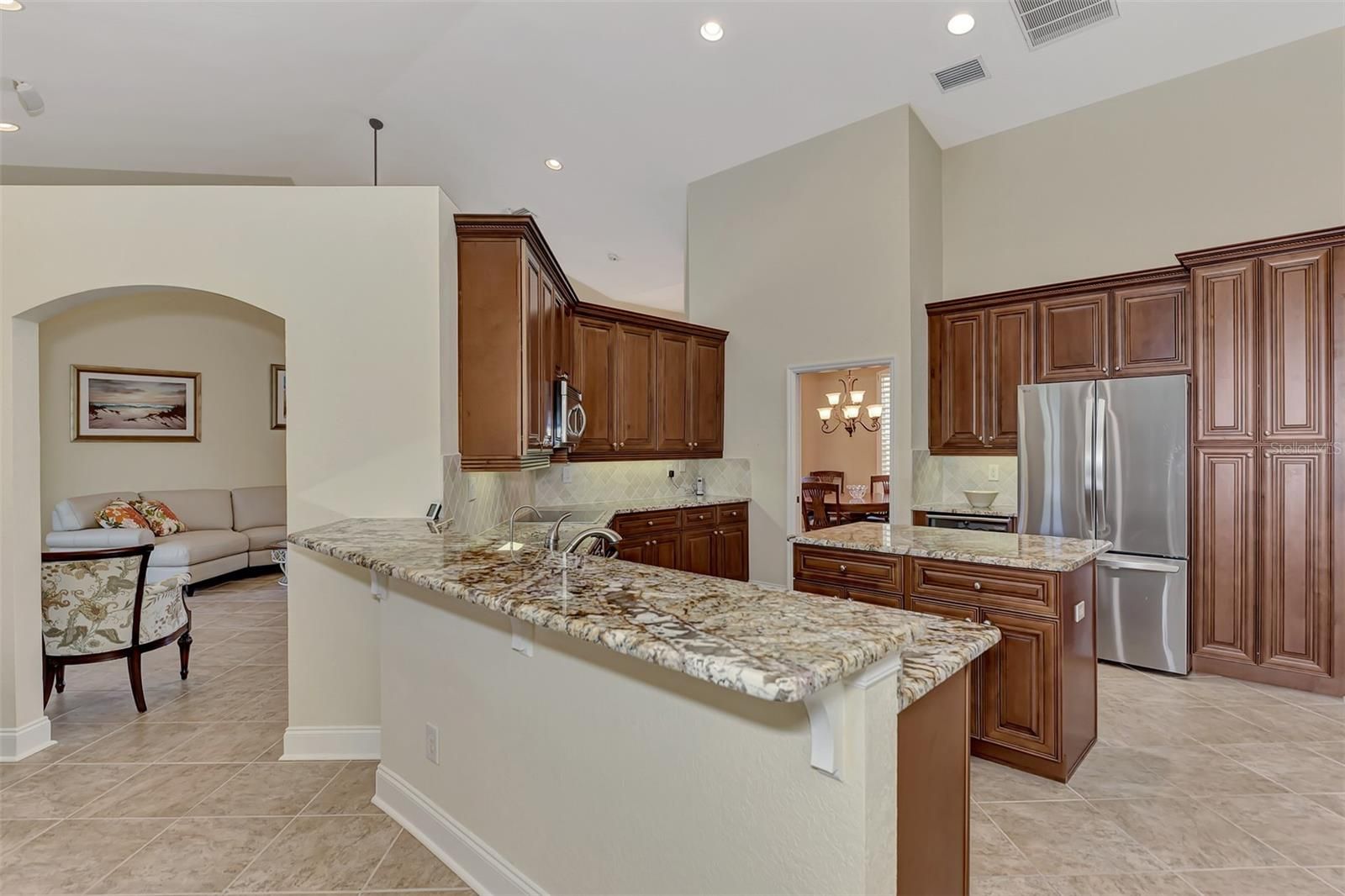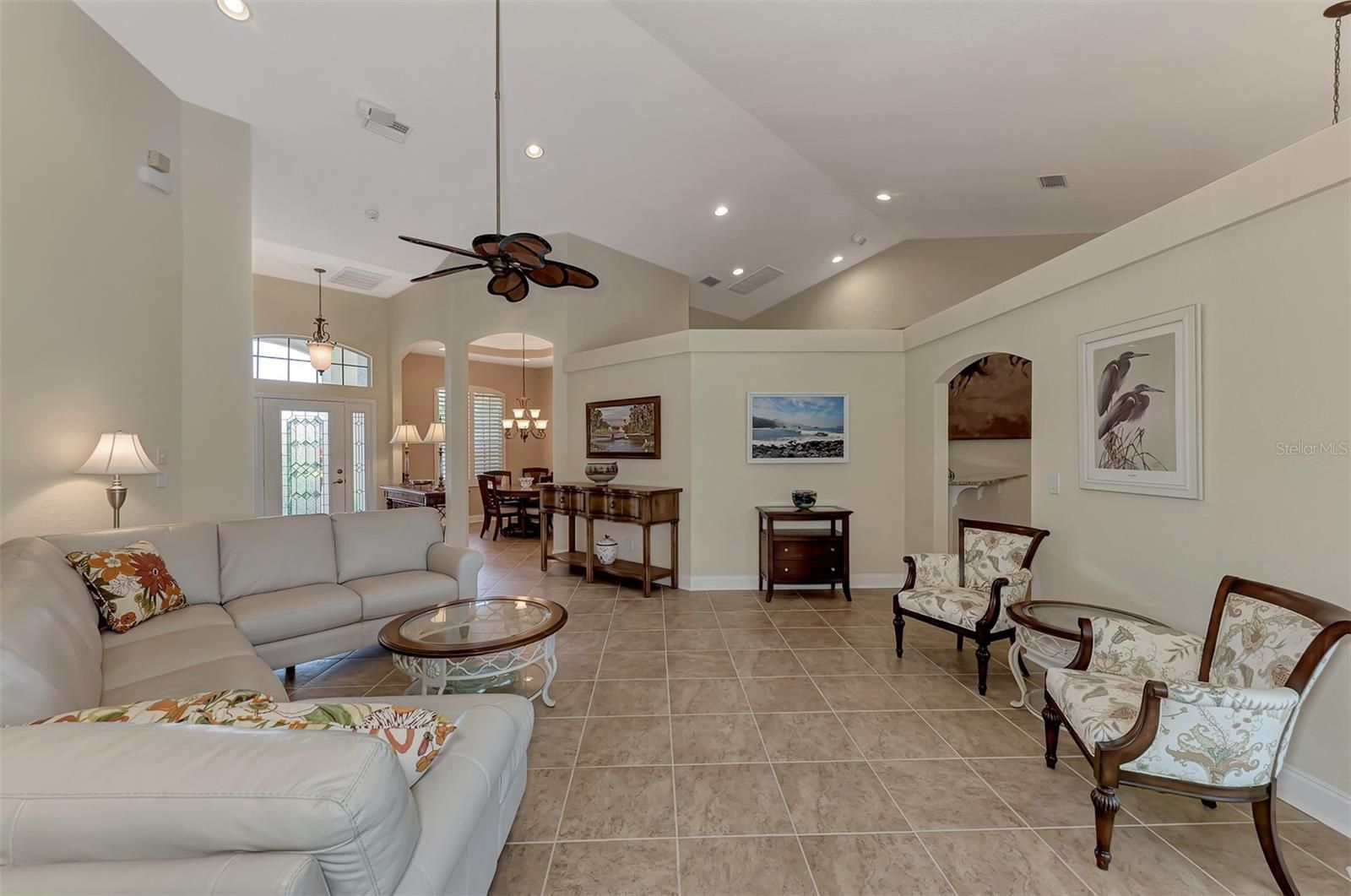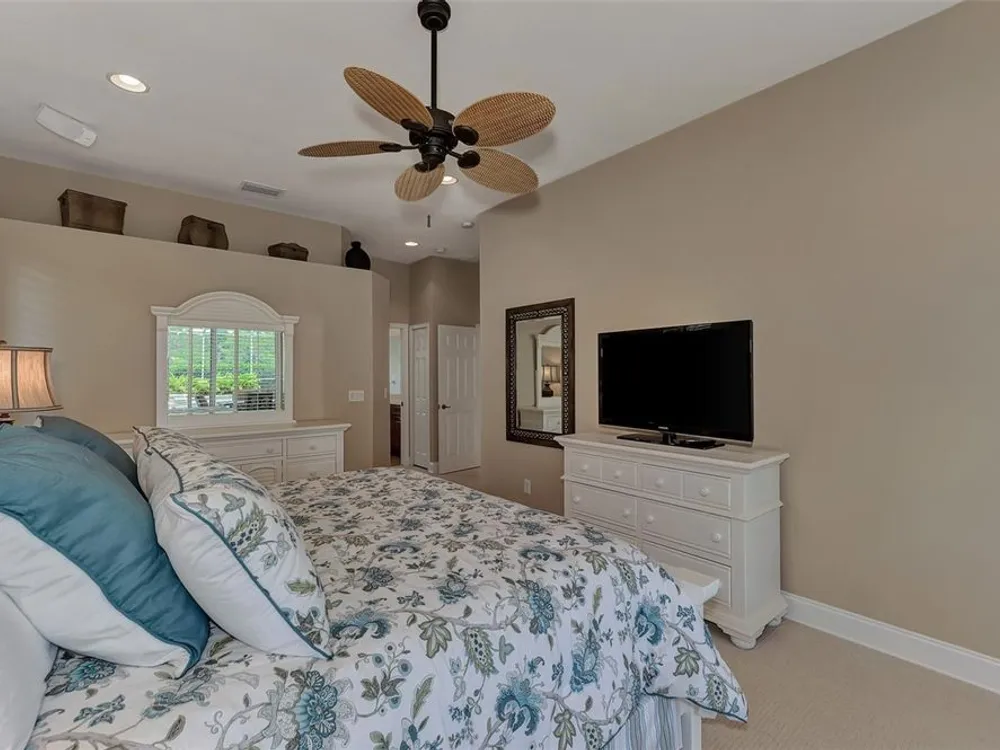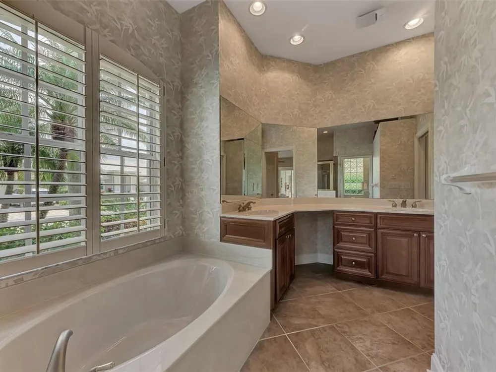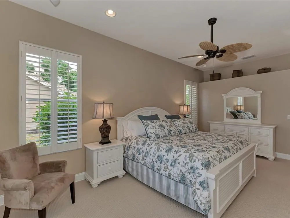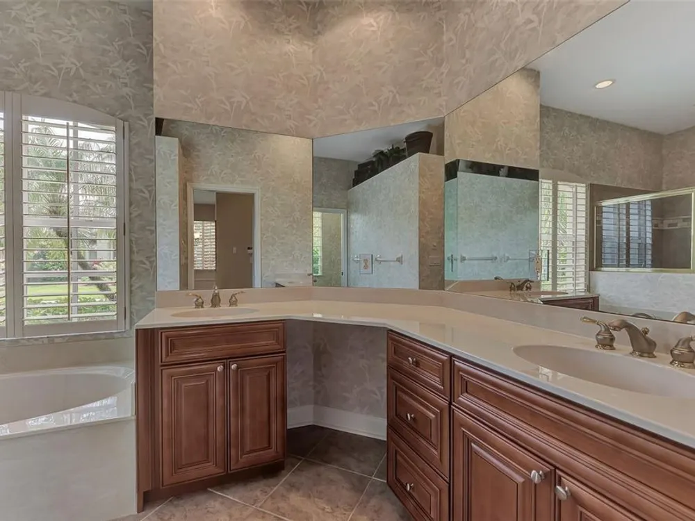 INCREDIBLE QUALITY, FURNISHED TURN-KEY HOME & VALUE! Begin living the Grand Florida Lifestyle by owning this WELL PRICED, MOVE IN READY, meticulously crafted, spacious 3-Bedroom, 3-Bathroom plus Den RIVERWOOD ESTATE HOME overlooking the picturesque golf course. Situated in the sought-after Fairway Lakes neighborhood, the location offers scenic views of the verdant fairway. Step inside to discover a renovated interior boasting numerous upgrades, including an expansive outdoor lanai with a resurfaced heated pool and spa, surrounded by private landscaped grounds adorned with majestic Royal Palms. The kitchen is a haven for culinary enthusiasts, featuring quality wood cabinets, granite countertops, stainless steel appliances, a wine cooler, and a convenient breakfast bar for additional seating. The primary bedroom is generously proportioned and includes a luxurious en-suite bathroom with his and her vanities, a walk-in shower, and a relaxing garden bath. ADDED BONUS: 2025 BRAND NEW HVAC AIR CONDITIONER, designer lighting and window treatments throughout. Garage offers a desirable 4ft extension. Ask the agent for details. This executive-designed architectural marvel is perfectly complemented by Riverwood's gated, golf-centric community, offering residents a resort-style lifestyle. Enjoy strolls along tree-lined paths, indulge in games of tennis or pickleball, or participate in various classes and social activities at the Activity Center. Recognized as an Audubon Green Community, Riverwood provides a natural habitat for Florida wildlife. Pet Owners will appreciate the R.O.M.P. Dog Park, while golf enthusiasts can tee off at the Riverwood Golf Club's Par 72 Championship course or access the exclusive Beach Club on Manasota Key (subject to membership availability). Conveniently located between Sarasota and Fort Myers on Florida's West Coast, Riverwood offers easy access to boating, cultural events, dining, shopping, and the breathtaking beaches of Southwest Florida. Don't miss the chance to embrace the exceptional lifestyle afforded by this Riverwood home.