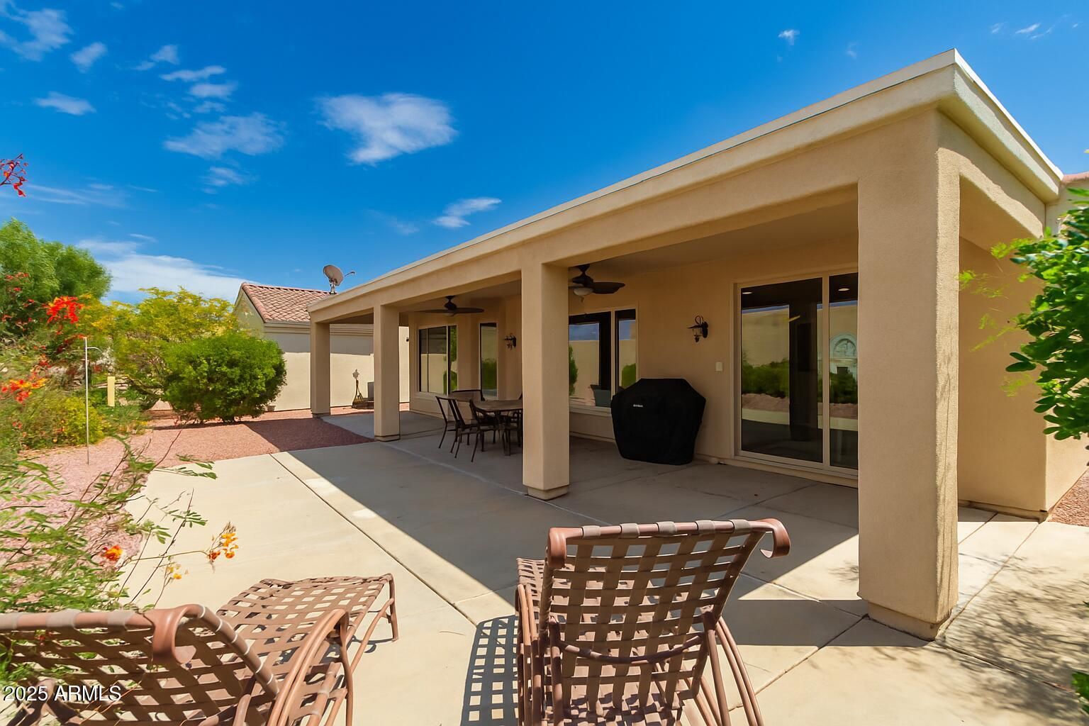 Welcome to this beautiful home in the prestigious guard-gated community of Corte Bella Country Club! Featuring a well-designed 1,625 sq.ft. floor plan with a total of 3 bedrooms and 3 bathrooms including a casita - perfect for guests, home office, craft space or gym! This residence offers both comfort and privacy. The bright, open Great Room seamlessly connects to the lovely kitchen, showcasing granite countertops with a full backsplash, rich cabinetry & a spacious island perfect for entertaining. The primary suite includes an en suite bath with dual vanities, shower and a generous walk-in closet. Step outside to a peaceful, extended covered patio surrounded by mature, low-maintenance landscaping--ideal for year-round enjoyment. Experience true resort-style living with exclusive amenities such as the Corte Bella Golf Club, day spa, sparkling pool, tennis, pickleball, clubhouse, fine dining, and more! This is the lifestyle you've been waiting for.