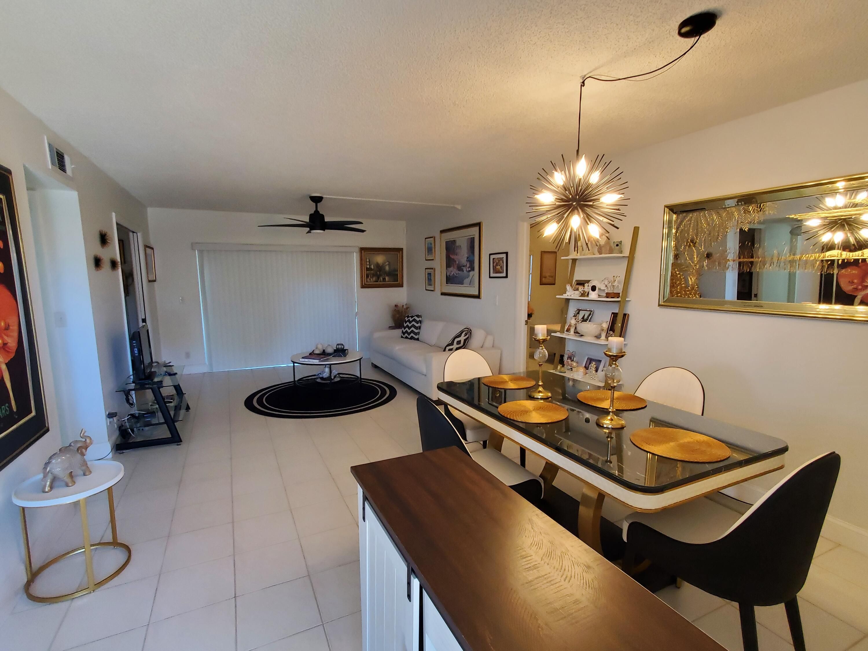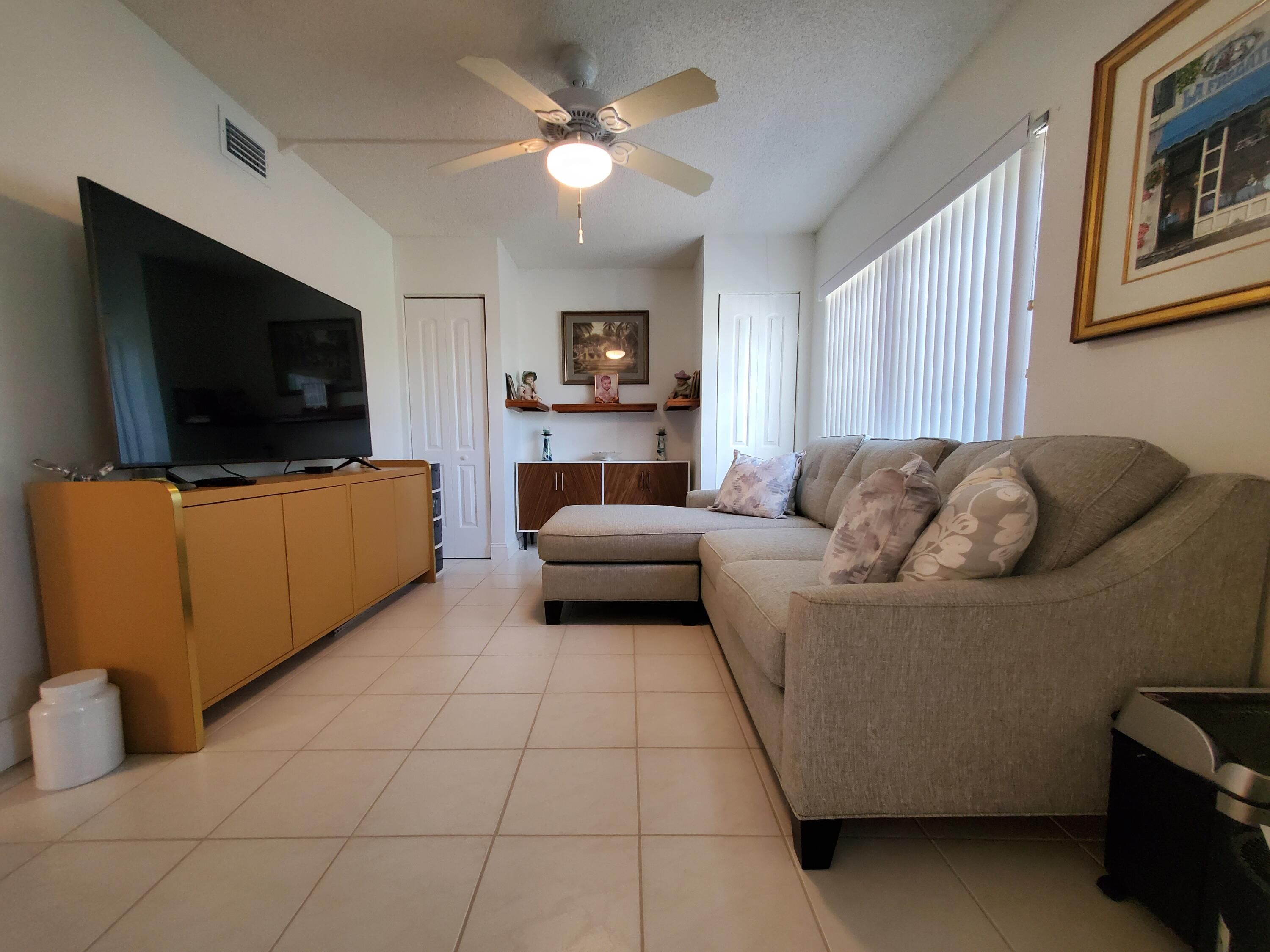 Newly and tastefully updated 2 bedroom, 2 bathroom condo in desirable Palm Greens. Beautiful kitchen with elegant appliances. First floor corner unit is private and has easy access to parking. It has a rear enclosed patio/Florida room. Washer/dryer inside. A lot of closet space in rooms!! Association includes cable, HBO & DVR, internet, water and amenities such as a 28k sqft clubhouse with 450 seat theater, cafe, community room, aerobics room, arts and crafts, 9 tennis courts, fitness center, billiards, pickle ball, a resort-sized pool, hot tub, shuffleboard, bocce, organized activities. 6 miles from the beach. Near shopping centers, medical facilities, entertainment, restaurants and more. 55+ community