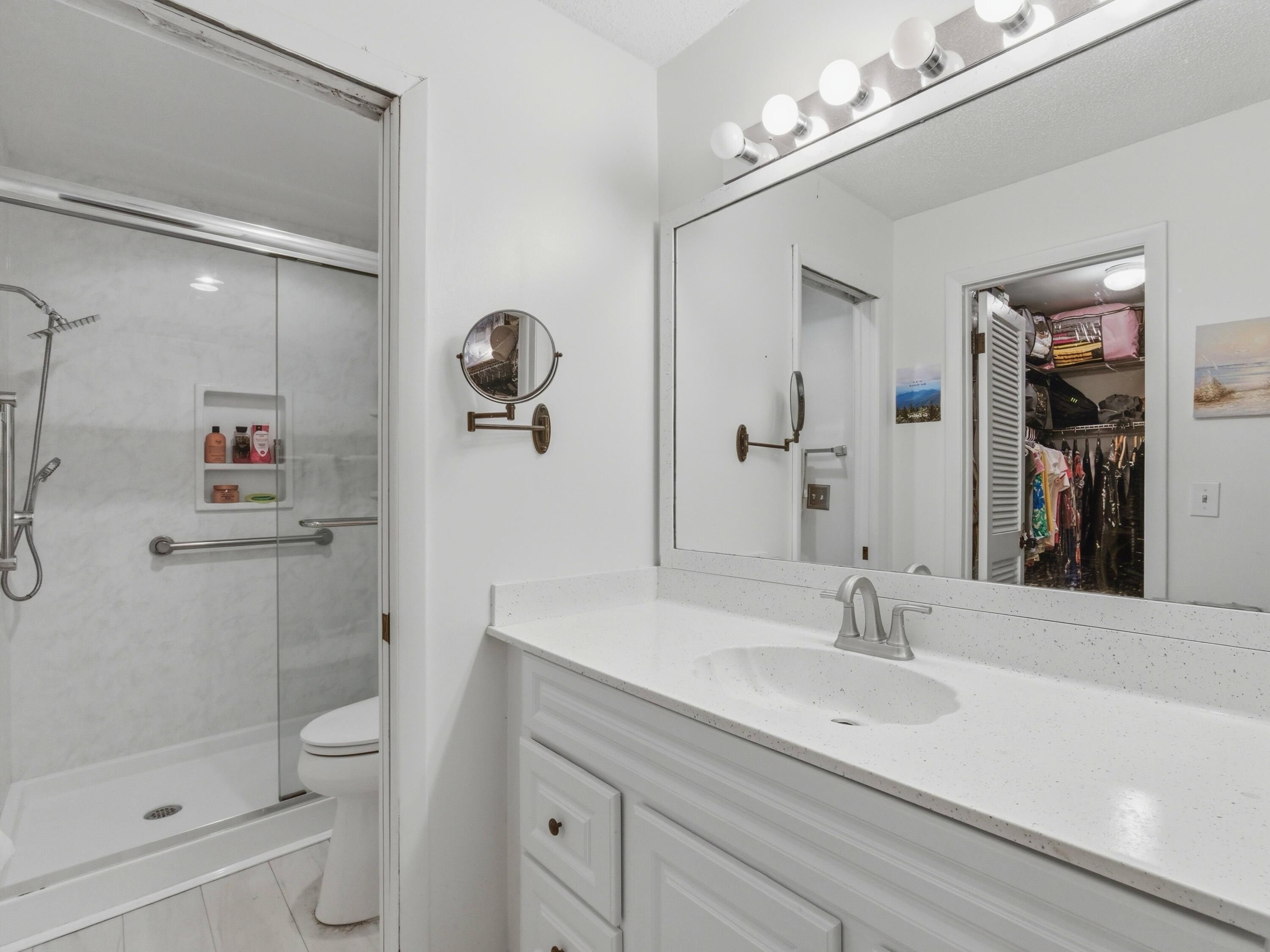 - Pantry, Walk-In Closet(s), Split Bedrooms, Custom Mirrors, Storage, Impact Glass, Living/Dining Room, Eat-in Kitchen, Entry Level Living Area, Tub Shower