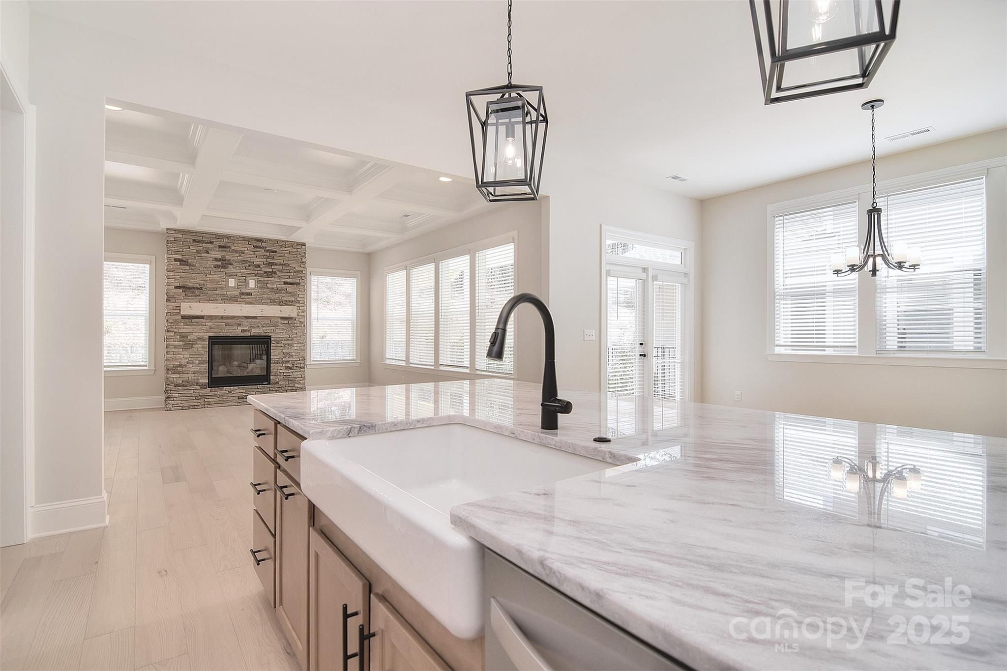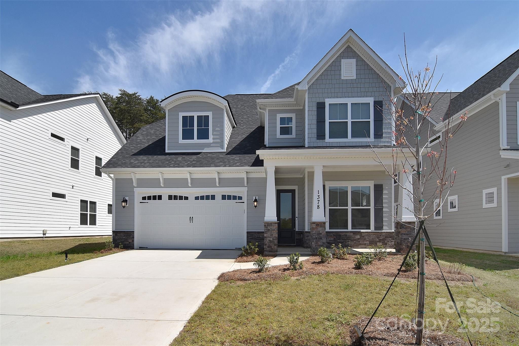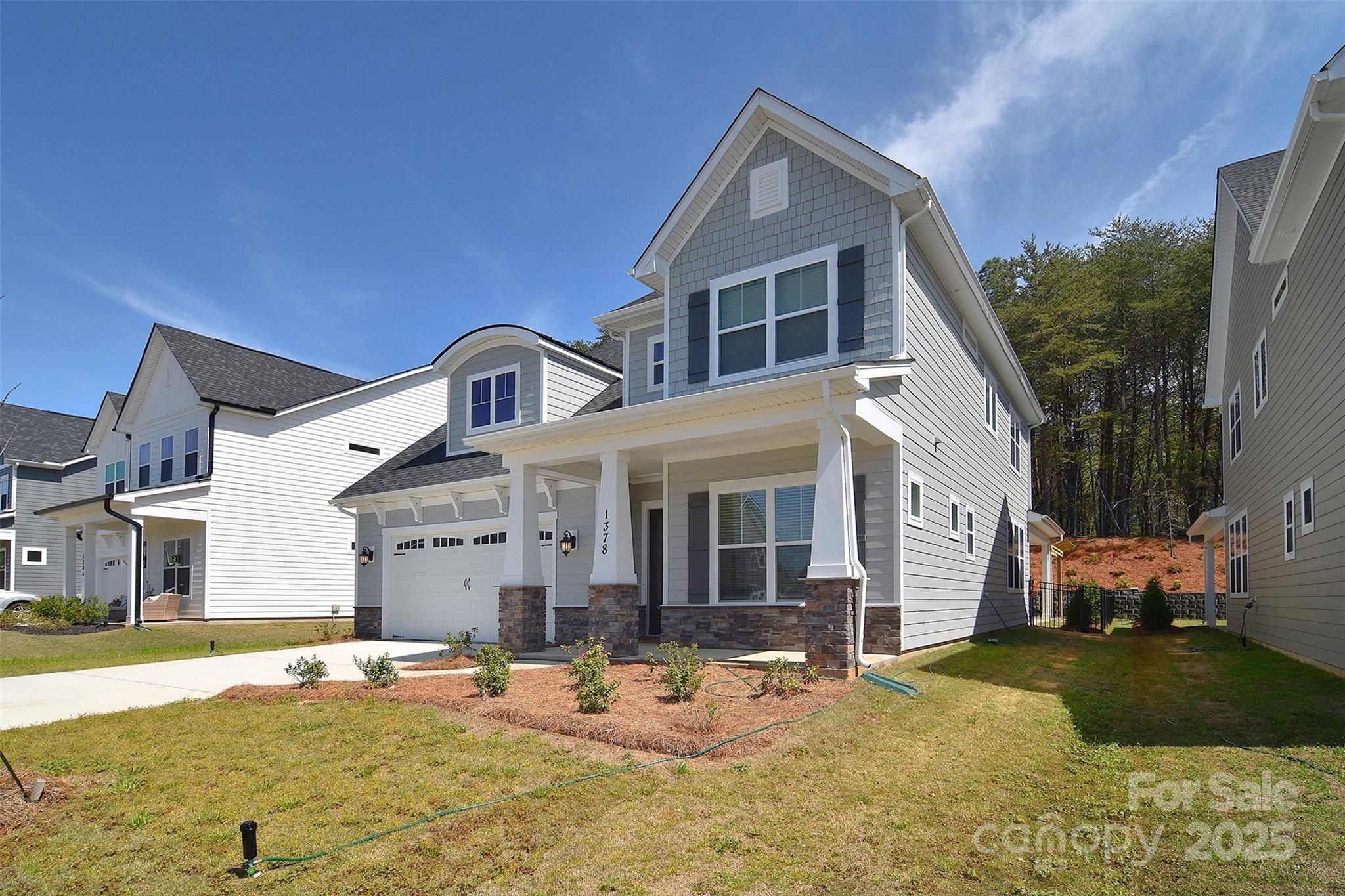 This stunning new construction home is MOVE IN READY and ideal for low maintenance living, so you can spend your weekends on the lake! Featuring soaring 10' ceilings, an open-concept layout, and elegant finishes throughout, with a gorgeous kitchen that boasts floor-to-ceiling cabinets, quartzite countertops, double wall ovens, & large island with farmhouse sink. Relax in the family room with coffered ceiling, stone-surround gas fireplace. The flexible study can be used for office or formal dining! The primary suite on the main floor features tiled walk-in shower, dual quartz-topped vanities, & large walk-in closet. Upstairs offers a versatile loft for fun and entertainment, secondary bedrooms with walk-in closets, & shared Jack-and-Jill bath. Enjoy the installed outdoor living space and the convenience of being just minutes from boat storage/marina, Sally's Y, and nearby shopping and dining. Embrace lake area life without the hassle of overbearing yardwork!