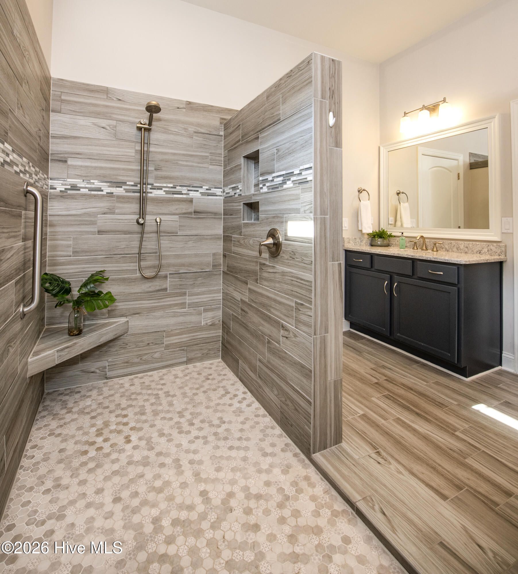 - Master Downstairs, Walk-in Closet(s), Tray Ceiling(s), Entrance Foyer, Kitchen Island, Ceiling Fan(s), Pantry, Walk-in Shower