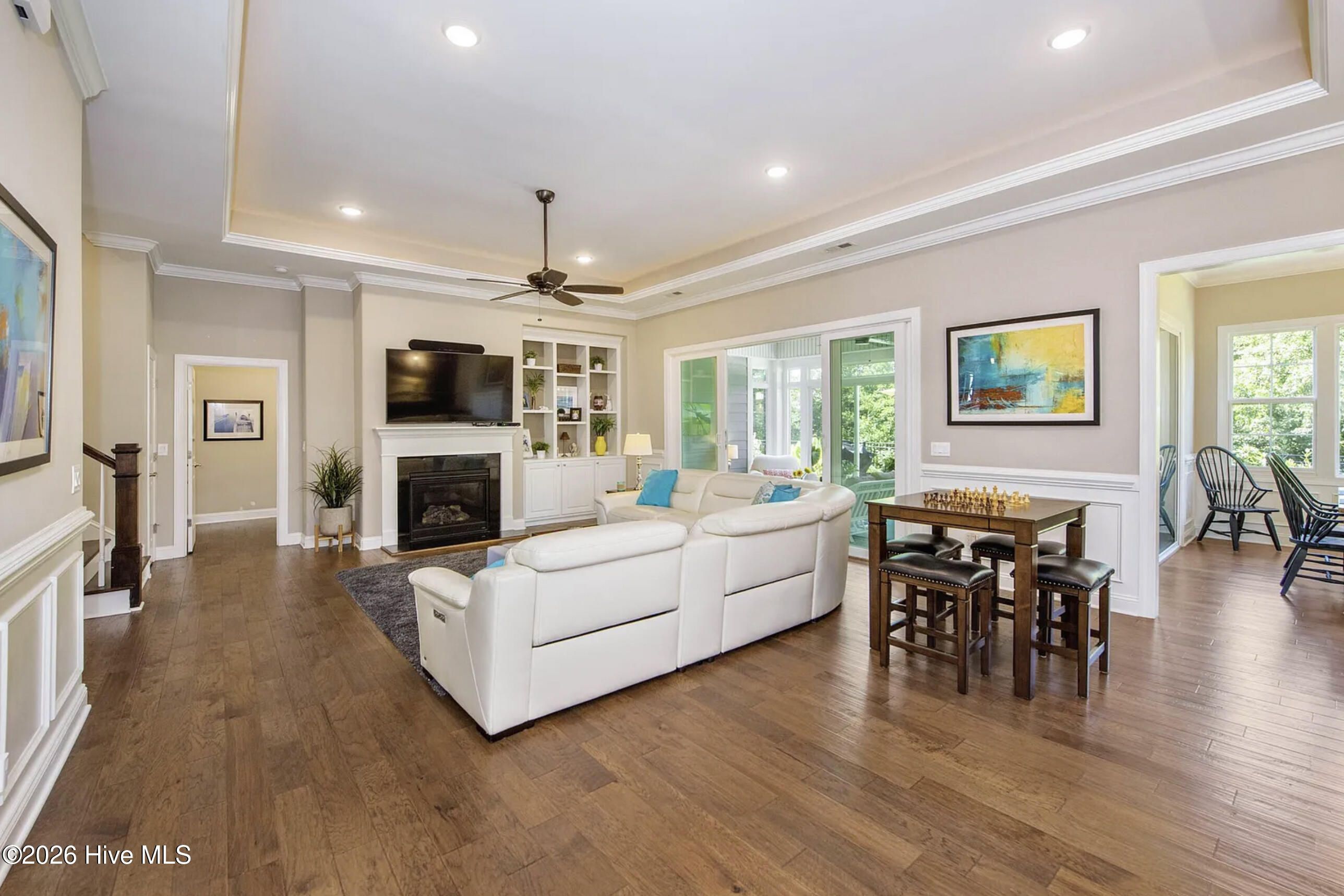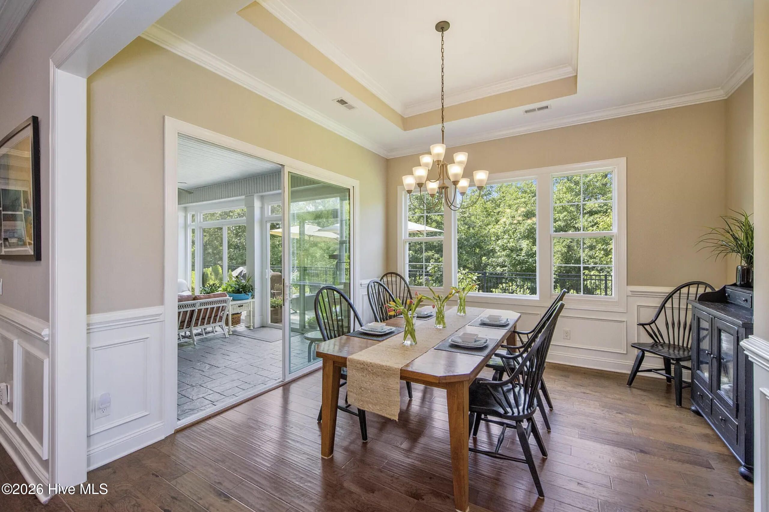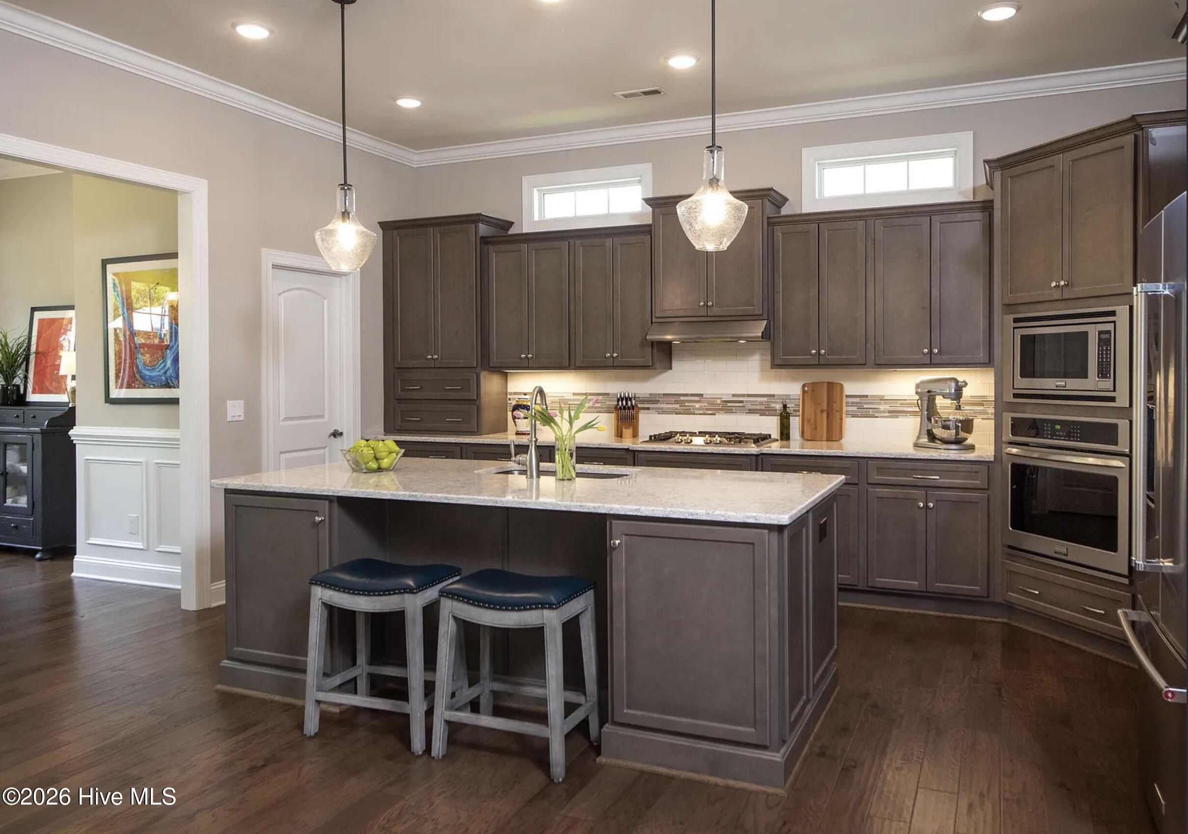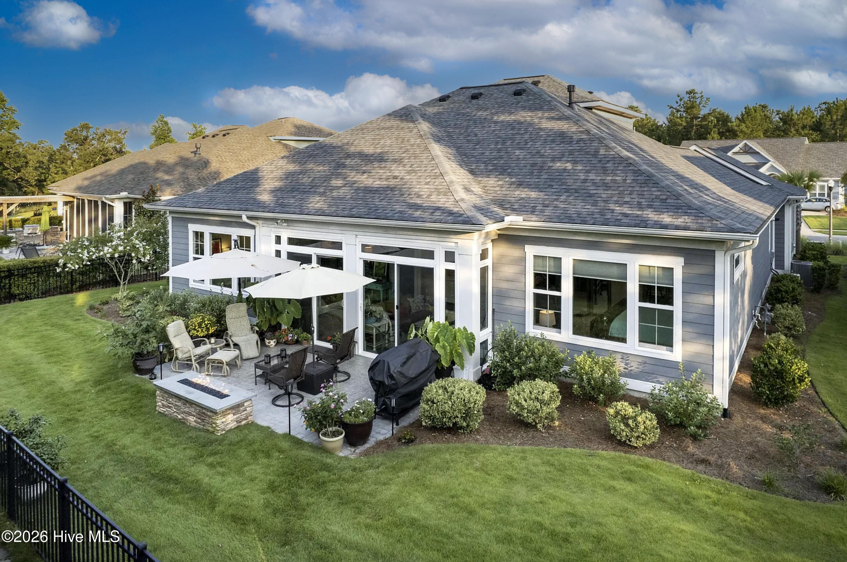 Come home to effortless resort-style living in this beautifully designed West Indies-inspired residence, ideally located in The Leeward section of Shelmore in Brunswick Forest. Showcasing the sought-after Mango Bay floor plan, this spacious home offers an open, light-filled layout with thoughtfully curated finishes throughout. The gourmet kitchen is the heart of the home, featuring a large quartz island with seating and storage, custom soft-close cabinetry, pullout shelving, a walk-in pantry, and designer lighting--all seamlessly flowing into the dining and living areas, perfect for entertaining. Expansive glass doors open to a stunning glassed-in lanai and adjoining patio with a gas firepit, all overlooking a peaceful wooded backdrop. The private owner's suite offers dual walk-in closets and a spa-like bath with double vanities and a fully tiled double walk-in shower. Two guest bedrooms, a full bath, mudroom, and laundry complete the main level, while upstairs features a private suite with full bath, built-in desk, and walk-in attic access. An oversized two-car garage provides additional storage for an active lifestyle. Enjoy all that Brunswick Forest has to offer--resort-style amenities including pools, fitness center, golf, tennis, pickleball, trails, and kayaking--plus the ease of low-maintenance living in the Shelmore community.