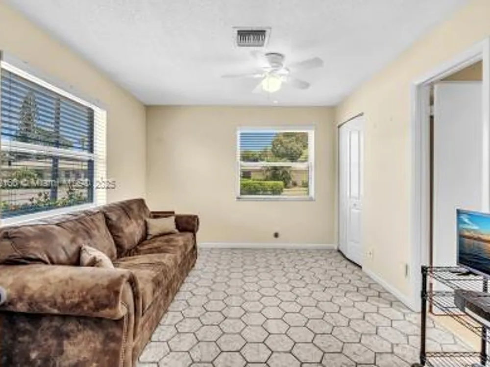 Discover vibrant living in this bright corner villa, just 8 minutes from Delray Beach's coveted shoreline! This meticulously maintained villa offers a fantastic opportunity to create your dream home, just waiting for your personal touch and design vision. This home features well-ventilated interior spaces, kitchen appliances in perfect condition, a brand-new washer/dryer, and patios enclosed by lush plants and fruit trees. The community boasts an exceptional clubhouse with resort-style amenities, including a soon-to-be-completed Lennar addition. Enjoy access to nine tennis courts with instructors, card game rooms, pools, a jacuzzi, and a scenic trail perfect for walking or cycling. Palm Tree is an ACTIVE ADULT community.