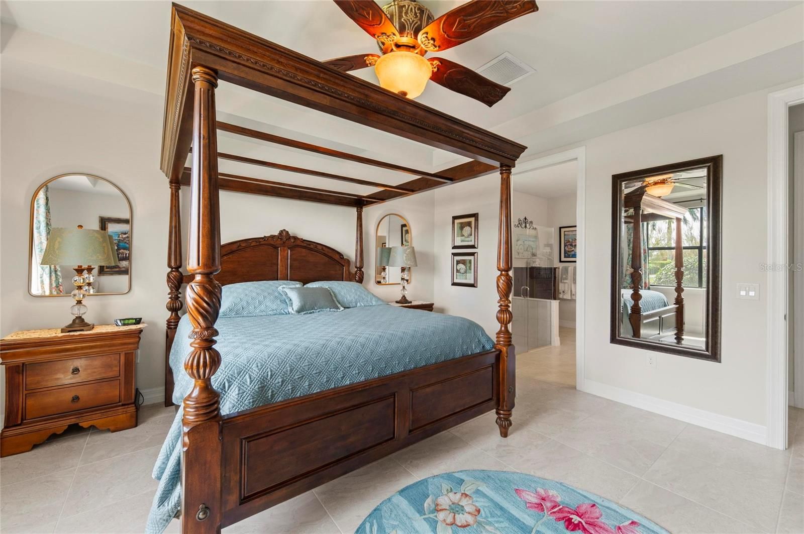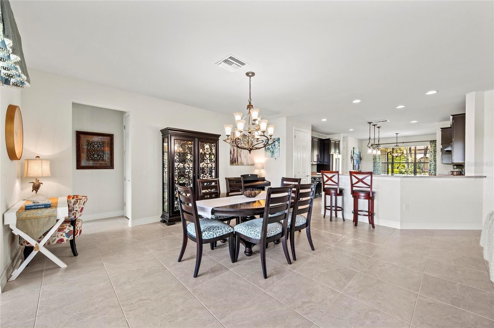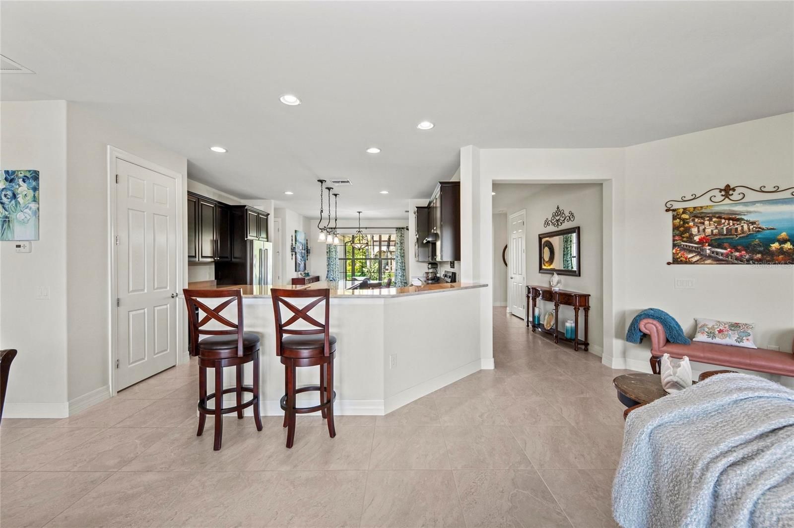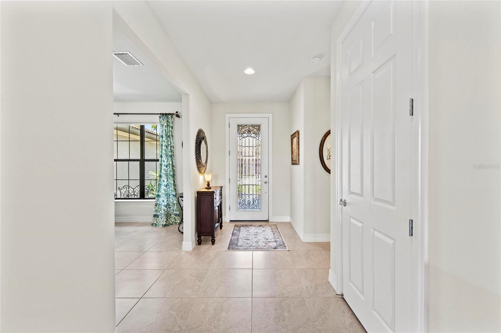 This rare Tangerly Oak model offers an exceptional opportunity to own a thoughtfully upgraded and lightly lived-in home that truly stands apart. With 2,757 square feet of living space - larger than the typical one-story Pinnacle model—this residence delivers both added space and enhanced functionality. Unlike most Pinnacle layouts, this home features four generously sized bedrooms, including a desirable second bedroom with its own private en suite bath and a large walk-in closet, perfect for guests or multi generational living. From the moment you enter, you’ll notice upscale design elements throughout, including 8-foot interior doors, higher baseboards, and tile flooring that flows seamlessly throughout the entire home. The spacious eat-in kitchen is designed for both everyday living and entertaining, offering abundant cabinetry, ample storage, and plenty of room to gather. A true highlight of the home is the one-of-a-kind wall of four sliding glass doors spanning over 15 feet, opening completely to the extended lanai for seamless indoor-outdoor living. The oversized corner lot provides exceptional privacy along with expansive, long water views, all with a sought-after southern exposure that fills the home with natural light—especially during the winter months. Step outside to your own private retreat, featuring a premium Hot Spring Prism seven-person hot tub installed in 2020. Designed for a full-body hydrotherapy experience, it includes 73 jets powered by three pumps, a deeply relaxing lounger seat, a powerful footwell jet, a freshwater salt system, multi color lighting, and a backlit waterfall for added ambiance—all offering luxury without the maintenance of a full pool. Set on an expansive 9,788 square foot executive homesite, the property also benefits from a large berm that enhances privacy and tranquility. Additional features include hurricane impact glass windows and doors throughout, including the quadruple sliders, a four-foot extended garage, and a large laundry room with plenty of space for storage and functionality. Lovingly maintained by its original owners and used only seasonally for approximately two months per year, this home has never been rented and remains in exceptional condition. Ideally located just a short walk from the impressive 14,000 square foot Resort Center, 11,000 square foot Event Center, multiple pools, and an array of world-class amenities, this home offers the perfect blend of luxury, comfort, and convenience.