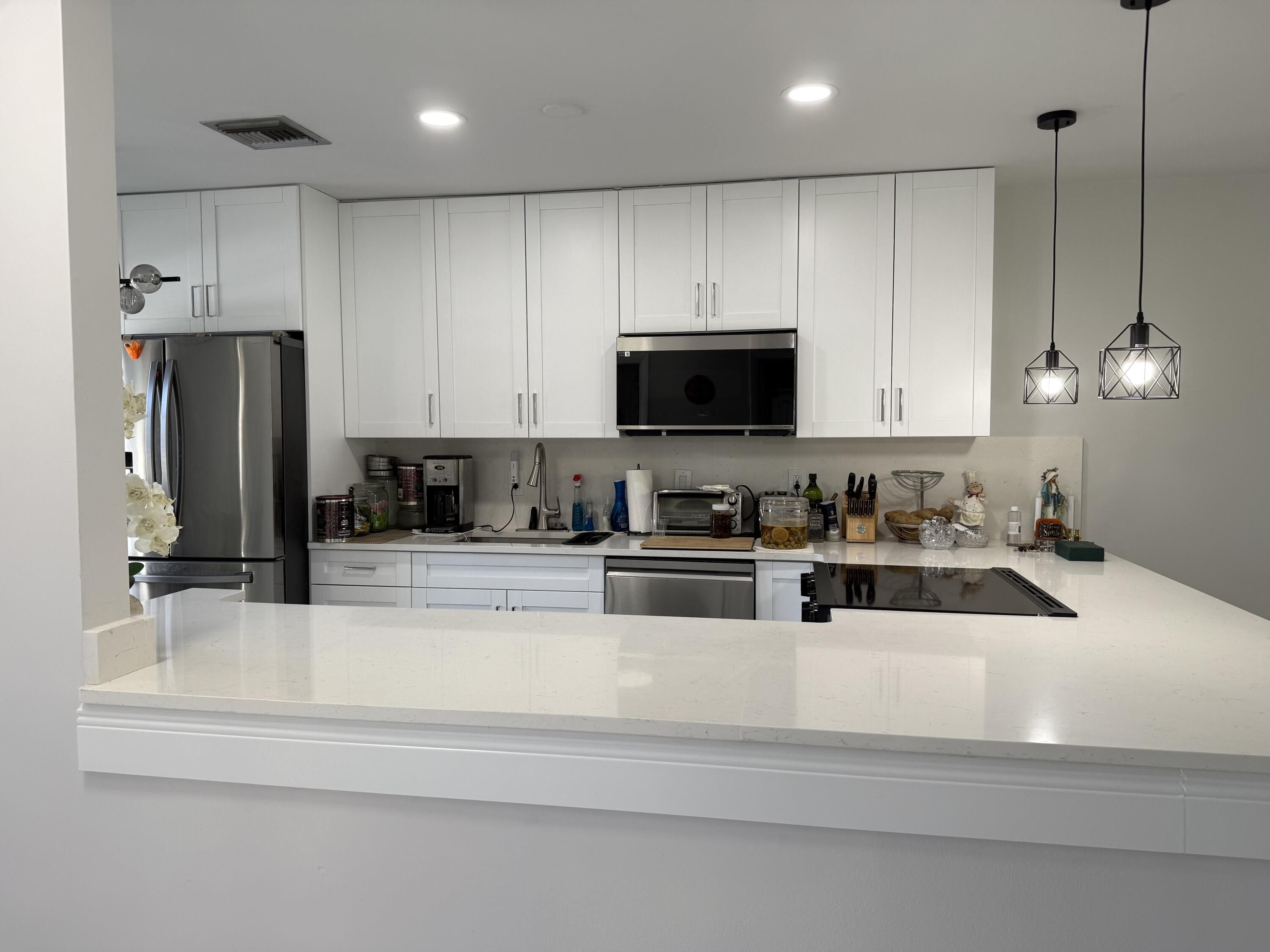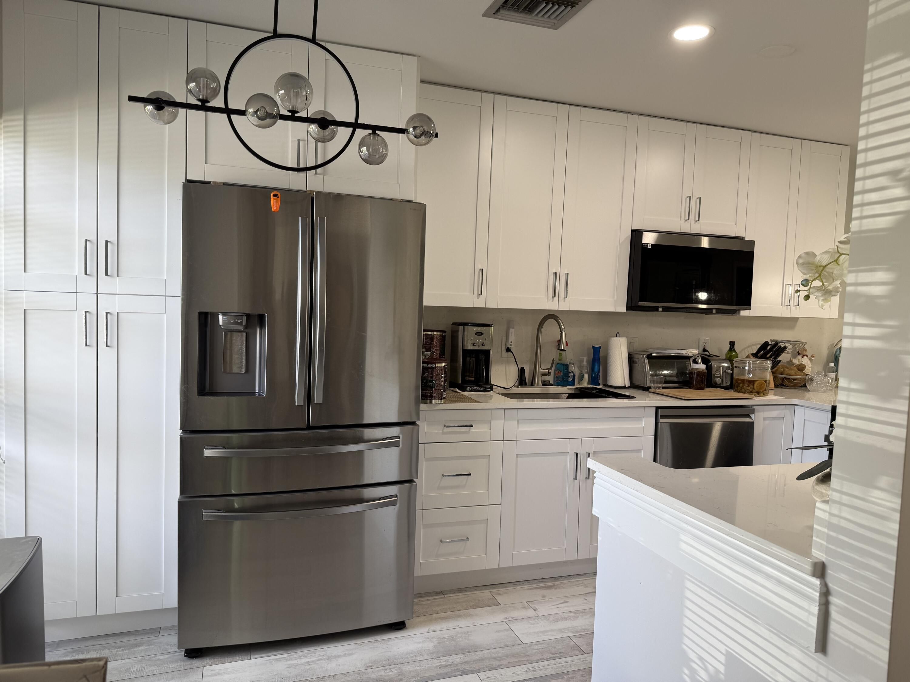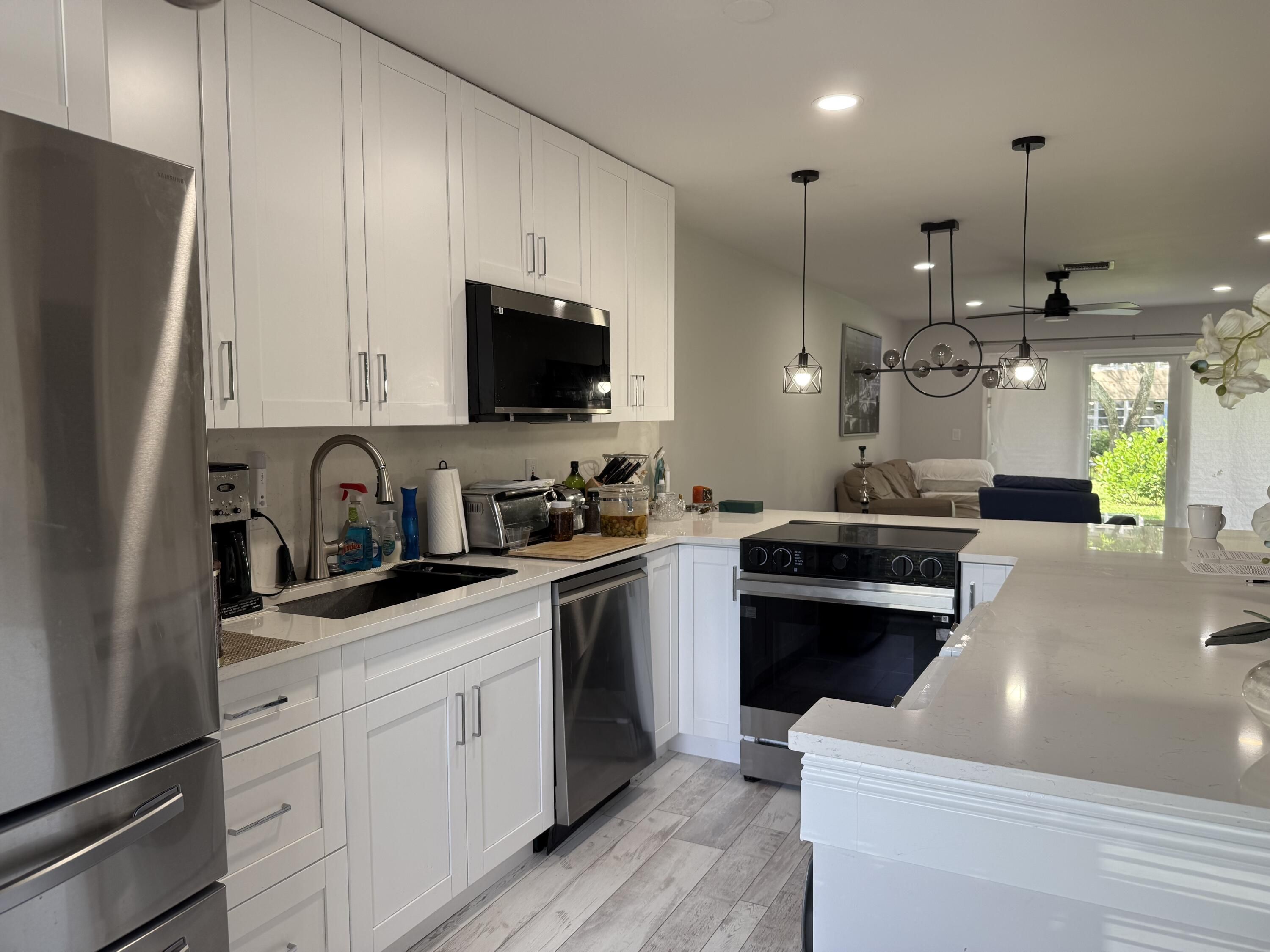 This newly renovated villa is a must see. New bathrooms, kitchen redone completely with 42 inch cabinets and stainless appliances, quartz countertops .New flooring as well as a new impact sliding door in the rear. Palm Greens new over 20,000 square foot club house to open soon. This is a must see unit. Roof was done by association in 2014.