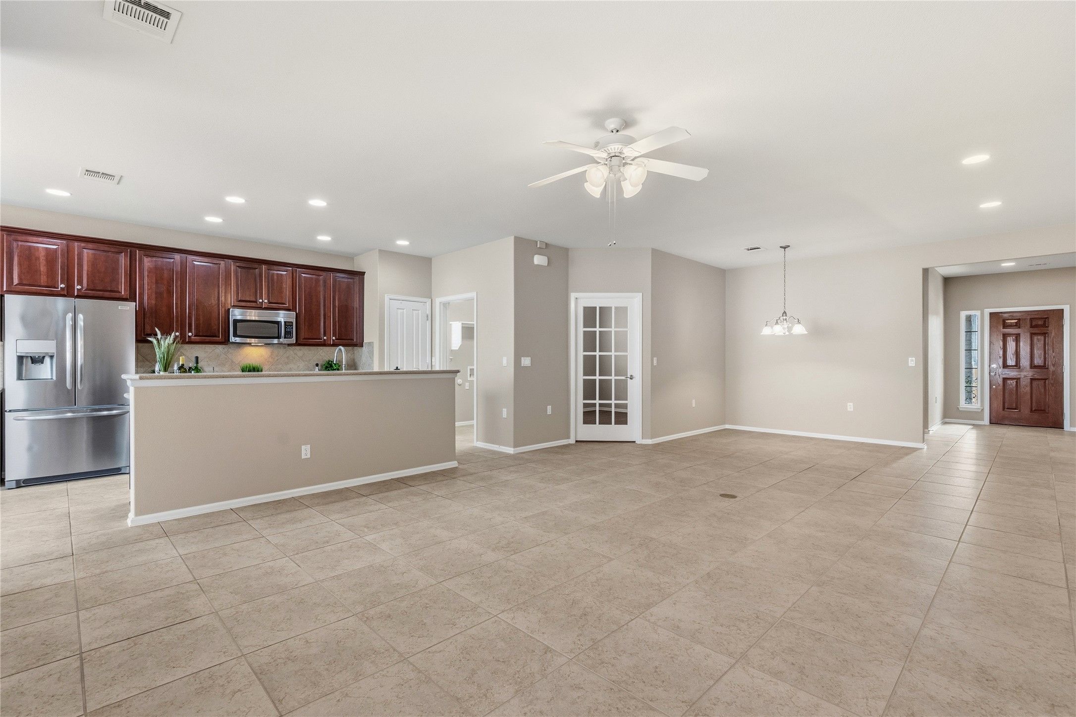 - Breakfast Bar, Ceiling Fan(s), Central Vacuum, Separate/Formal Dining Room, Entrance Foyer, High Ceilings, Multiple Dining Areas, Main Level Primary, NoInteriorSteps, Open Floorplan, Pantry, Recessed Lighting, Walk-In Closet(s), High Speed Internet