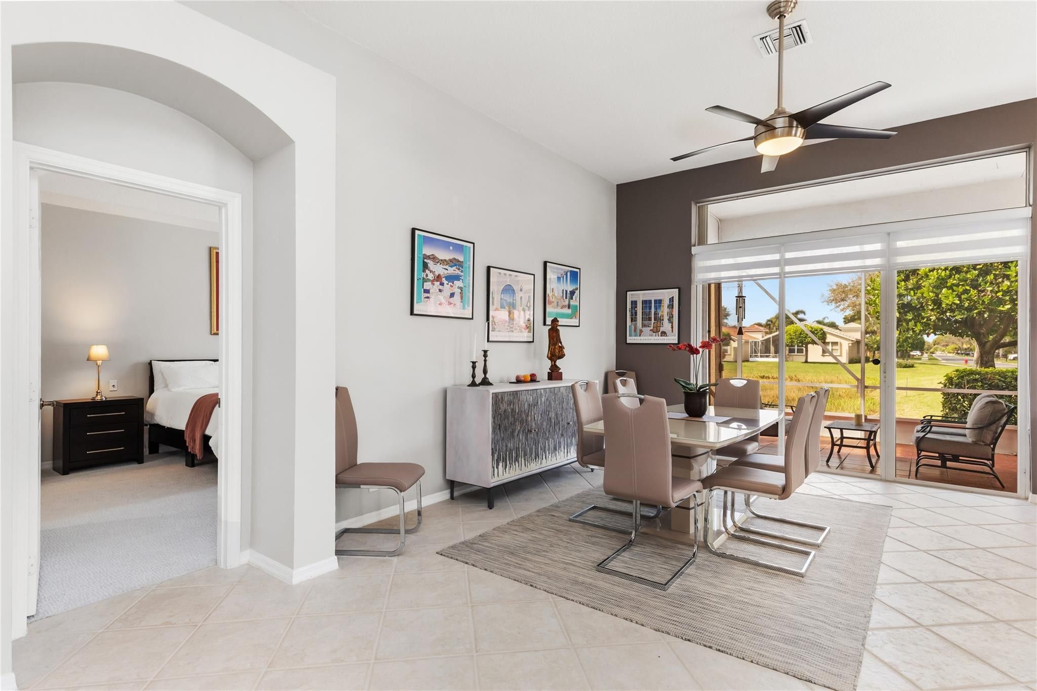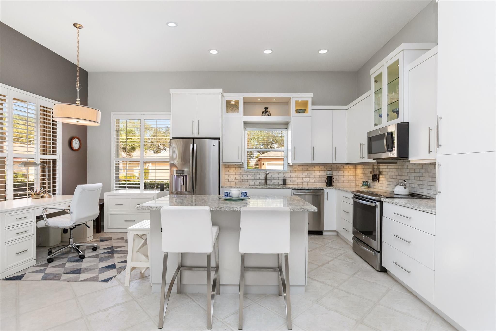 Better Move fast, this one is phenomenal! Pristine, Light & Bright Two Bedroom + Den in highly sought-after Villa Borghese. Featuring a new roof & Beautiful upgrades, this home offers a phenomenal versatile open floor plan ideal for entertaining. Gorgeous Open Kitchen with fabulous custom cabinetry, countertops & Backsplash, center island with seating, stainless appliances & tons of storage. Two Large bedrooms provide comfort and privacy, the den is perfect for guests, a home office, or multifunctional additional living space. Custom Closets & window treatments. Enjoy serene full lake views from the enormous screened patio. Just steps to the clubhouse & resort-style amenities including tennis, pickleball, pool, fitness center, ballroom, billiards, card rooms & more. Welcome home !