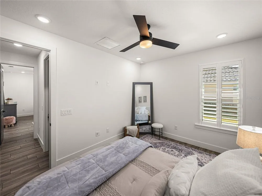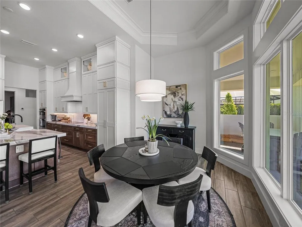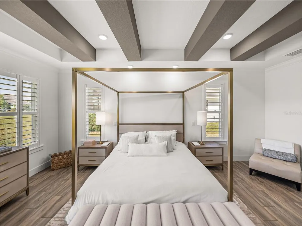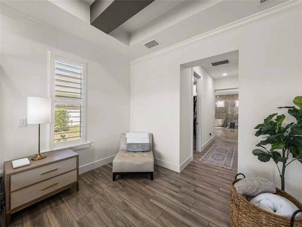 - Ceiling Fan(s), Crown Molding, Eat-in Kitchen, High Ceilings, Living/Dining Room, Open Floorplan, Main Level Primary, Solid-Wood Cabinets, Split Bedrooms, Stone Counters, Tray Ceiling(s), Walk-In Closet(s)