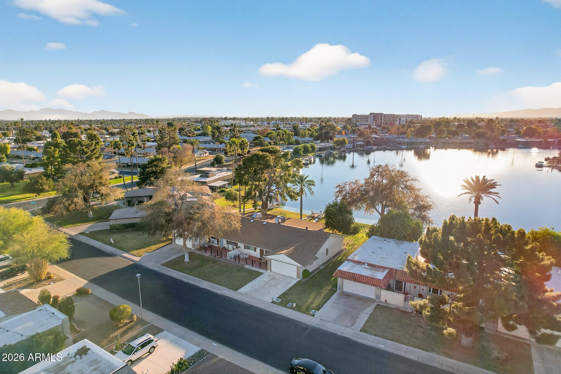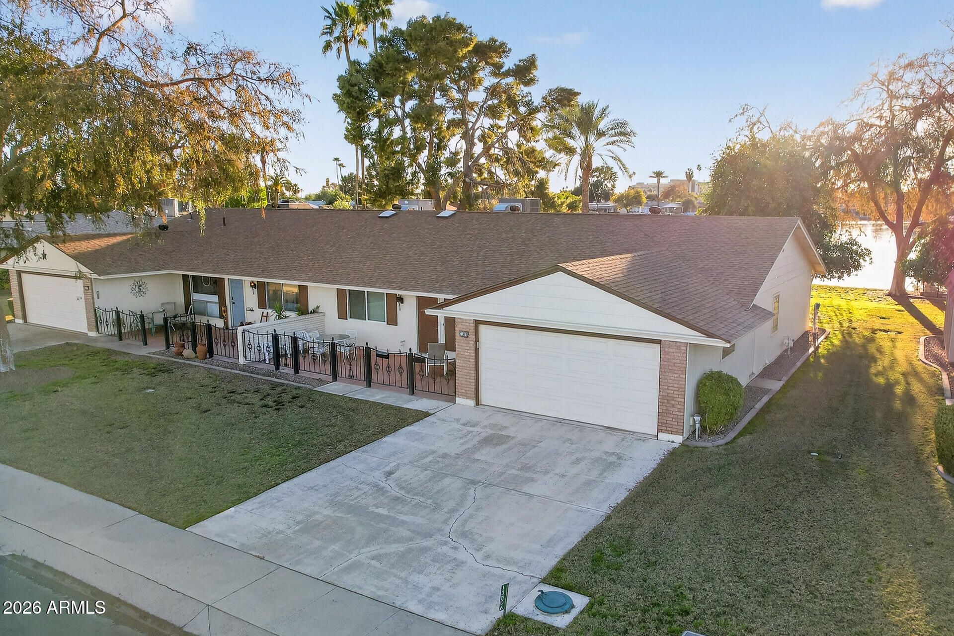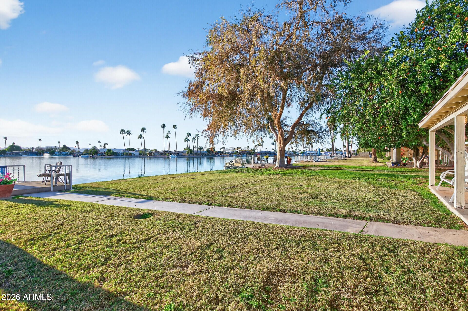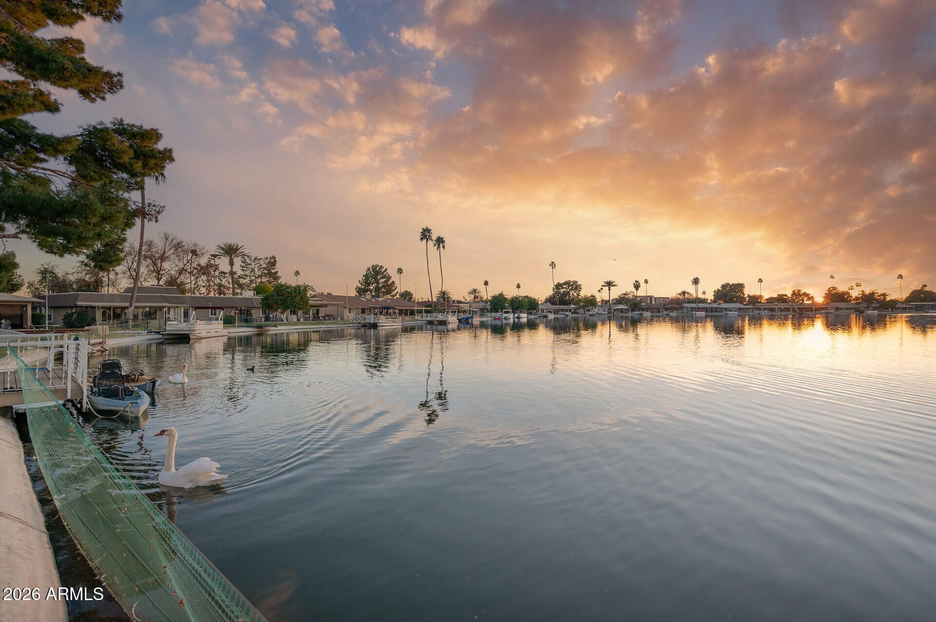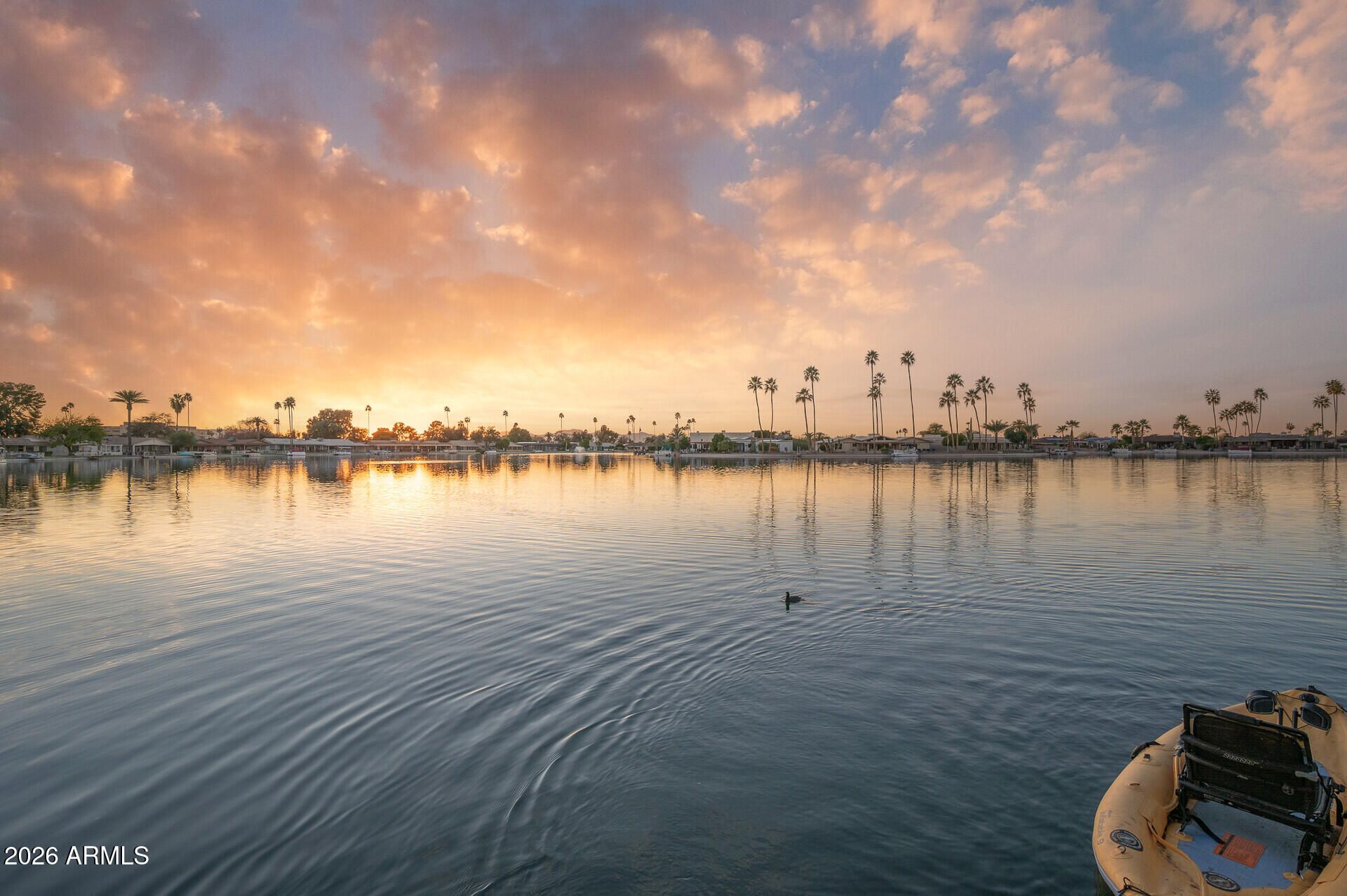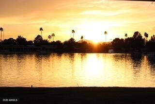 This is a Southwest Location on the pristine Dawn Lake in sunny Sun City, AZ., a turn key move-in-ready home within the Dawn Lake Condominium/Homeowners Association & market price are the 3 values this home has to offer you, the buyer, in this 55+ thriving community of Del Webb's famous Sun City, AZ. Dawn Lake Condominium Assoc.'s HOA offers outside watering, tree trimming, lawn & landscape services, as well as garbage & pest control. This is easy stress free living without worrying about maintaining your outside living space. Dawn Lake is a unique community within the walls of Sun City. You'll find friendly neighbors, canoes, kayaks, pontoons and smaller motor crafts fishing, exercising & enjoying the serenity of living on Dawn Lake. Beautiful sunrises, sunsets & moon-light cruises will delight you, the homeowner as you enjoy these moments on your lake. This lovely condo has many upgrades including stainless appliances, granite counters, newer kitchen cabinets, split bedrooms & sliding glass doors across the back of the home offering fabulous waterfront views.A shared doc with your next door neighbor insures friendly, fun, lively conversations & easy convenience to the shore. This home is accessible from the East/West Valley for dining, entertainment, shopping & sports. This carefree life style in the well known & famous First Sun City on the spectacular Dawn Lake can be yours NOW and FOREVER!!!