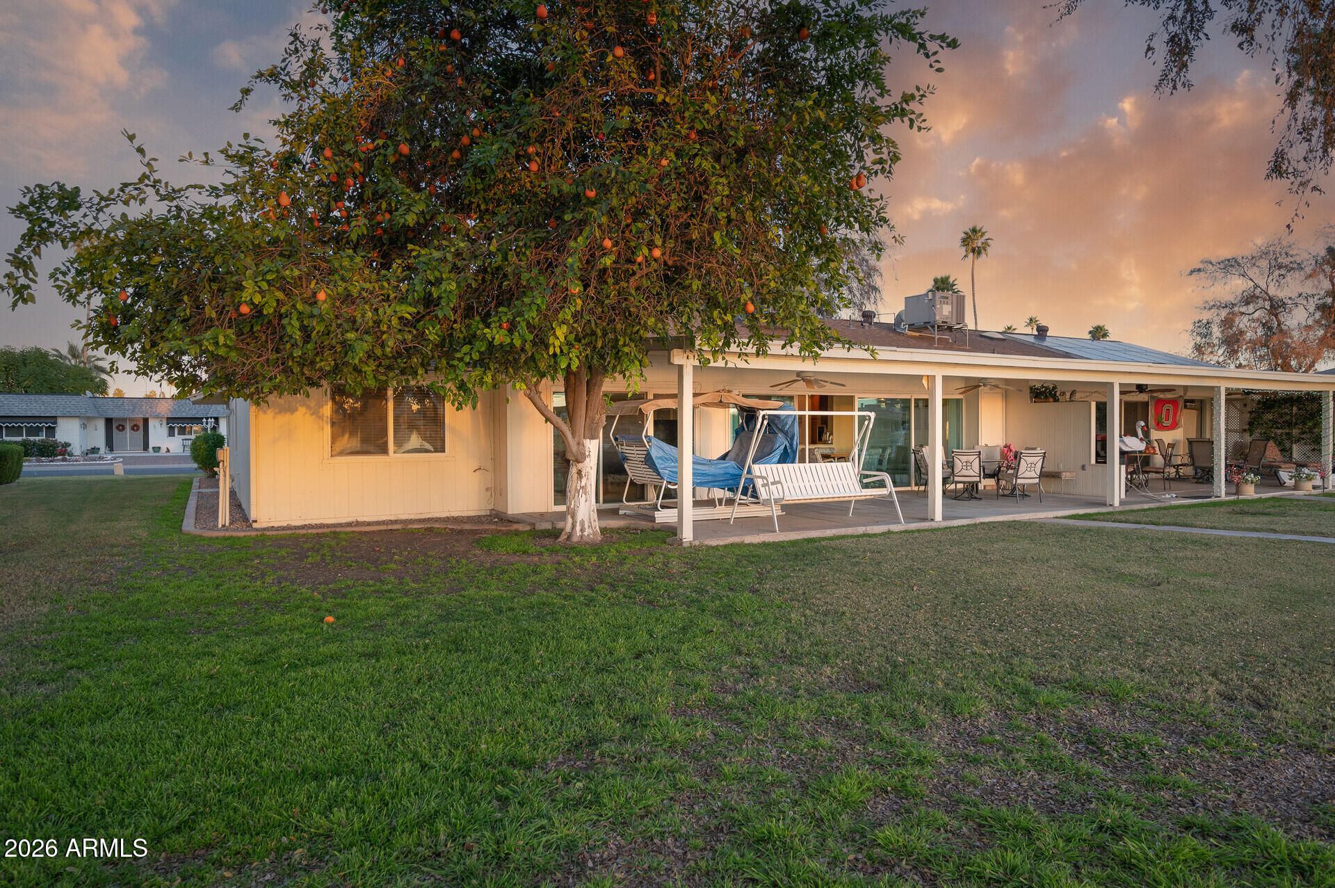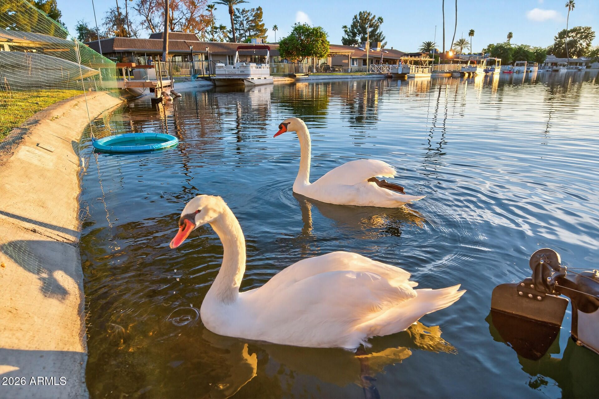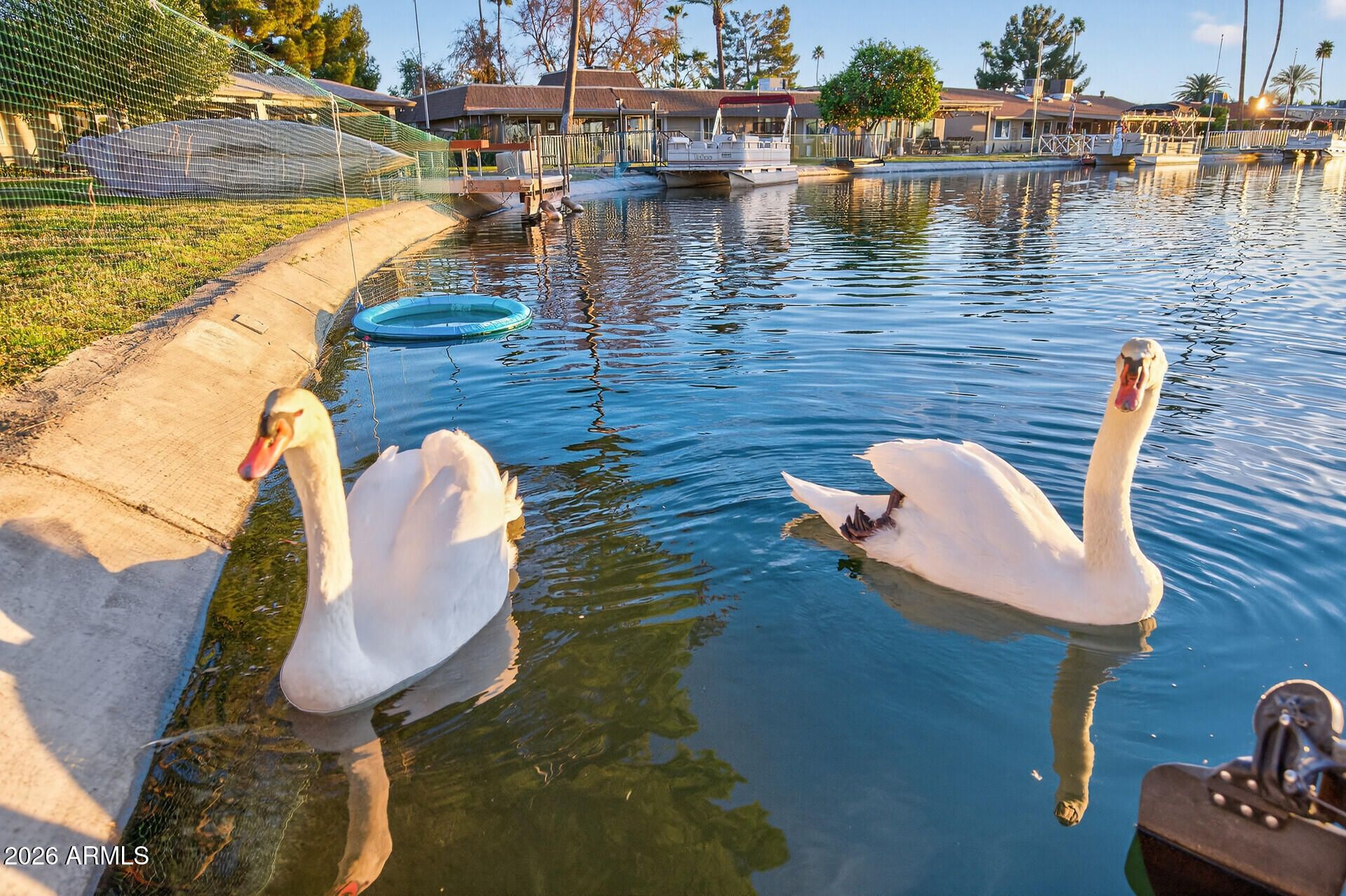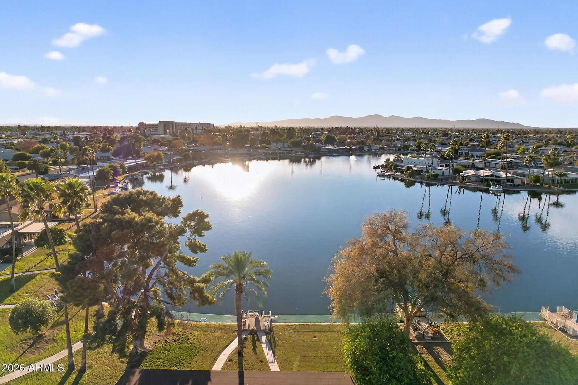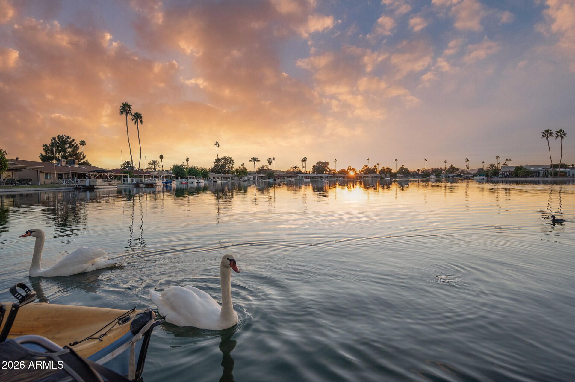 This is a Southwest Location on the pristine Dawn Lake in sunny Sun City, AZ., a turn key move-in-ready home within the Dawn Lake Condominium/Homeowners Association & market price are the 3 values this home has to offer you, the buyer, in this 55+ thriving community of Del Webb's famous Sun City, AZ. Dawn Lake Condominium Assoc.'s HOA offers outside watering, tree trimming, lawn & landscape services, as well as garbage & pest control. This is easy stress free living without worrying about maintaining your outside living space. Dawn Lake is a unique community within the walls of Sun City. You'll find friendly neighbors, canoes, kayaks, pontoons and smaller motor crafts fishing, exercising & enjoying the serenity of living on Dawn Lake. Beautiful sunrises, sunsets & moon-light cruises will delight you, the homeowner as you enjoy these moments on your lake. This lovely condo has many upgrades including stainless appliances, granite counters, newer kitchen cabinets, split bedrooms & sliding glass doors across the back of the home offering fabulous waterfront views.A shared doc with your next door neighbor insures friendly, fun, lively conversations & easy convenience to the shore. This home is accessible from the East/West Valley for dining, entertainment, shopping & sports. This carefree life style in the well known & famous First Sun City on the spectacular Dawn Lake can be yours NOW and FOREVER!!!
