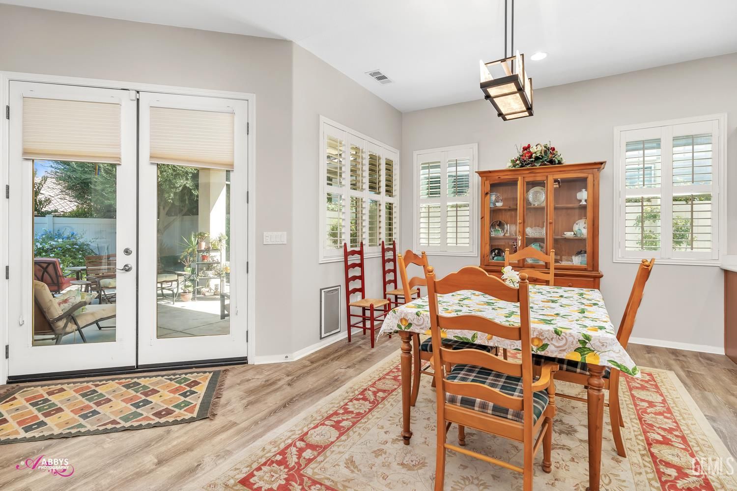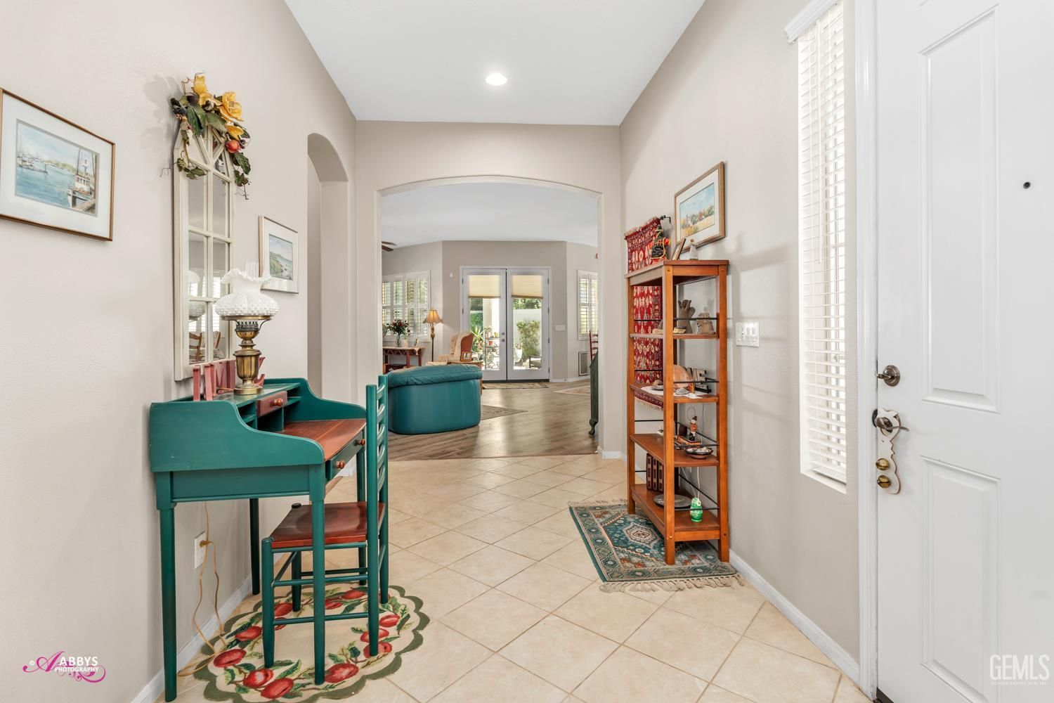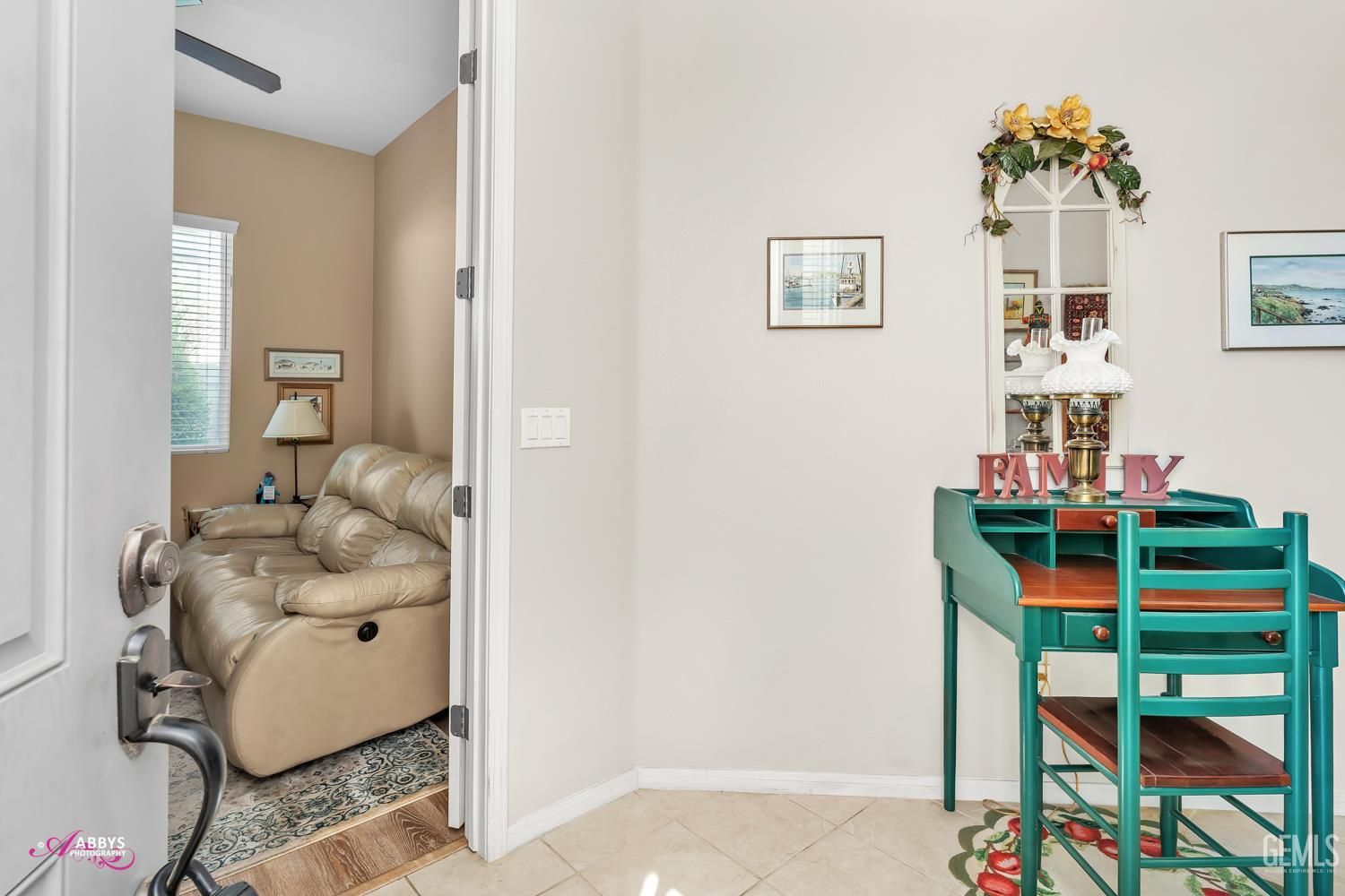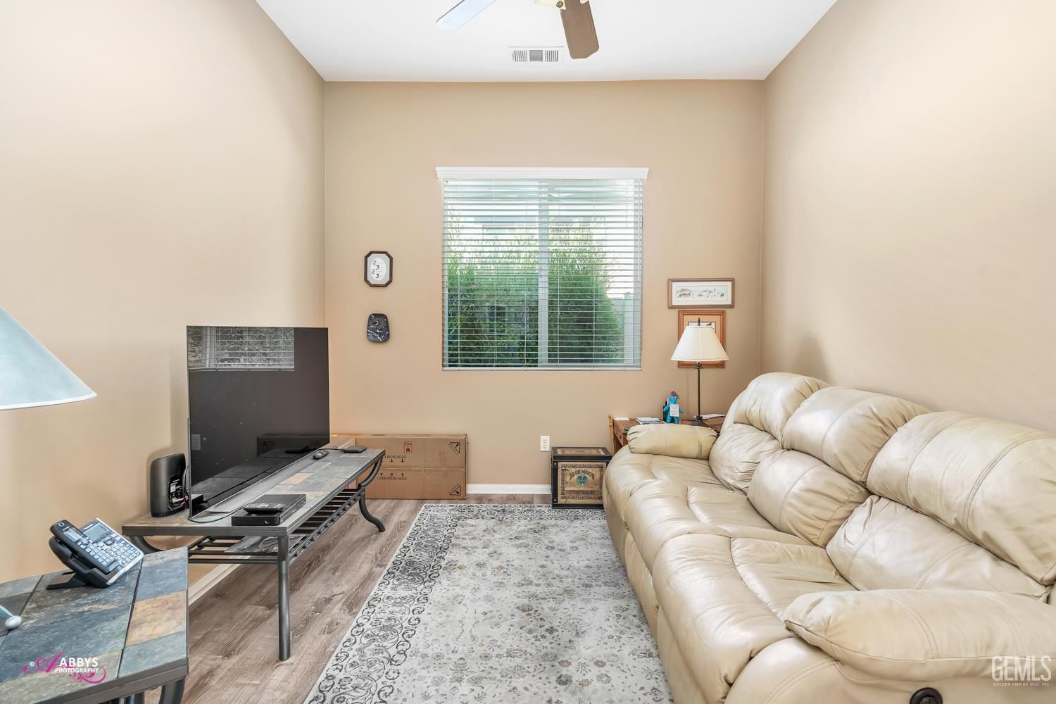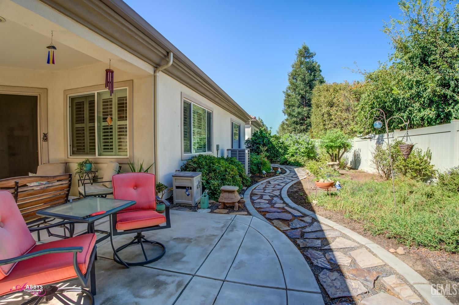 Solera @ Kern Canyon - a gated 55+ community with resort-style living. This popular split wing floorplan has 2 bedrooms plus office/den, 2.5 baths. Great room with fireplace open to dining area and kitchen. Luxury vinyl flooring throughout except guest bedroom; tile in kitchen, laundry &baths. Kitchen w/island, pantry, lots of cabinets. Shutters, 2'' blinds & fans throughout. Primary suite w/soaking tub, large shower, 2 sinks, large walk-in closet. Indoor laundry w/sink & cabinets. 2 plus golf cart garage with California Closet cabinets & newer garage door openers. Newer AC unit, paid Solar panels. Water-saving newer dry-scape landscaping in front yard; relax and entertain in the easy to maintain backyard with covered patio & extended concrete & slate-rock pathway, plus 5x6 shed. Enjoy the community amenities including clubhouse with gym, pool, spa, tennis, pickleball & bocce courts plus lots of clubs and activities.