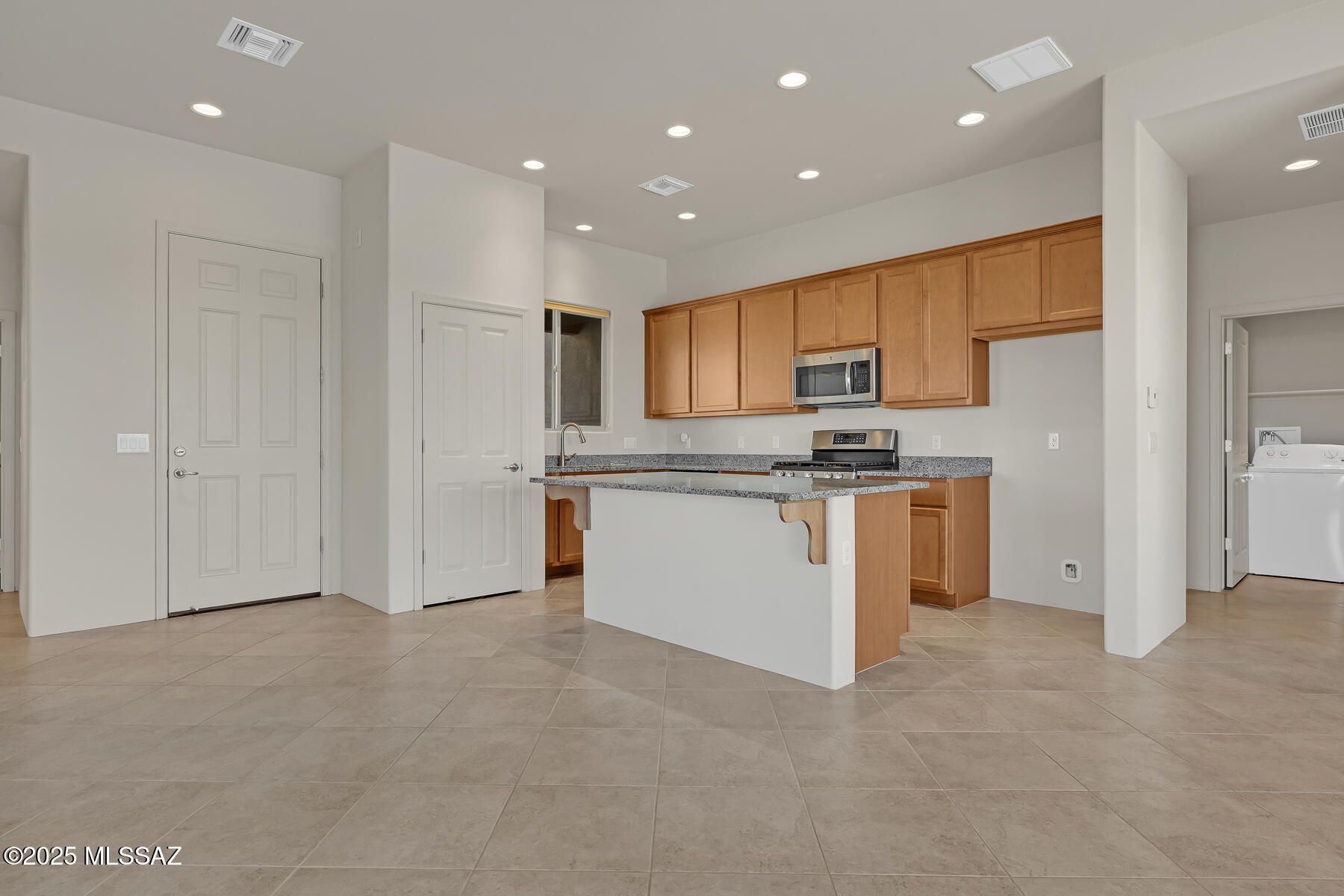 Enjoy easy, comfortable desert living in this thoughtfully updated Bigelow Plan, The open, welcoming layout features a bright kitchen with rich 42'' cabinetry, granite island seating, and a great room framed by a large picture window that brings in natural light and serene desert views. The primary suite is privately located and offers direct backyard access, dual vanities, and a spacious walk-in shower designed with comfort and convenience in mind. A flexible den provides ideal space for hobbies, a home office, or visiting guests. Step outside to a quiet, private patio overlooking untouched desert, perfect for peaceful mornings, relaxing evenings, or simply enjoying the beauty and privacy that make this setting special. Located in Academy Village, one of Southern Arizona's most
