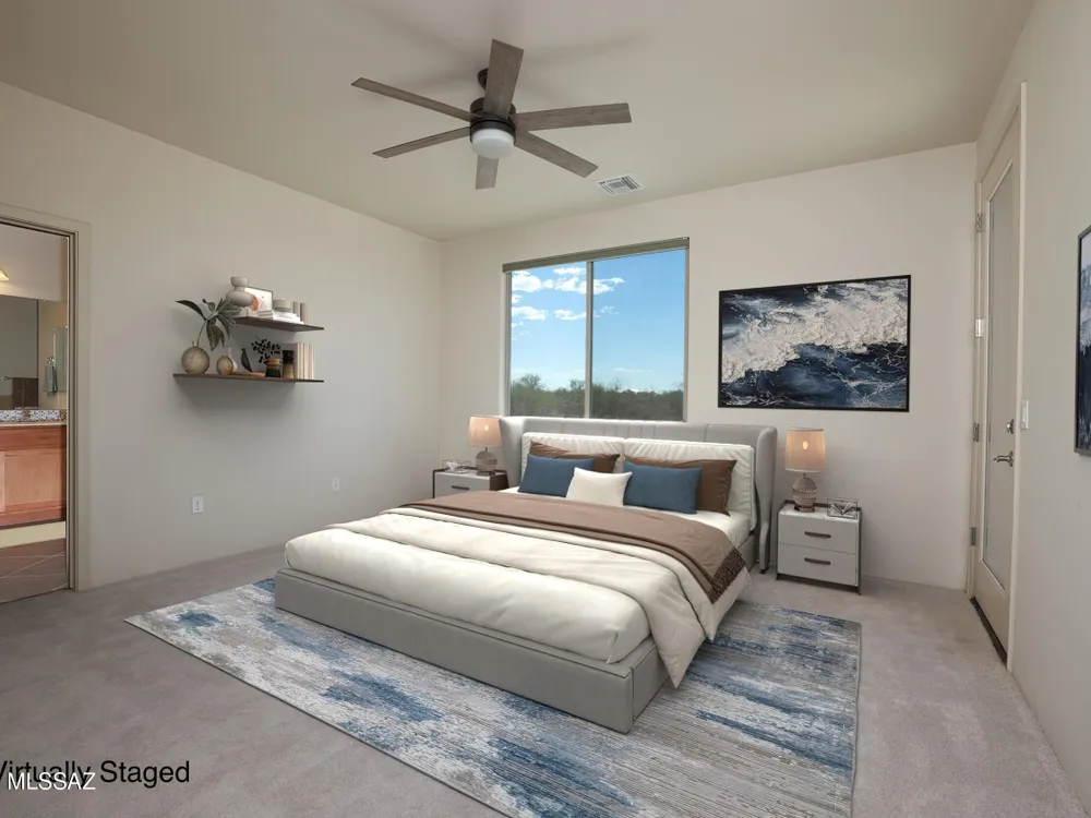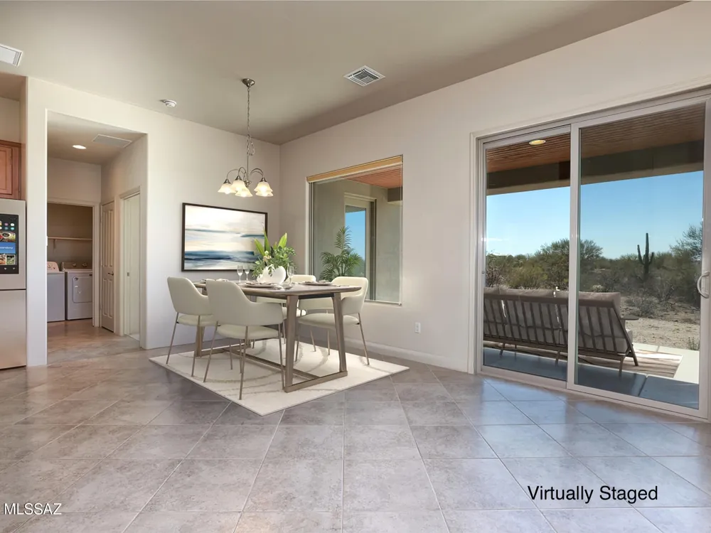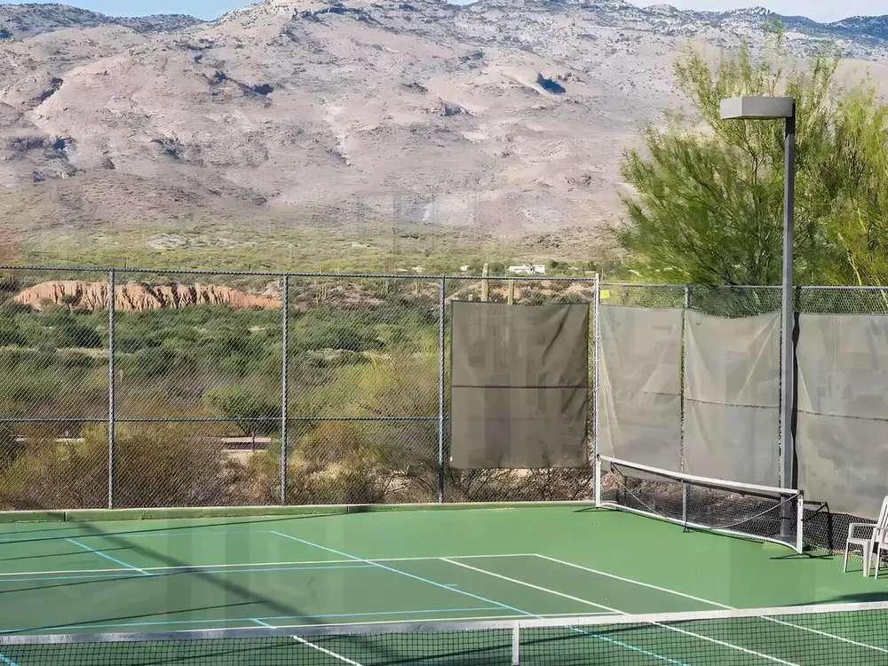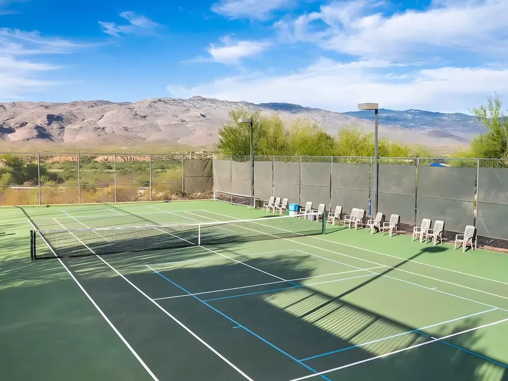 Discover the best of active adult living in this sought-after Bigelow Plan with a split-bedroom design, versatile den, and an upgraded kitchen featuring granite island and 42'' maple cabinets. The private primary suite offers dual vanities, a walk-in shower, and patio access for seamless indoor-outdoor living. Step outside to your quiet backyard with no rear neighbors and a peaceful natural desert backdrop, perfect for morning coffee or evening sunsets. Low-maintenance landscaping means more time to enjoy the community's resort-style amenities, including a pool, spa, fitness center, tennis, pickleball, clubs, concerts, and wellness programs. Academy Village is one of Southern Arizona's most distinctive 55+ communities, where desert-inspired architecture blends with stunning surroundings.