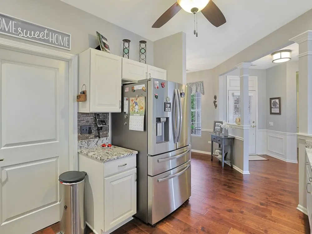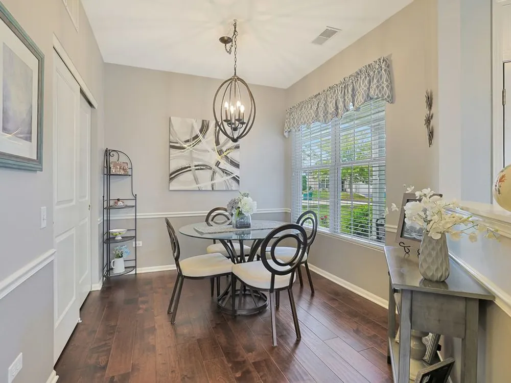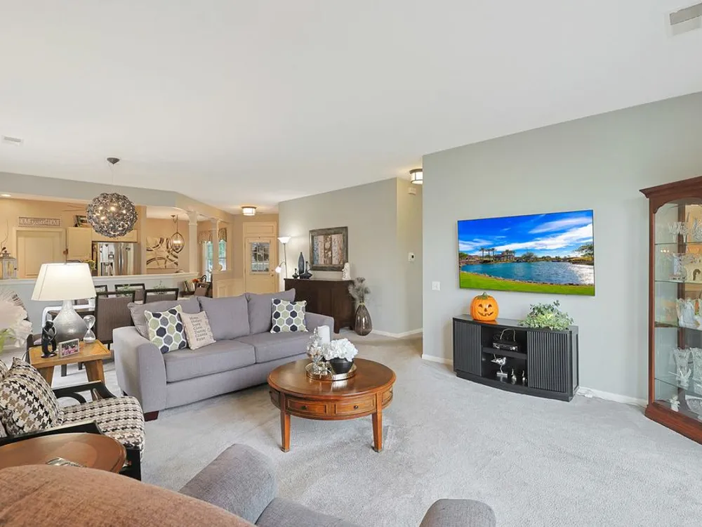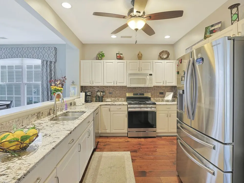 Impeccably maintained and updated Drury plan featuring 2 bedrooms, 2 baths, and a versatile flex room! The open-concept kitchen is designed for entertaining, with crisp white cabinetry, granite counters, a spacious pantry, and a breakfast area. Overlooking the dining and family rooms, it keeps you connected to the heart of the home. The primary suite is a true retreat with a bay window and ensuite with dual sinks, and a step-in shower. Guests will feel right at home in the second bedroom, conveniently located near the full guest bath. The flex room/den offers endless possibilities-whether for reading, crafts, or a home office. Peace of mind comes with important updates including newer HVAC (2019) and roof (2021). Outside your door, this vibrant 55+ community offers resort-style living with clubhouses, pools, fitness centers, pickleball, on-site golf, dining, and more. This home is move-in ready and sure to impress! Primary bedroom furniture is available to purchase.