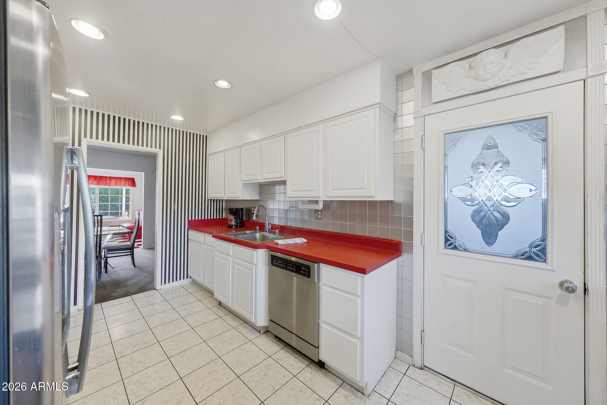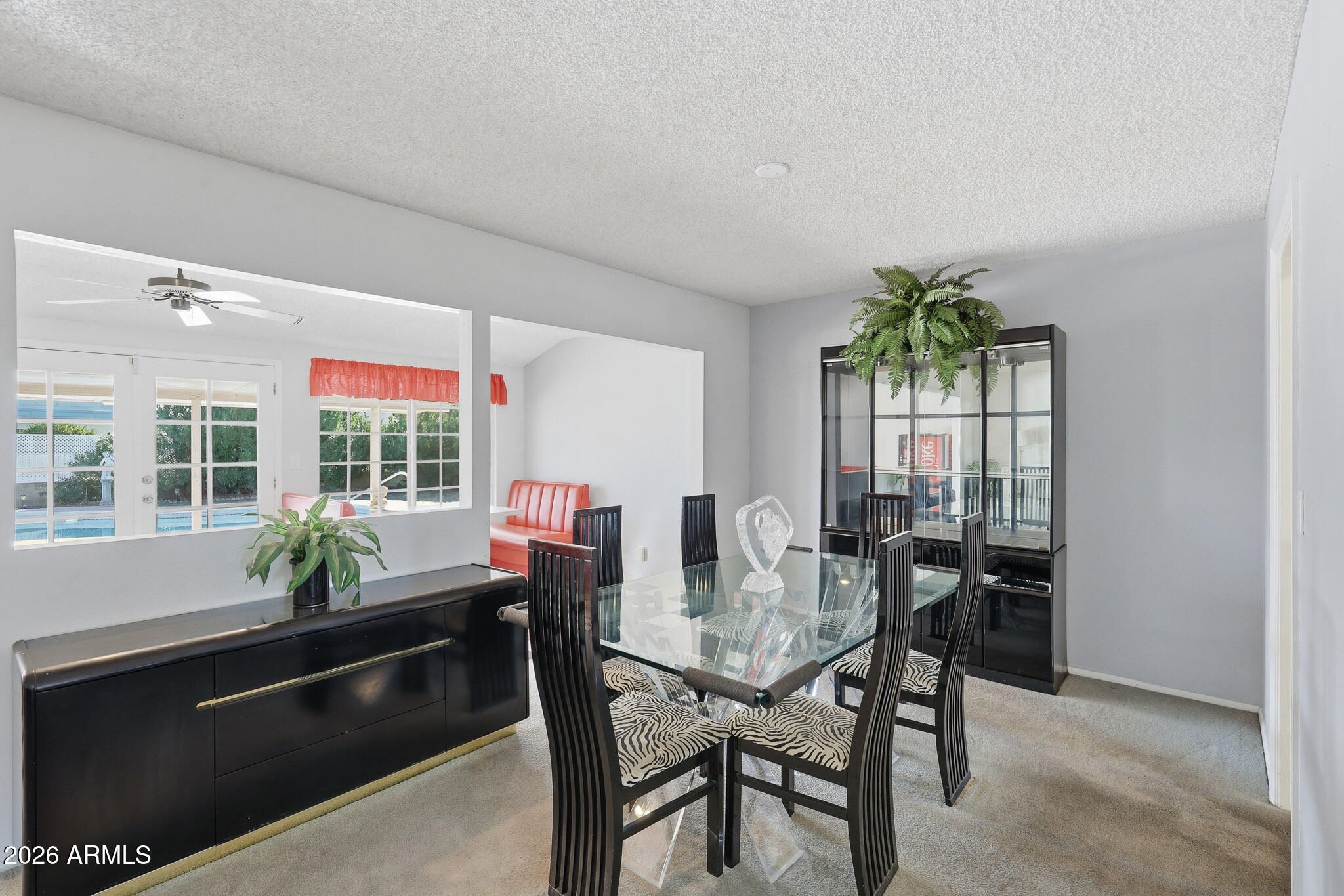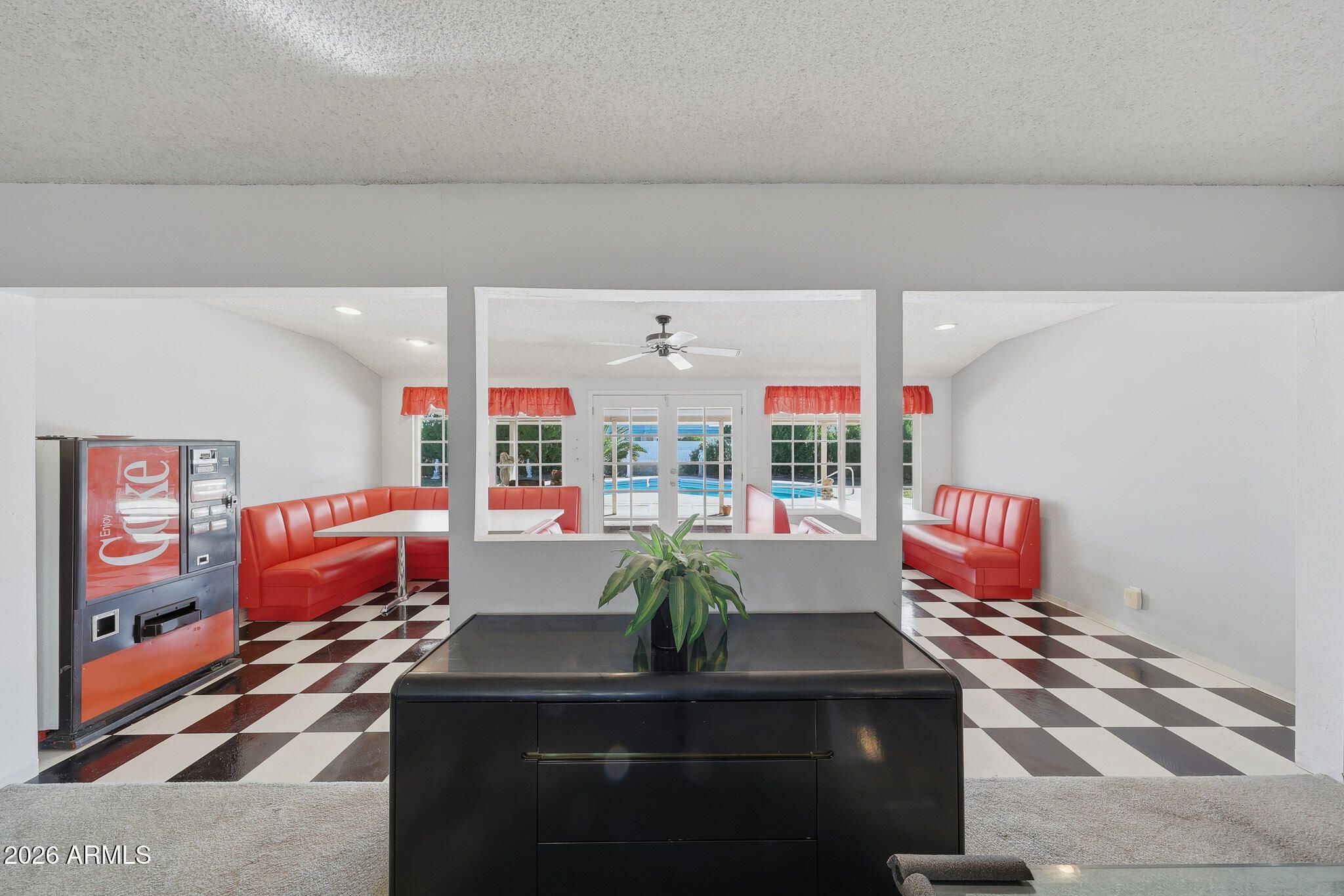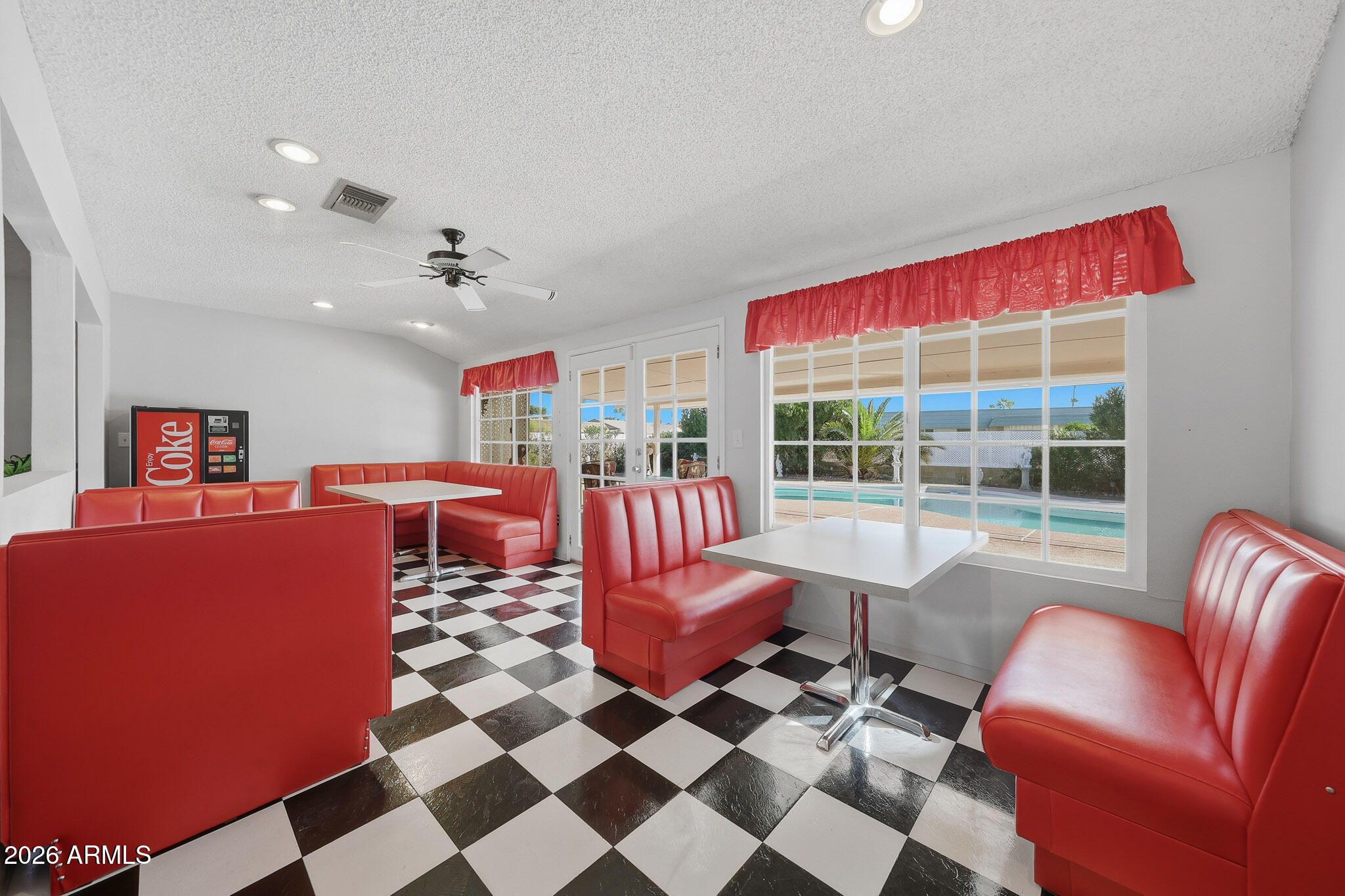 Nestled On A Corner Lot At The End Of A Quiet Cul-De-Sac, This Sought After Expanded Coconino Model In Sun City Offers A Rare Combination Of Space, Character, And Private Pool. The Backyard Is The True Showpiece, Featuring A Sparkling Pool And A Covered Patio. Perfect For Relaxing Or Entertaining Year-Round. The Rear Of The Home Has Been Expanded To Create A Unique, Restaurant-Style Entertaining Space. The Tables And Booths Are Fully Portable And Can Easily Be Removed To Suit A More Traditional Living Arrangement. Inside, The Bright And Functional Galley Kitchen Offers Ample Workspace And Stainless Steel Appliances. Both Bathrooms Have Been Updated With Newer Vanities And Toilets. The Generously Sized Bedrooms Provide Comfortable Living, With The Primary Suite Featuring A Walk-In Closet. Additional Storage And Flexibility Are Found In The Utility/Workshop Area Located Behind The Garage. This Distinctive Home Is Truly One Of A Kind And Must Be Seen To Be Appreciated. Please Stop By And See It Soon!