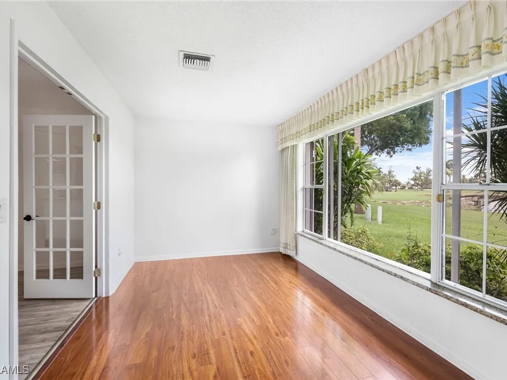 INCREDIBLE PRICE and MOTIVATED SELLER! This prime location single-story 3+DEN / 2.5 BATH villa in BRANDYWINE - with a GOLF COURSE VIEW of the semi-private Myerlee Country Club golf course from nearly every room - offers the feel of a single family home with the conveniences of maintenance-free condo living. Brandywine is an ACTIVE, GATED, 55+ community with SO MANY AMENITIES - TWO POOLS, spa, exercise room, billiards, tennis, bocce, pickleball, library, community room, clubs, crafts, and events - PLUS fiber optic TV/INTERNET INCLUDED! Your spacious villa will offer 2256 sf of living and dining space that includes an extra ENCLOSED, ALL-SEASON SUNROOM WITH AC, plus the addition of an over-sized TWO-CAR GARAGE with built-in storage. The kitchen offers classic-style wood cabinets, granite countertops, under-cabinet lighting, pantry, and a new refrigerator. The BONUS ROOM across the rear of the condo offers a flexible space for relaxing and entertaining as well as that spectacular golf course view. The large primary bedroom suite has a walk-in closet, an additional closet, and a luxurious master bath with dual sinks and a vanity. The second bedroom and guest bath can be closed off with a pocket door, making it a private suite for family and guests. The third bedroom has its own half-bath. Added features include: INSIDE LAUNDRY with utility sink, 2021 HVAC system, incredible closet and storage space, a Skeeter Beater garage screen, STORM SHUTTERS, WIRING FOR A WHOLE HOUSE GENERATOR and a BRAND-NEW ROOF with the ASSESSMENT PAID. Brandywine is conveniently located to the beach, golf, BB Mann theater, MLB sports complexes, shopping, dining, churches, parks, and more! Some photos have been digitally enhanced. Schedule your showing today! You will love the Brandywine lifestyle!