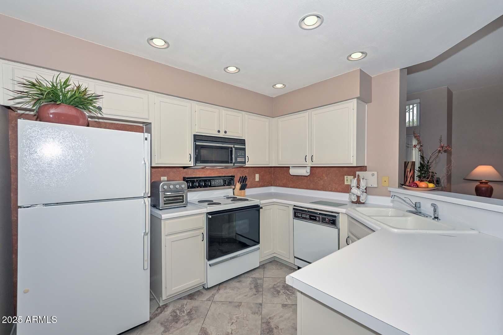 Absolutely charming 2 bedroom/2 bath Gemini Twin home in lovely Sun City West. From the minute you walk in - you will feel at home. Open concept living with loads of natural light and a cozy living area. Very usable kitchen with ample counter and cabinet space as well as a breakfast bar and a designed area for a breakfast table overlooking the green space. Room off the kitchen that is being used as a large desk/office. 2 nice sized bedrooms and baths giving this home the perfect feel for a permanent resident or winter visitor. Covered patio overlooks the common area with lush landscaping that you don't have to worry about! This home is perfect.