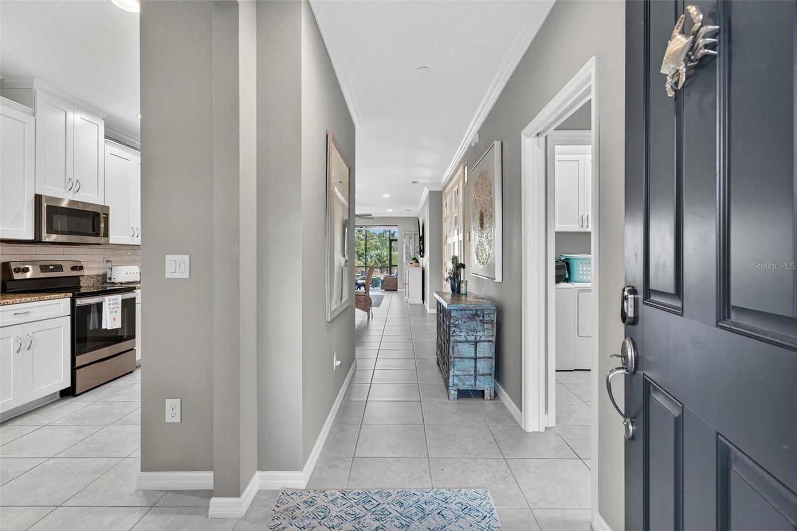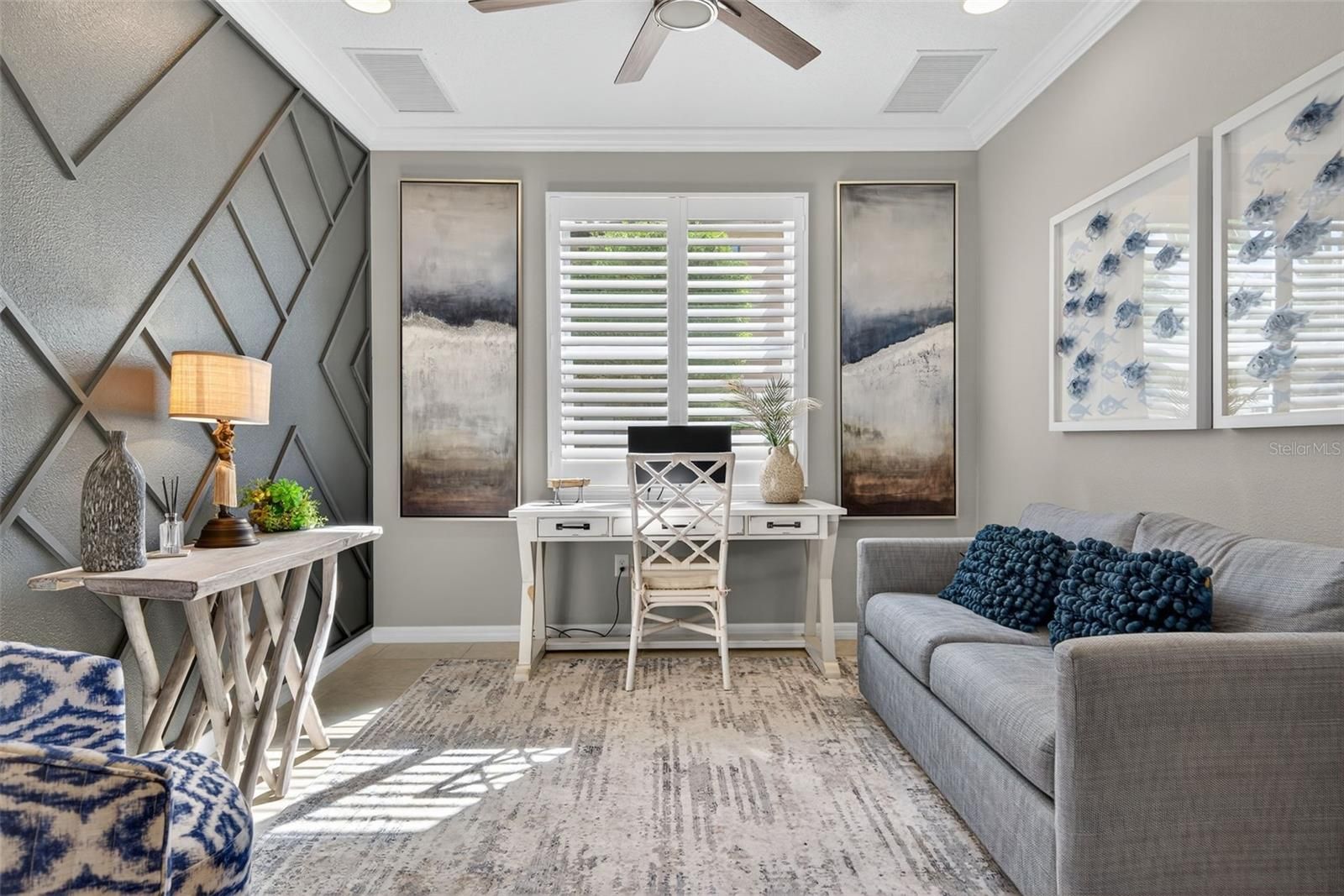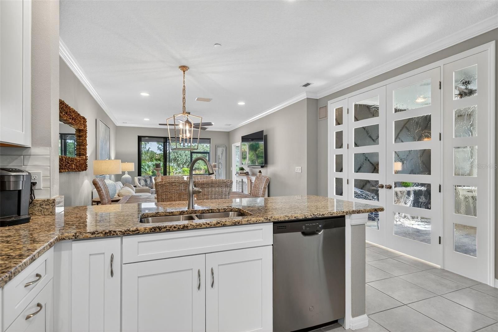 Discover the ultimate blend of elegance and resort-style living in this first-floor, golf-deeded end unit perfectly situated along the 5th fairway in the highly sought-after Esplanade Golf & Country Club of Lakewood Ranch. This immaculate 2-bedroom plus den, 2-bath residence with a 1-car detached garage featuring upgraded epoxy flooring offers both sophistication and functionality in every detail. Step inside to find freshly painted interiors complemented by custom plantation shutters and a versatile den enhanced by a striking accent wall, ideal for a home office or guest retreat. The chef-inspired kitchen is the heart of the home, boasting stainless steel appliances, granite countertops, tile backsplash, and upgraded lighting, along with thoughtful touches like a custom wine fridge, soft-close garbage and recycling drawer, and extended cabinetry above the refrigerator for added storage and style. The spacious primary suite provides a serene retreat with a custom-designed closet and a private ensuite bath, while the laundry room has been thoughtfully upgraded with new wall cabinets and freestanding storage. Additional features include keyless and keypad entry, providing convenience and peace of mind. Relax on your private screened lanai and enjoy sweeping views of the manicured 5th fairway, where peaceful mornings and golden sunsets await. Resort-style amenities define life at Esplanade Golf & Country Club—from championship golf and fine dining at the Culinary Center, to socializing at the tiki bar, two state-of-the-art fitness centers, tennis, pickleball, bocce, and a vibrant calendar of community events. Located in Lakewood Ranch, the #1 master-planned community in the nation, you’re just minutes from fine dining, boutique shopping, UTC Mall, Waterside Place, downtown Sarasota, and the world-famous Gulf beaches.