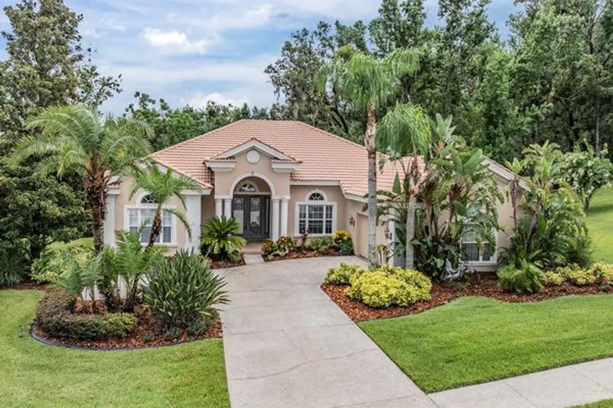 One or more photo(s) has been virtually staged. Enjoy your own TROPICAL OASIS in this Nohl Crest Homes award-winning “Kent” model which is nestled on a 0.62-acre lot and #2 tee of the South Course in the sought-after gated community of Lake Jovita Golf & Country Club. This 4BR/3BA + den/bonus, 2,825 sq.ft. home features a split floor plan with soaring 12’ ceilings, elegant archways, and architectural details throughout. Double leaded-glass entry doors lead to a grand foyer with tile flooring throughout the main living area. The Formal living & dining rooms, spacious family room, and a bright conservatory/office is ideal for entertaining. The kitchen boasts solid wood honey maple cabinetry, a large island, butler’s pantry, and a mitered glass window in the dinette area which overlooks the lush landscaping surrounding the spacious screened lanai and heated POOL and SPA —designed for maximum beauty and seclusion. The expansive primary suite includes access to the pool area, 2 walk-in closets, garden tub, walk-in shower and dual vanities. The split floor plan places the additional three bedrooms and 2 bathrooms on the opposite side of the home for added privacy. The oversized side entry 2.5 car garage offers ample storage space and comfortably fits 2 vehicles plus space for a golf cart. This home is complete with a New 5- ton Heat Pump HVAC (2022), Hot water heater (2022), Pool pump and heater (2020), Whirlpool washer & dryer (2020), Whirlpool microwave (2023), Dishwasher (2020), Kitchen faucet & disposal (2025), Sliding door glass and rollers replaced (2024), Irrigation system (2024), New toilets installed (2025), Smoke detectors replaced (2025) and LG Range (2023). Enjoy the Country Club lifestyle with optional memberships available. RESORT STYLE AMENITES include 2 Championship Golf courses, Jr Olympic Pool, tennis, pickleball, fitness center, Pro shop, 2 dog parks, social activities and an onsite restaurant. Located just North of Tampa with easy access to major highways to Orlando, Ocala, Lakeland, Tampa International, Orlando and St. Pete/Clearwater Airports and award-winning Beaches. Luxury living at its best! Don’t miss this exceptional opportunity—schedule your private showing today!