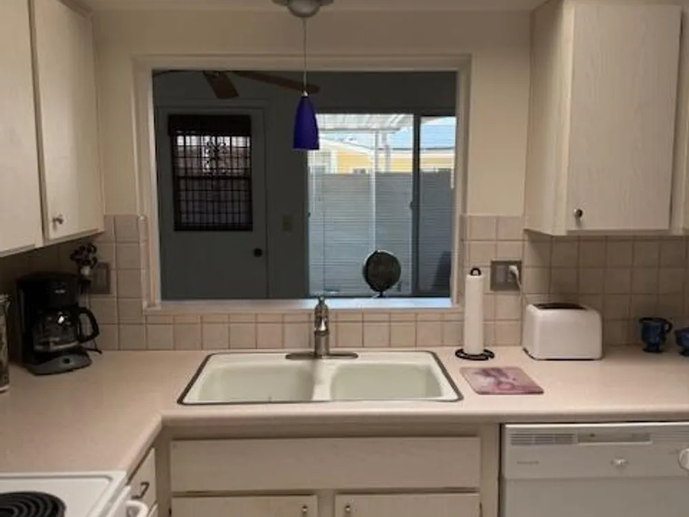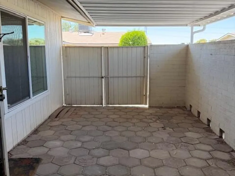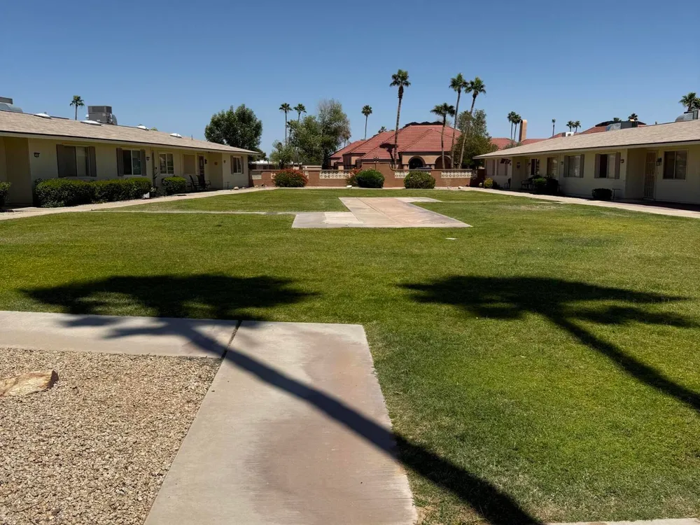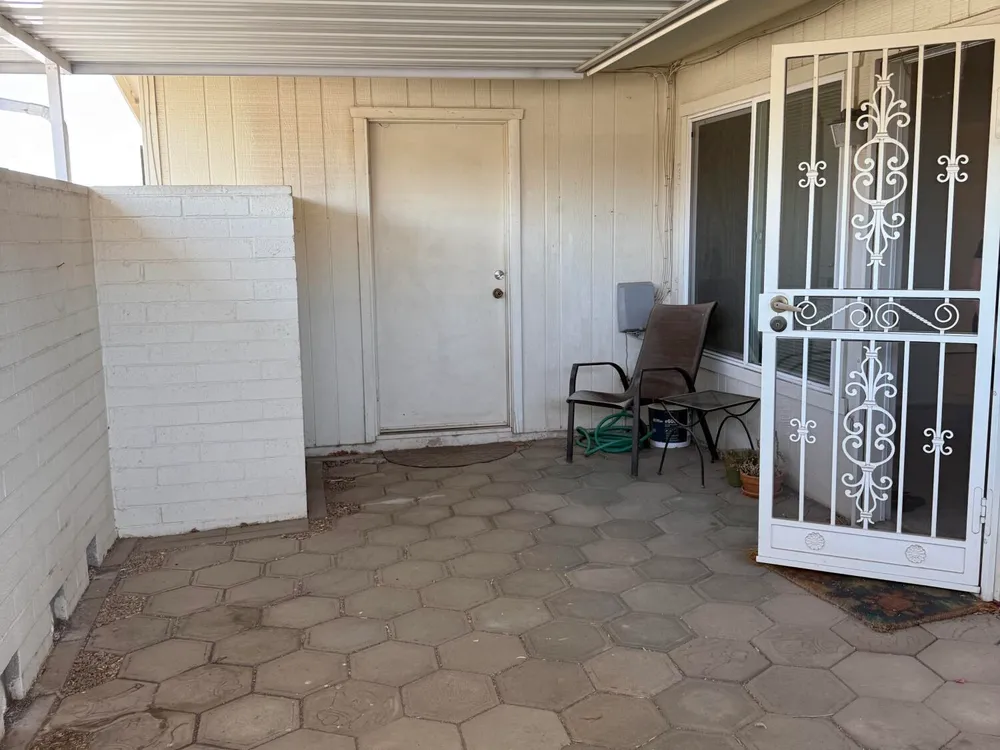 Great location , patio home/condo. Just the right amount of room. This two bedroom and two bath .The Kitchen could use some updating. It has the coolest pantry. The lighting in this home is amazing , with it's sky lights and large front window. It has a enclosed Arizona room that is carpeted . The covered patio has a double gate for your golf cart. which is a nice bonus. Covered carport. Newly painted. Its a end condo and only shares one wall. Nice and private. Priced right.