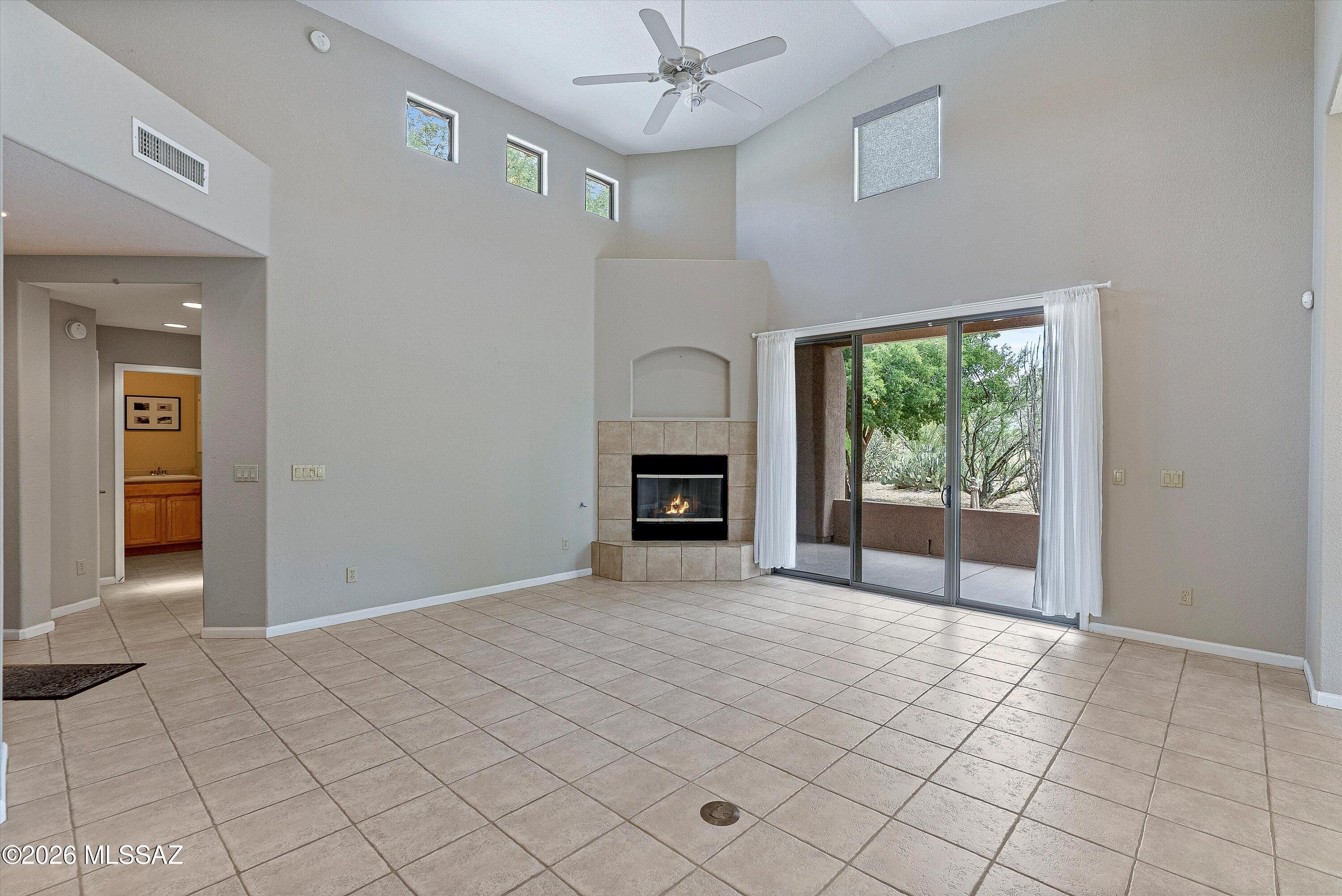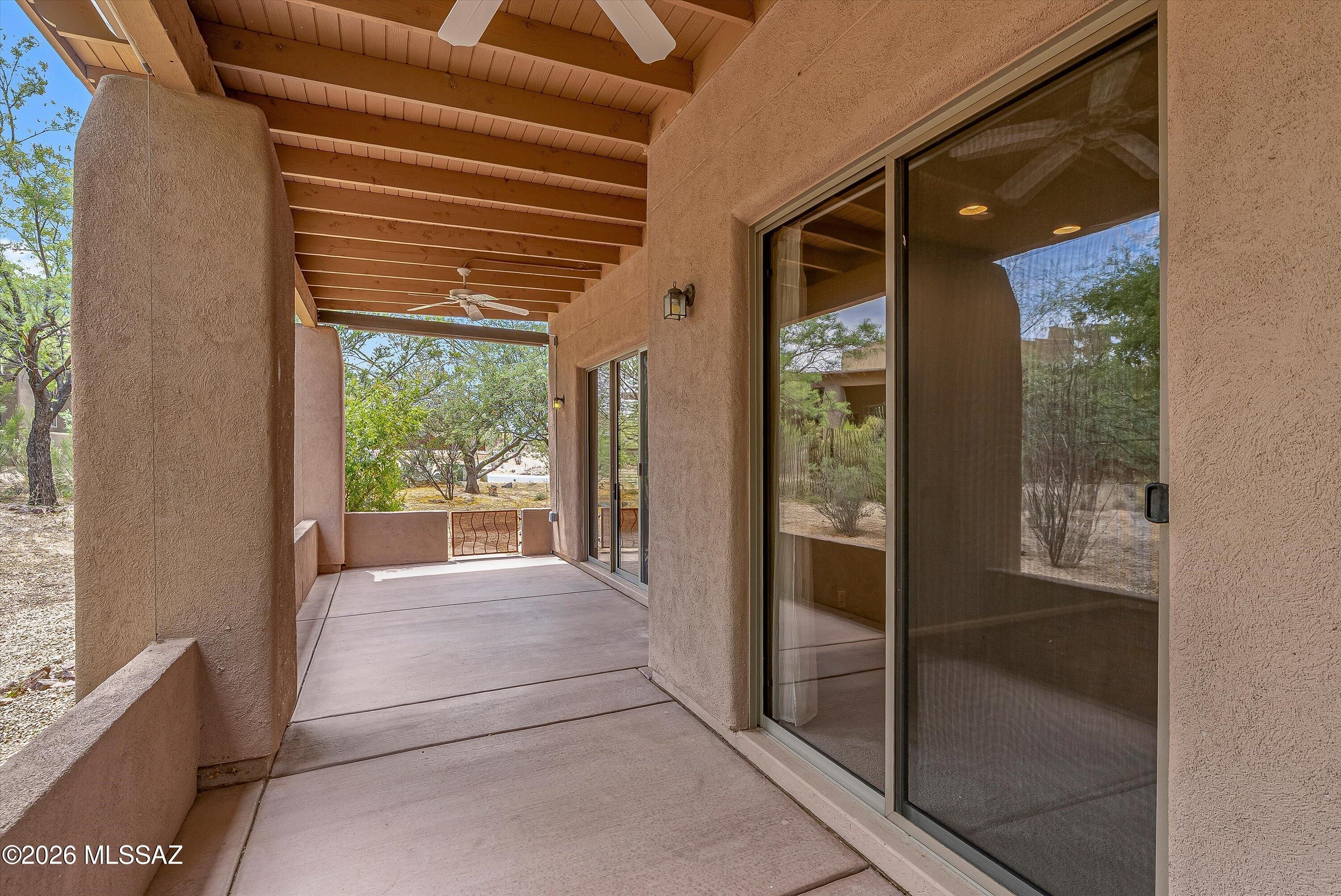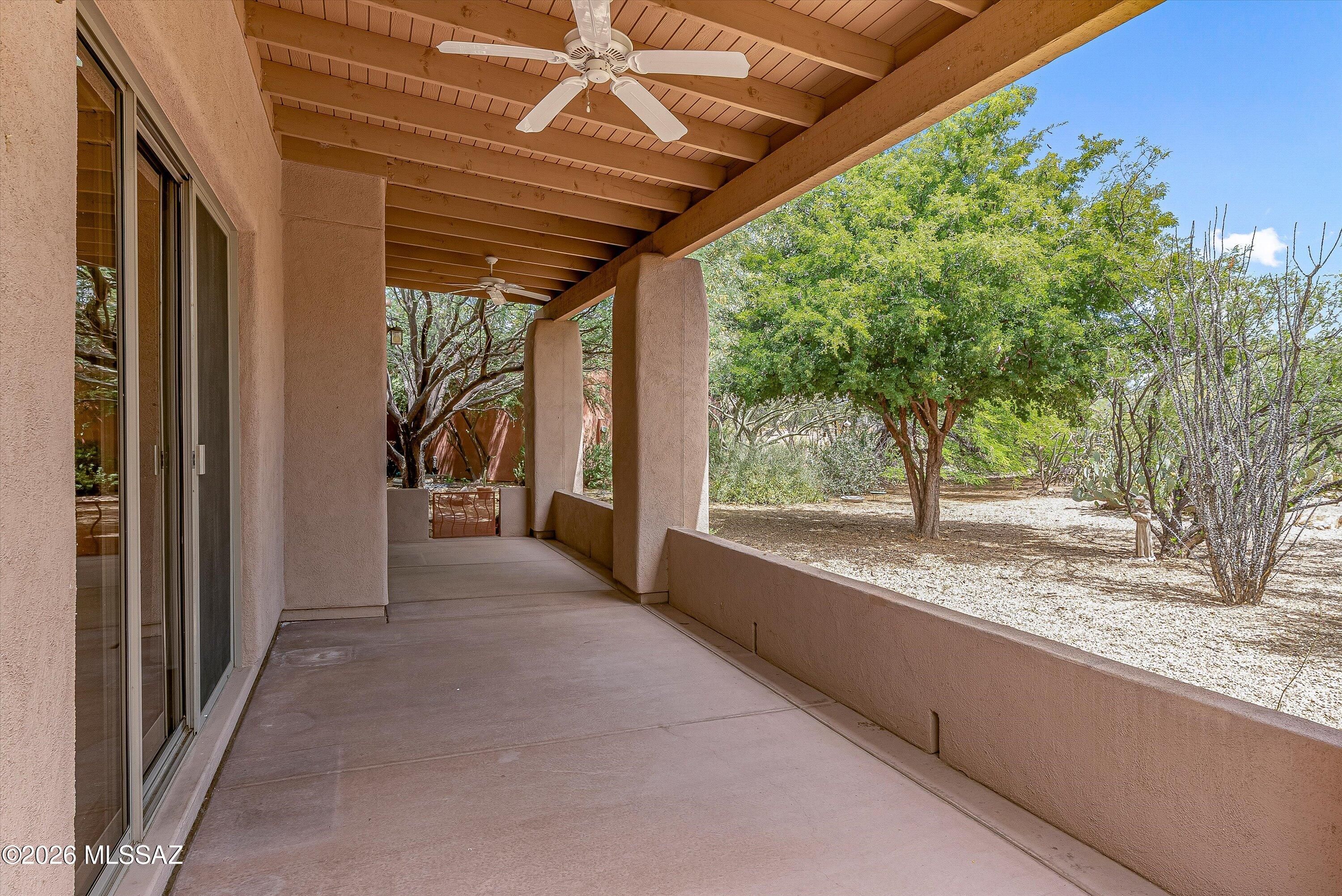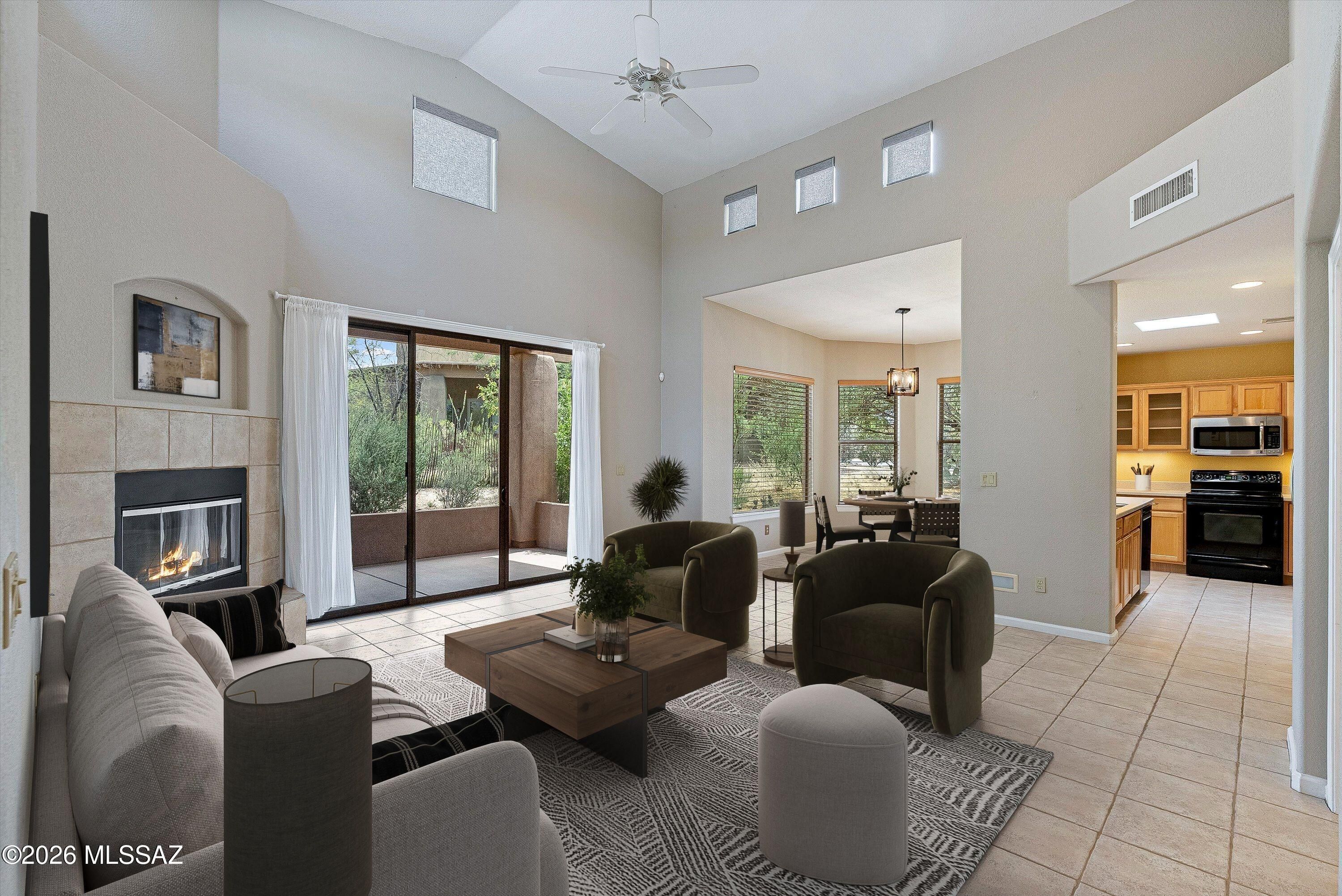 Privacy with a Casita! This unique home features two bedrooms, 2 bathrooms, PLUS a casita for your guests. The family room features high ceilings, a fireplace, and large view windows overlooking mature landscaping. A large office/craft room adapts easily to your lifestyle. The inviting entry courtyard welcomes you home, while the expansive covered back patio becomes your go-to spot for morning coffee, outdoor meals, or simply enjoying the peaceful surroundings. This is a 55+ community with an abundance of activities including hiking groups, a heated pool, exercise classes and much more.