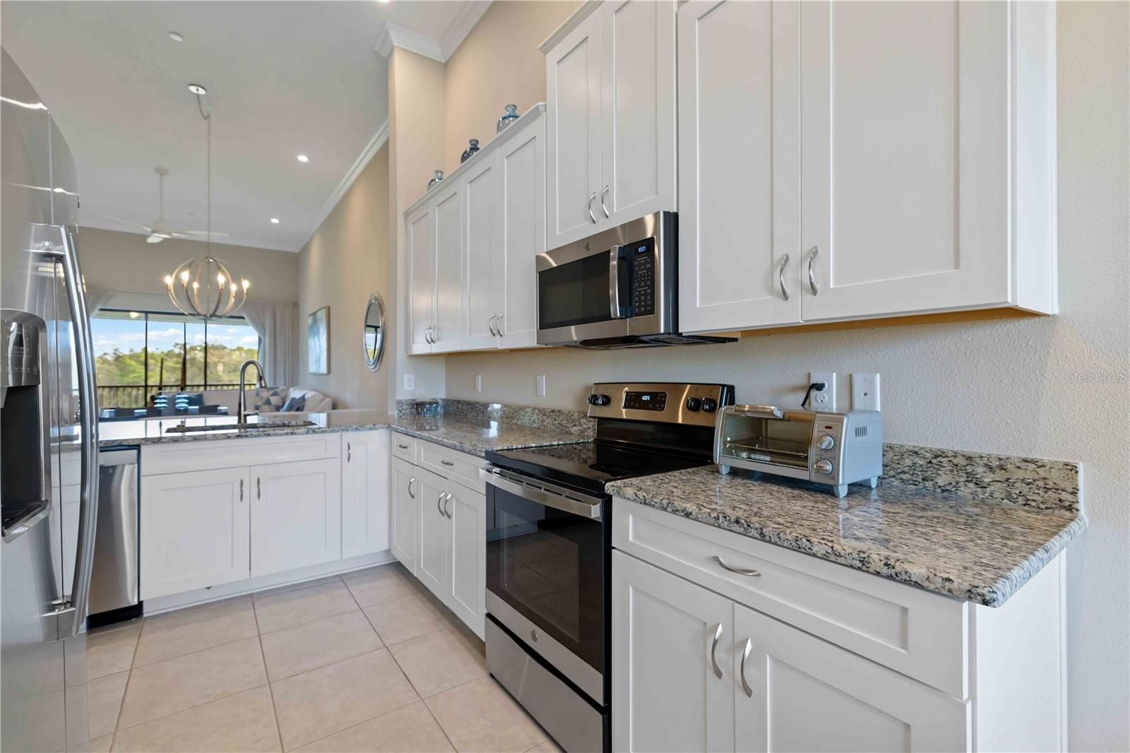 Live the Esplanade lifestyle - where every day feels like a vacation! Welcome to the highly sought-after Esplanade at Lakewood Ranch, where resort-style amenities and effortless luxury living come together. This immaculate top-floor condo, built in 2021 by Taylor Morrison, offers 2 bedrooms plus a versatile flex space, 2 bathrooms, and a private 1-car garage, with 1,528 sq ft of beautifully maintained living space designed for comfort and style. Step inside to discover high ceilings, crown molding, and a light-filled open floor plan that creates an inviting atmosphere perfect for both relaxing and entertaining. The spacious living and dining areas flow seamlessly to your private screened lanai, where you can unwind while taking in panoramic golf course views and stunning Florida sunsets. A Deeded Golf Membership is included, providing immediate access to the championship course and practice facilities. Residents enjoy Esplanade’s resort-caliber amenities, including multiple resort-style pools, the renowned Culinary Center, Bahama Bar, a state-of-the-art fitness center, tennis and pickleball courts, scenic walking trails, and a vibrant social calendar. Located within a gated community in Lakewood Ranch, you’re just minutes from University Town Center, Main Street Lakewood Ranch, and Nathan Benderson Park, with easy access to premier dining, shopping, entertainment, and the world-famous Gulf Coast beaches.