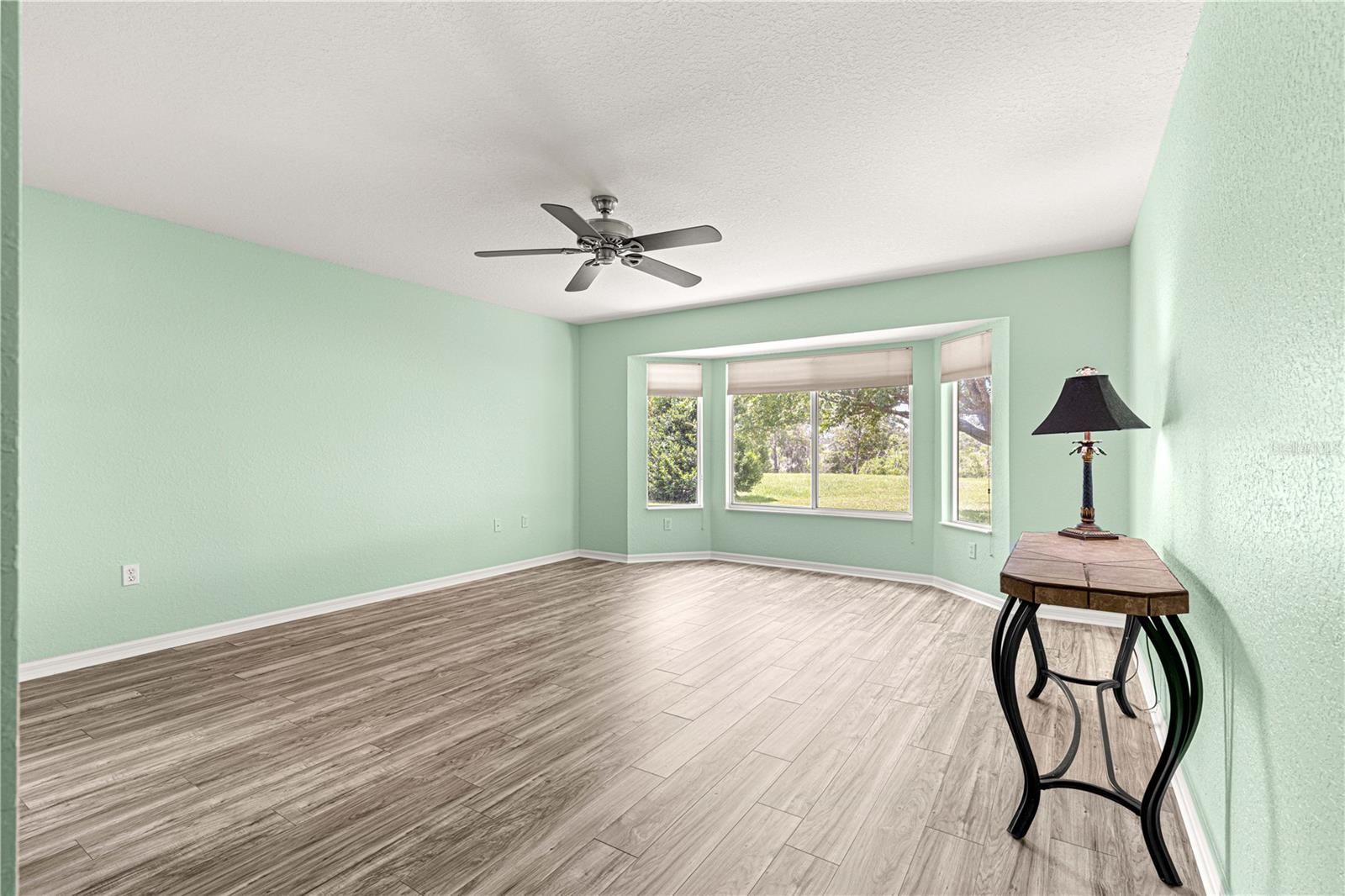 Looking for outdoor space……….. This is it! Enjoy gorgeous sunsets from the enclosed Lanai or spacious birdcage overlooking the expansive private, newly fenced backyard. This beautifully updated Newport with over 1800 sq ft of living space not only offer wonderful outdoors space but equally stunning indoor living with 2 bedrooms, 2 baths, and an additional flex room, perfect for an office, craft room, or guest room. As you pull up you are greeted with a freshly painted exterior, a texture painted driveway, walkway, new carriage lights, and concrete curbing around the landscape for added curb appeal. Once inside this home, you will notice easy to maintain luxury vinyl waterproof flooring and tile in all wet areas. The open kitchen offers upgraded oak cabinetry, glass tile back splash, new stainless-steel appliances, and a smart oven. The main living space has vaulted ceilings and solar tubes to brighten the great room, which connect to a separate dining area. The owner’s suite includes a bow window and walk-in closet. While the owner’s bathroom has dual vanities, and walk-in shower. The split floor plan allows privacy for you and any guest, while the guest bedroom and flex room are a spacious size. To round off this home, there is additional space for entertaining both indoor and out, with the addition of an enclosed Lania and birdcage. Updates include new luxury flooring, fresh interior and exterior paint, roof (2022), HVAC (2021), and newer water heater. Don’t miss your chance to own a piece of paradise in Del Webb Spruce Creek Golf and Country Club, call today for your private viewing.