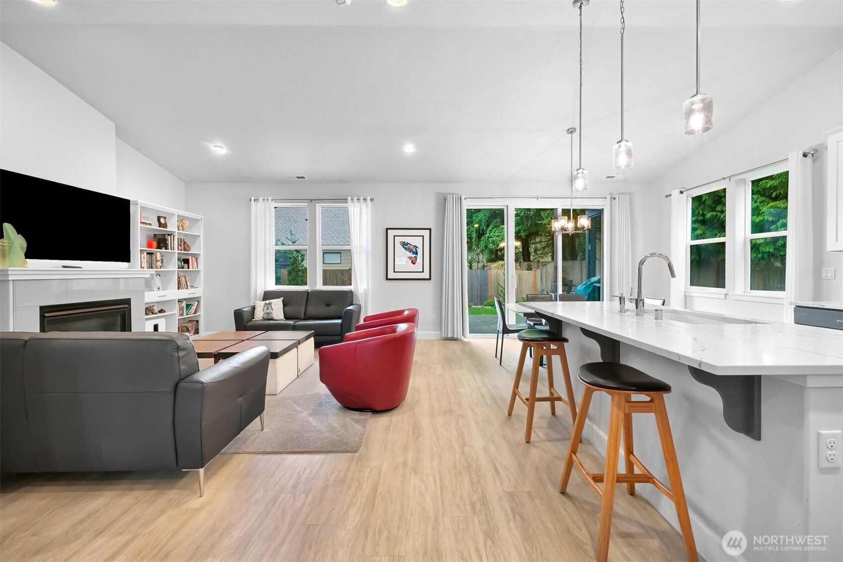 1384 Fernwood Lane, Ferndale — Discover exceptional one-level living in this gated 55-plus community, designed for those seeking both comfort and an active lifestyle. Nestled on one of the most private lots in the neighborhood, this stunning home offers an outdoor paradise with a serene water feature, a covered patio, and a fully fenced backyard—perfect for sipping your morning coffee, letting your pets roam, or hosting unforgettable evening gatherings.Inside, vaulted ceilings create an airy, open feel, and the thoughtful layout includes 2 bedrooms, a dedicated study, and 2 bathrooms, all conveniently arranged on a single level. The primary bedroom is a true retreat, showcasing an ensuite with a spacious walk-in shower, dual vanity with sleek quartz countertops, and a generous walk-in closet. The updated kitchen, the heart of the home, features generous counter space, stainless steel appliances, a central island ideal for meal prep or casual dining, and a roomy walk-in pantry. Central A/C and sunlit rooms provide comfort year-round, while the lush, park-like yard with mature landscaping offers unmatched tranquility. This vibrant community also features walking paths, pickleball courts, a clubhouse with a full kitchen, and a calendar full of community activities—perfect for staying connected and active. This home truly offers the perfect blend of quality, convenience, and a lifestyle designed for enjoyment. You won’t want to miss it!