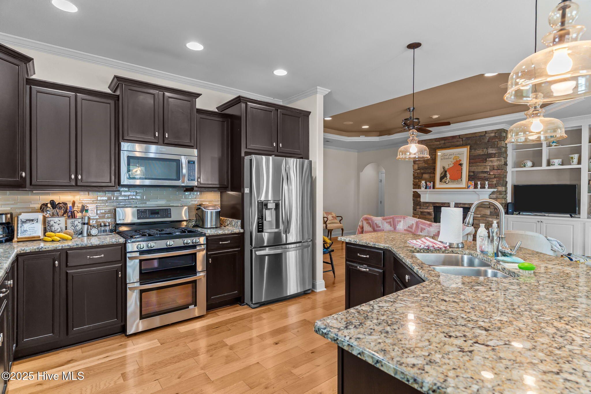 Welcome to 1384 Still Bluff Lane in the desirable Shelmore neighborhood of Brunswick Forest, where low-maintenance living meets timeless coastal elegance. This beautifully maintained END-UNIT townhome offers three bedrooms and three full baths, blending comfort, functionality, and style. The inviting exterior and manicured landscaping set the stage for a warm welcome. Inside, wood flooring flows through open living spaces anchored by a stacked-stone gas fireplace and detailed trey ceilings. Expansive windows and a telescoping glass door connect the main living area to a bright 3-season sunroom overlooking a private, fenced backyard—perfect for entertaining or quiet relaxation. The kitchen is designed for both everyday living and special gatherings, featuring granite countertops, a tile backsplash, and stainless-steel appliances,. The open layout encourages effortless connection between the kitchen, dining, and living areas. The primary suite is a tranquil retreat featuring a walk-in closet and private ensuite. Two additional bedrooms on the main floor offer flexibility for guests or hobbies, while the upstairs suite with a full bath provides an excellent home office or guest retreat. Outdoor living shines here with a fenced backyard ready for gardening, grilling, or play. Residents of Brunswick Forest enjoy resort-style amenities including indoor and outdoor pools, fitness centers, tennis and pickleball courts, and more!. Located just minutes from Wilmington, shopping, dining, golf, and beaches, this home offers the best of both relaxation and accessibility.