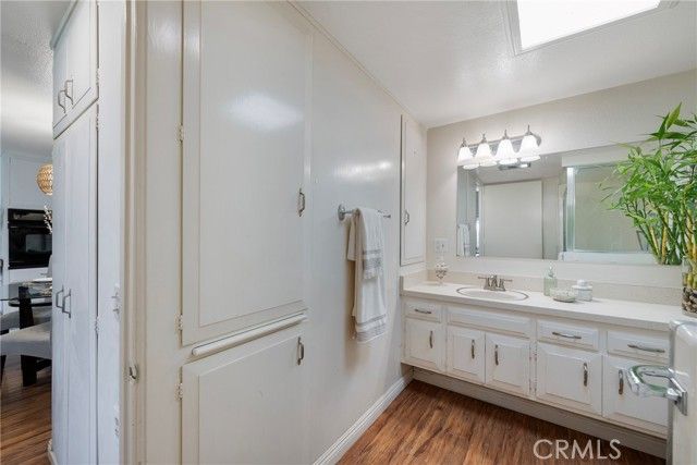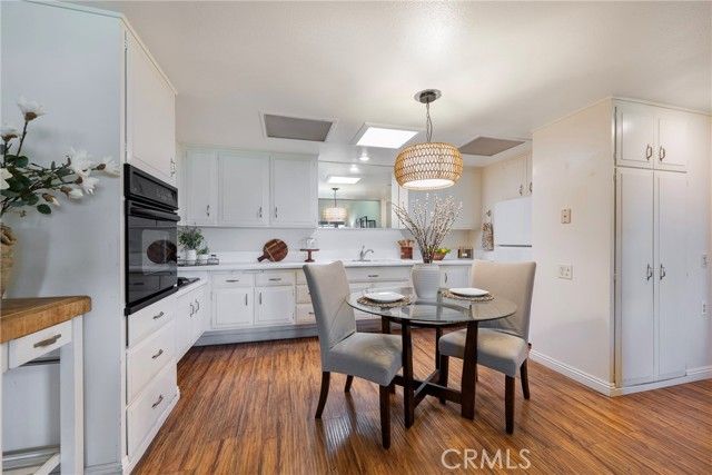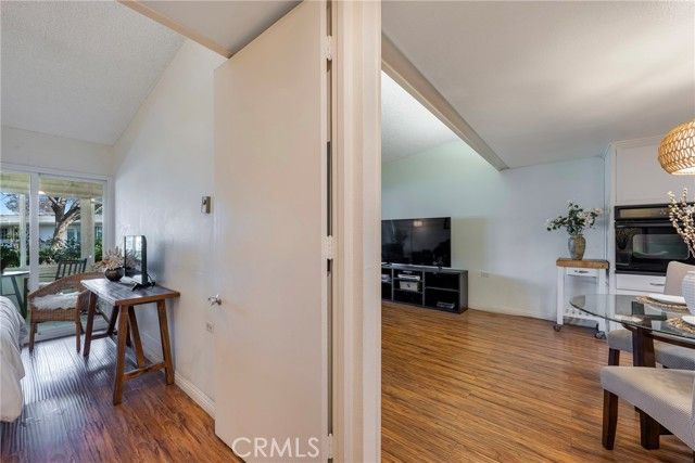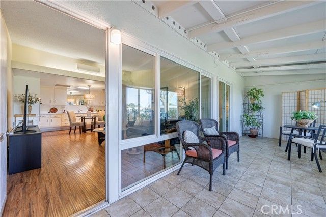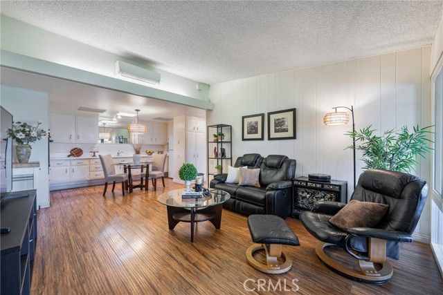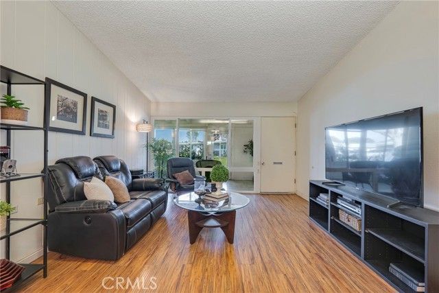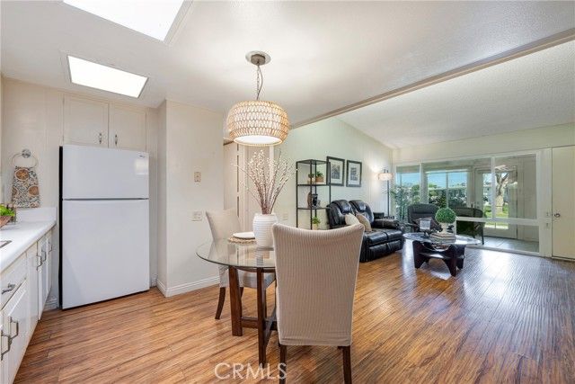 Welcome to this bright and spacious home in the desirable 55+ guard-gated community of Leisure World Seal Beach. The living room features dramatic vaulted ceilings, creating an open and airy feel rarely found in these units. Natural light fills the home through skylights in both the kitchen and bathroom, enhancing the warm and inviting atmosphere. The kitchen offers white laminate countertops and a flexible breakfast nook area, perfect for a dining table or a future kitchen island. A permitted enclosed patio provides valuable additional living space, ideal for a reading room, office, or hobby area. Residents enjoy access to an incredible array of amenities including a 9-hole golf course, swimming pool and spa, fitness center, clubhouses, library, art and woodworking studios, gardening plots, shuttle service, and more than 160 social clubs and activities. Ideally located just minutes from Seal Beach, shopping, dining, and medical facilities, this home offers comfortable living in one of Orange County's most established active adult communities.