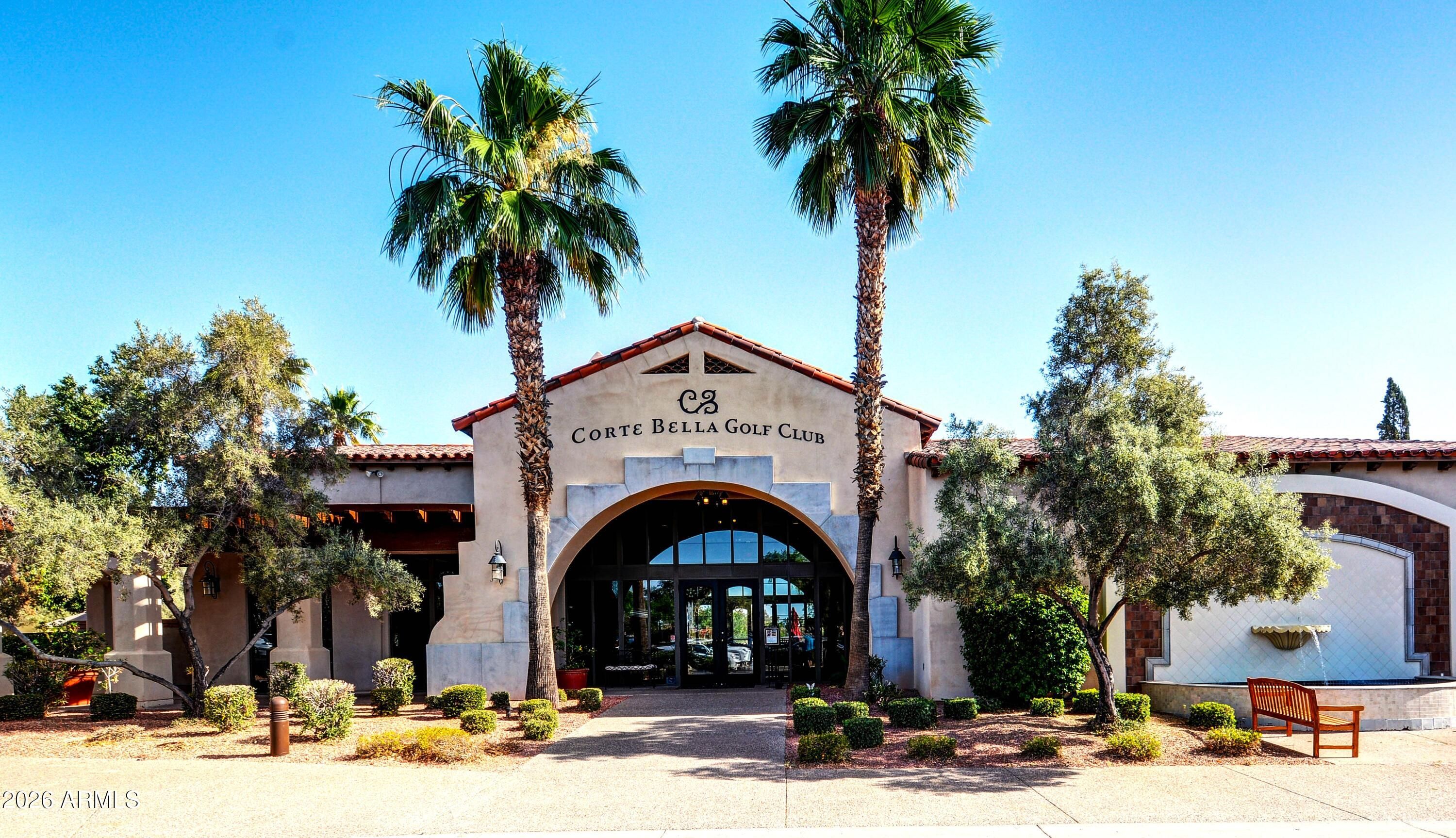 OUTSTANDING VALUE IN CORTE BELLA! The popular San Marco floor plan is known for its signature rotunda entry, split-bedroom layout, open kitchen, and generously sized primary suite. The kitchen is designed for both function and gathering, featuring a large center island with granite countertops, warm honey oak cabinetry, pantry, and stainless steel appliances, including a gas range. It opens seamlessly to the main living area, offering flexible space for living and dining, complete with a gas fireplace and built-in entertainment center. The primary suite includes a spacious en-suite bath with dual sinks, separate tub and shower, and a large walk-in closet. Guest bedroom, large den and guest bath are thoughtfully positioned on the opposite side of the home for privacy. Additional features include: HVAC replaced in 2018, ceiling fans throughout and a convenient indoor laundry room. Step outside to a covered back patio with ceiling fan and a private setting--ideal for relaxing or entertaining. Enjoy added privacy with an enclosed front courtyard, corner lot, and tall block wall--features that set this home apart. The extra-wide garage accommodates 2 CARS PLUS a GOLF CART! Located in the guard-gated community of Corte Bella Country Club, residents enjoy an 18-hole championship golf course, two restaurants, spa, fitness center, lap and recreational pool (partially covered), pickleball, tennis, bocce ball, and a full calendar of clubs and social activities. Comfortable, easy living with a touch of Tuscan-inspired design ~ thoughtfully priced to allow the next owner to update and personalize to their own taste.