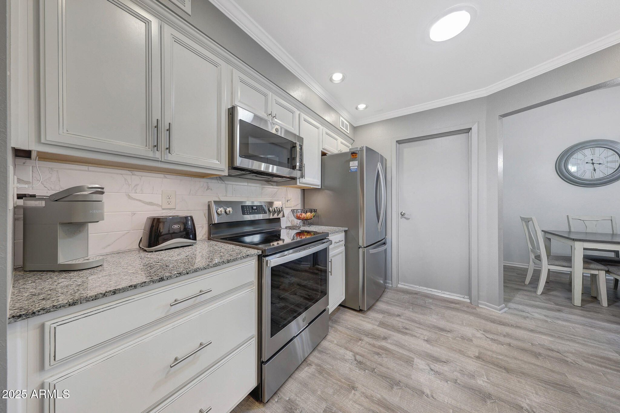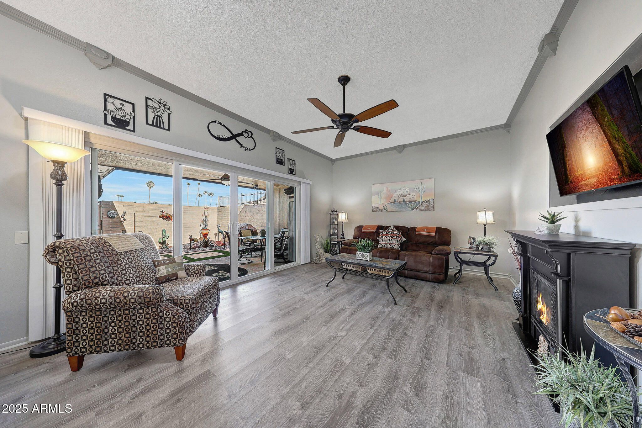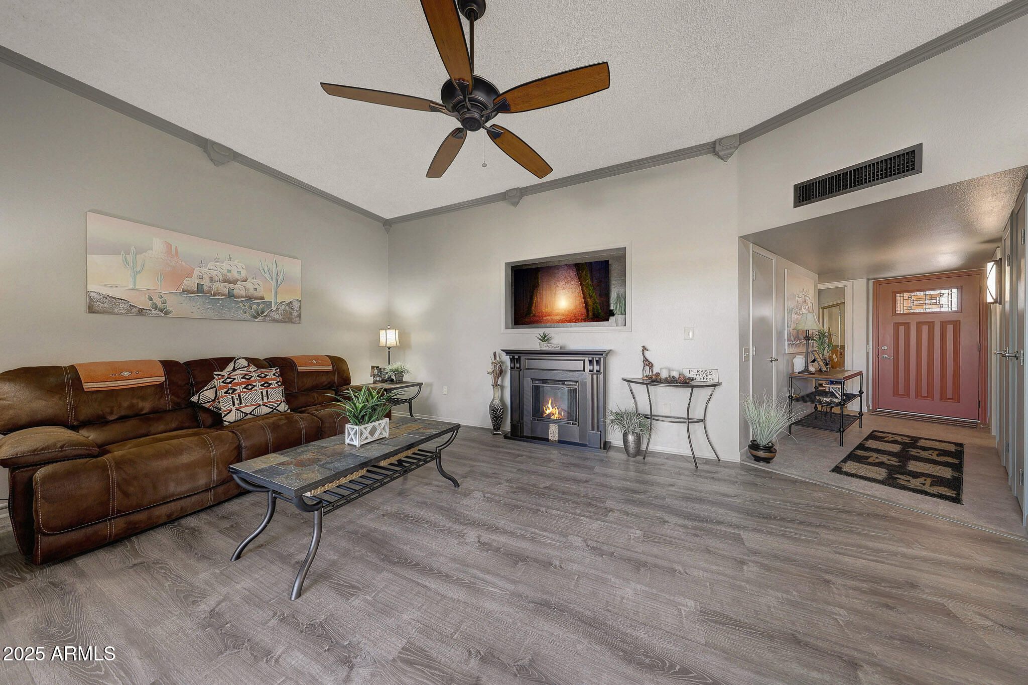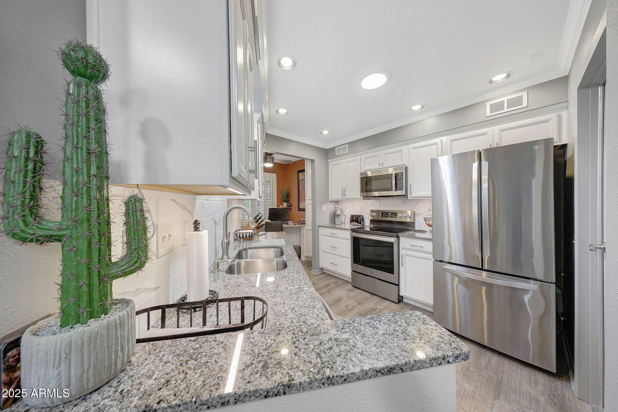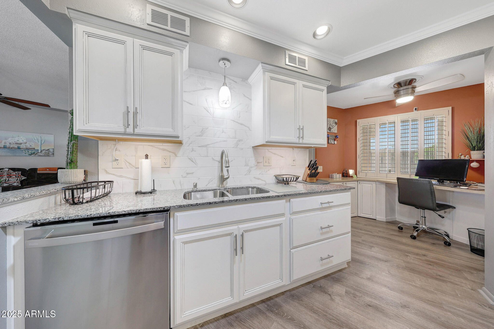 Check Out This Beautifully Updated PA13 Patio Home In Sun City! This Home Truly Has It All, With Thoughtful Updates Inside And Out. The A/C Is Only 4 Months Old And The Roof Was Recoated In May 2025, Giving You Peace Of Mind For Years To Come. Inside, You'll Find LVP Flooring Throughout And A Wide, Replaced Sliding Door That Lets In Plenty Of Natural Light. The Kitchen Shines With Granite Countertops, Updated Cabinets, Recessed Lighting, And Crown Molding. The Wall Between The Kitchen And Dining Area Has Been Partially Opened, Creating A More Spacious, Open-Concept Feel. Extra Features Include A Recessed TV Nook, An Added Hallway Closet, And Updated Hardware On All Interior Doors. The Guest Bathroom Has A Recoated Tub And Updated Vanity, While The Primary Suite Offers Faux Ceiling Beams, A Walk-In Closet, And A Bathroom With A Recoated Shower And Tiled Walls. Step Outside To A Private Retreat With Astro Turf, Pavers, A Ceiling Fan, And A Block Wall Fence. Best Of All, There Are No Homes Directly Across The Alley Behind You! The Garage Is 1.5 Cars Wide And Packed With Upgrades: An Updated Opener, Exhaust Fan, Ceiling Fan, And Even A Sink Perfect For Projects Or Hobbies. With Its Updates, Charm, And Location, This Home Is Truly A Must-See!