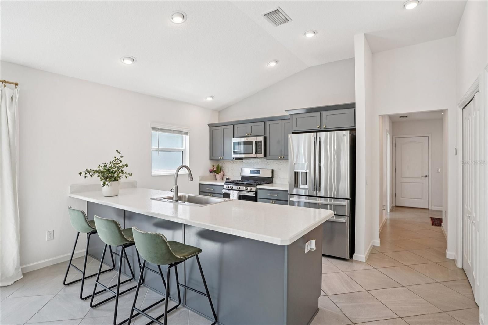 LOCATION, LOCATION, LOCATION, this beautifully maintained 3-bedroom, 2-bath home offers the perfect blend of comfort, style, and convenience. Just a quick 5-minute golf cart ride to Sawgrass, you’ll enjoy easy access to dining, entertainment, and all the lifestyle amenities The Villages is known for. Step inside to a bright, inviting interior featuring no carpet throughout for easy maintenance and a clean, modern feel. The home is being offered furnished, making it truly move-in ready or an ideal seasonal retreat. Out back, you’ll find a private backyard—perfect for relaxing, entertaining, or giving your pets a secure and peaceful space to enjoy. From the well-kept interior to the charming outdoor space, this home is beautiful inside and out.