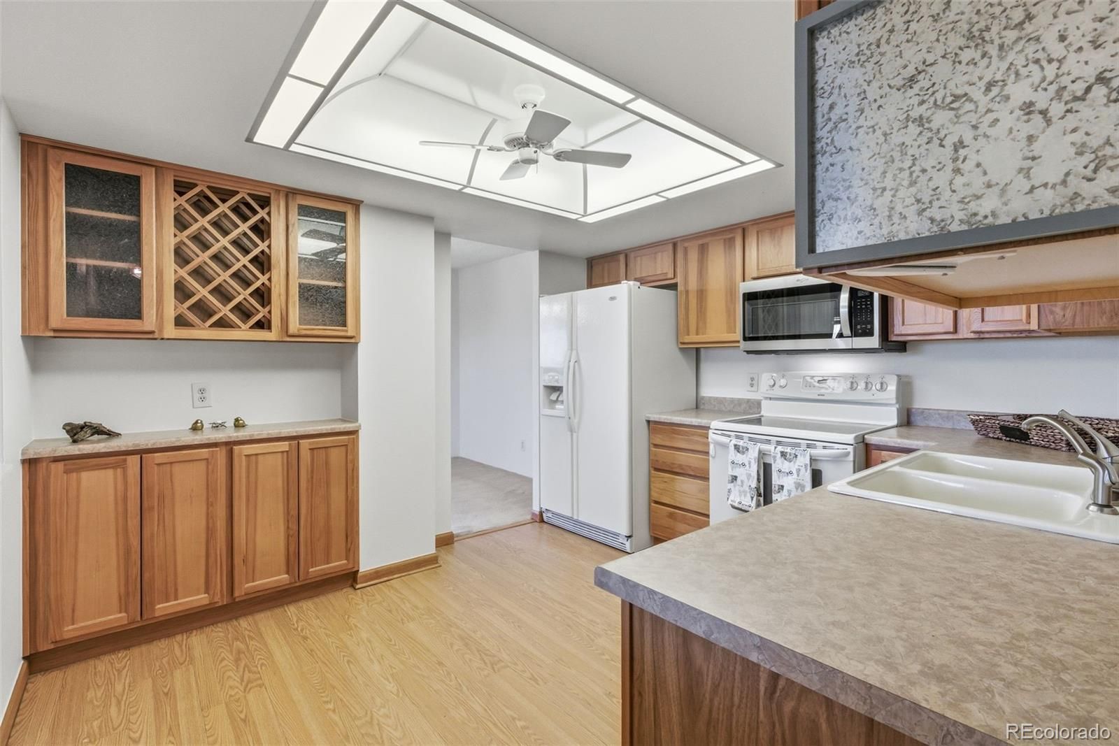 Location! One of the best double patio views in HG! Come appreciate the privacy and security in this lovely home. Updated kitchen and baths and two enclosed lanais. Popular Seville area features central park and pool / hot tub as well as pickleball court and duck pond. Underground parking and in-unit laundry with washer dryer included. Storage in parking area and also down the hall. The generous living space and kitchen are perfect for entertaining and relaxing at home. Deer and other wildlife will be seen in your own back yard that connects to Cherry Creek State Park across Parker Road. Easy to see, so be sure and set this up for a personal tour today. Heather Gardens is a successful 55+ community with 50,000 sq.ft. clubhouse including gym, pool, tennis, pickleball, restaurant, workout and educational classes and tons of social connections.