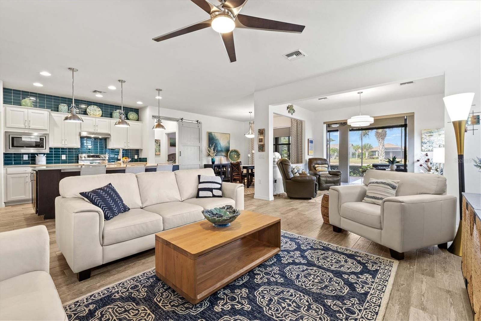 One of the most sought-after features in IslandWalk, and rarely available at this size and price point, this is a TRUE 4-bedroom home. Built on the popular DiVosta Summerwood floor plan, this upgraded residence offers 2,178 sq ft of living space and 2,838 sq ft total, combining flexibility, comfort, and value that is hard to find in the community. The home features four genuinely spacious bedrooms, not a den or flex room, making it ideal for families, guests, or those needing dedicated office space. Two full bathrooms complete the functional layout. A premium structural upgrade, the 10x13 sunroom, provides a peaceful space to relax or watch TV while taking in tranquil north-facing water views from the screened lanai. The kitchen is bright and modern with white cabinetry, quartz countertops, a custom contemporary tile backsplash, and a corner walk-in pantry with custom organization shelving. Additional upgrades include pendant and recessed lighting, ceiling fans throughout, a whole-home water softener, and seamless gutters. Hurricane protection is extensive with Storm Smart power screens on the lanai, a Kevlar roll-down screen at the front entry, and easy-pull accordion shutters for all windows. The garage is exceptionally upgraded with painted floors, ceiling-mounted storage shelving, an insulated garage door, and a mini-split AC unit to keep the space comfortable year-round. Exterior enhancements include a widened paver driveway and an extended paver walkway leading to the screened front lanai, a feature buyers truly appreciate. Outdoor living is enhanced with an upgraded hot tub and paver patio overlooking the serene lake, perfect for unwinding at the end of the day. Located on a quiet cul-de-sac street, the home offers added privacy and minimal traffic. IslandWalk is one of Venice’s most vibrant lifestyle communities, offering a full-time activities director, two clubhouses, resort-style pools, pickleball and tennis courts, miles of scenic walking, biking, and golf-cart paths, and a wide variety of clubs and social events. Just a short bike ride to the Atlanta Braves Stadium, residents also enjoy easy access to the nearby marketplace with Publix, dining, and shopping, as well as Downtown Wellen Park featuring an 80-acre lake, waterfront dining, retail, and live entertainment. A brand-new Costco is only minutes away. The IslandWalk HOA includes ground maintenance, cable, internet, amenities, and 24-hour guard-gated security. This home is NOT in a flood zone and has a low CDD fee. Don’t miss this rare true 4-bedroom opportunity, be sure to view the 3D Matterport and drone tours.