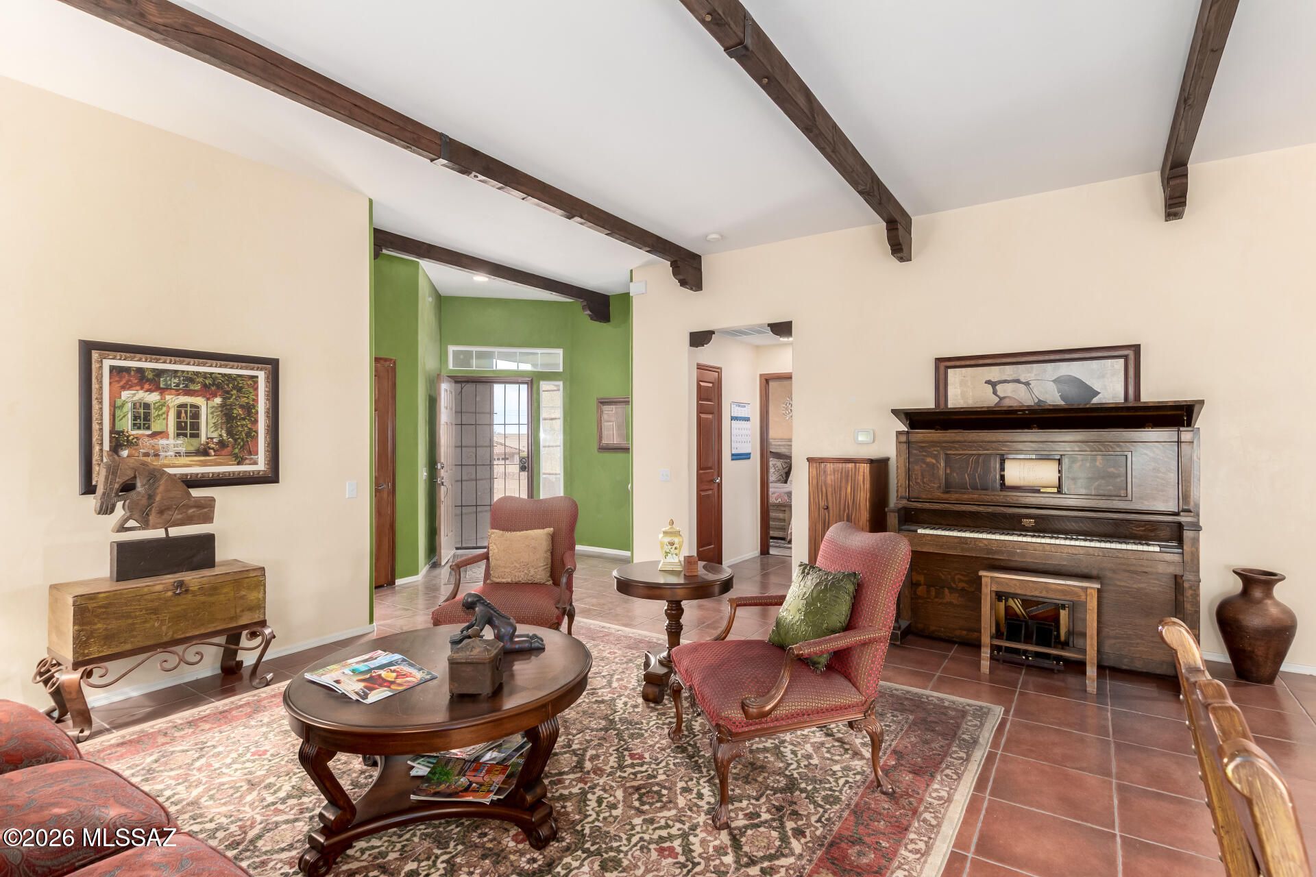 - Beamed Ceilings, Ceiling Fan(s), Entrance Foyer, High Ceilings