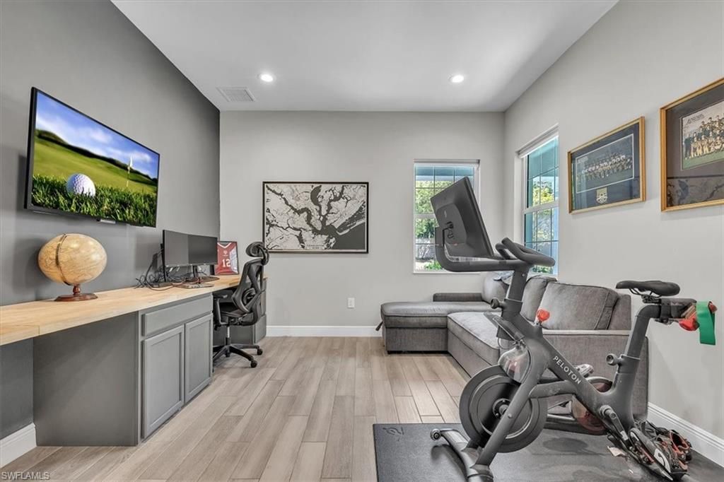 Welcome to your slice of Florida living where everything feels just right the moment you walk in.This 2022-built Bright Meadow 2 by Neal Communities is being offered by its original owners, and it shows—in all the best ways. Once inside, you’re greeted with that light, bright, airy feel buyers are always chasing but rarely find. Neutral tones, crisp white shaker cabinetry, and driftwood plank tile floors create a clean, coastal vibe that’s equal parts elegant and comfortable.The layout is as functional as it is attractive:3 bedrooms + a spacious den with French doors (perfect for an office or overflow guests), 2.5 baths, 2300 sq ft of easy, open living and a 3-car garage (because storage matters more than you think!).The kitchen is the heart of this home and delivers—with upgraded stainless appliances, quartz counters, and a beautifully trimmed-out island that adds just the right amount of character. Plantation shutters elevate the look, with additional matching shutters already on the way for the den and breakfast nook.And let’s talk about where this home really shines…outside! With an expansive 27’ x 12’ covered lanai, you’ll see why this home was designed for entertaining. You’ve got a built-in gas outdoor kitchen, a gas fire pit, and a massive 45’ x 22’ pool cage enclosing a sleek rectangular pool (approximately 22’ x 12’) with a gas heater—so you can actually use it year-round. Western exposure means sunshine all afternoon and those glowing Florida sunsets in the evening. And thanks to the tall hedgerow surrounding the cage, you get something that’s hard to come by: privacy.Additional upgrades totaling over $50,000—including furnishings that convey with the home—make this an easy move opportunity. Simple. Stylish. Low-maintenance. And quietly upgraded in all the right places.If you’ve been waiting for a home in Verandah that doesn’t feel like every other listing…this is the one worth seeing in person.Verandah Members not only call this Community ‘home,’ they also enjoy two championship golf courses, pickle ball, tennis, bocce, an attended fitness center overlooking a resort-style pool and free kayaking at our own Orange River launch. Our own Blossoms offers lively, but casual, outdoor riverfront dining while the River House dining is smart casual with a perfect after-sports bar. Bingo night, club dinners and live entertainment are frequent. Because Verandah is situated around two 18-hole championship golf courses, it has the green space for 9.3 miles of walking, biking and jogging paths, 2 bark parks and a large wooded playground area. The ‘natural’ ambience here is quite different from most communities. Join our casual, friendly Verandah community. There truly is something for everyone here! PLEASE CLICK ON THE VIRTUAL TOUR LINK TO ‘WALK’ THROUGH THIS UNIQUE HOME AND SEE THE FLOOR PLAN.