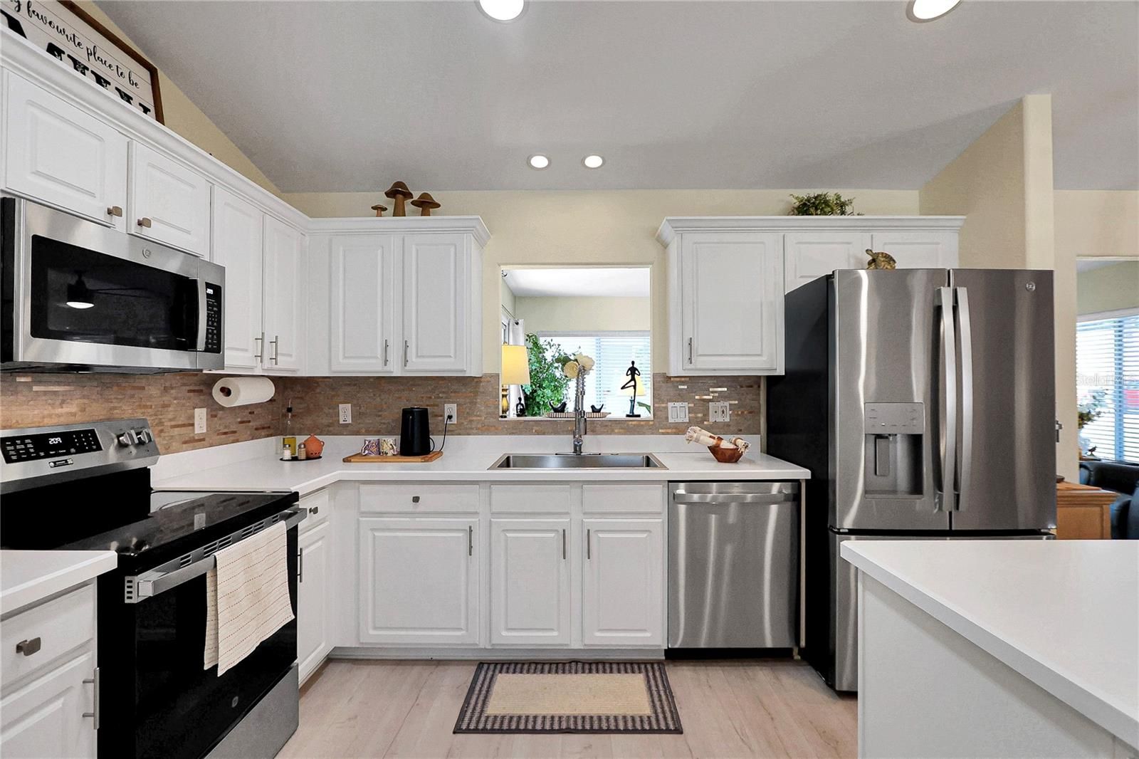 This beautifully maintained bright home on a Corner Lot is truly move-in ready with no major updates needed—Freshly Painted Interior (2025)— New Range, Refrigerator, Dishwasher, Microwave (2025)—New Sink (2024)—Luxury Vinyl Floors (2024)— Gutter guards (2025)— Roof (2022)—HVAC (2013), well maintained, recently inspected, performing well backed by a home warranty for the buyer for complete peace of mind— Front storm Screen Door (2025)—Plantation shutters throughout. This East-facing home filled with natural light has two Living Areas and an Oversized Primary Suite with a genuinely elegant Large Bay Window is a standout. The heart of this home is the Family Room — giving true Florida room vibes, wrapped in windows with Patio access. It captures sun all year long — warm, golden, and bright even in December. Located in one of Ocala's established 55+ communities offering 36-hole golf, 12 pickleball courts, 7 tennis courts, fitness center, indoor and outdoor pools, a 32,000-sq ft clubhouse, dog park, nature trails, RV and boat storage, and an on-site restaurant. With over 100 clubs, the social calendar fills itself — a lifestyle that rarely needs to leave the gates. Direct access to SE Hwy 42, Ocala, The Villages, and Lake Weir — an area experiencing steady growth and increasing demand. The serene community with every convenience just outside it—Hospitals, dining, and daily needs are minutes away Priced to sell.
