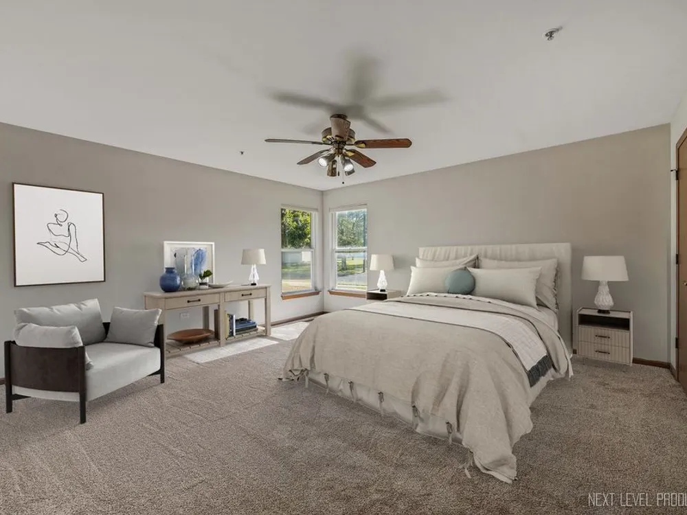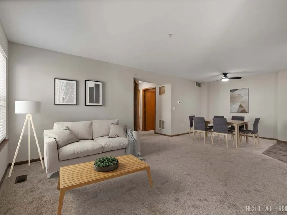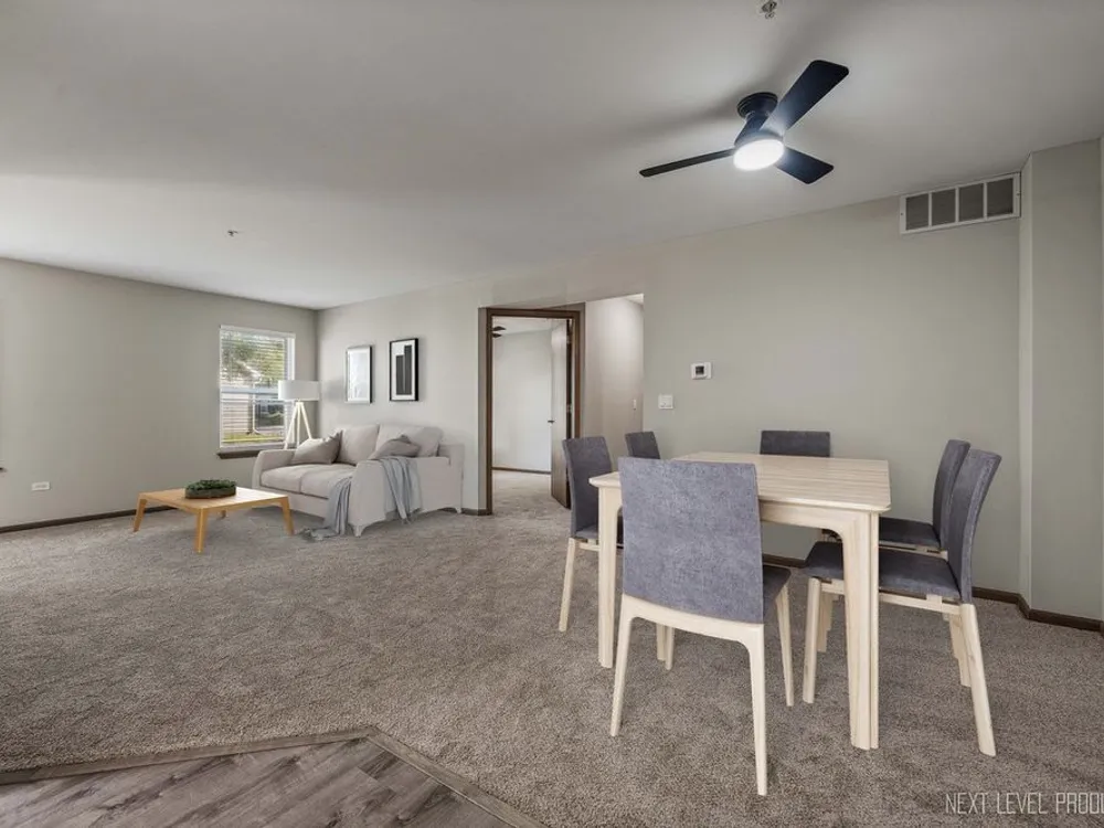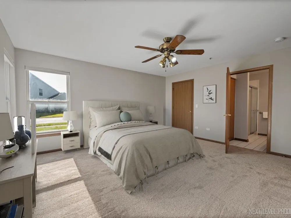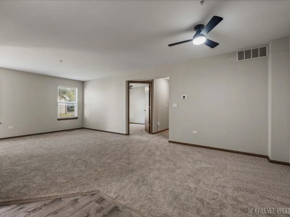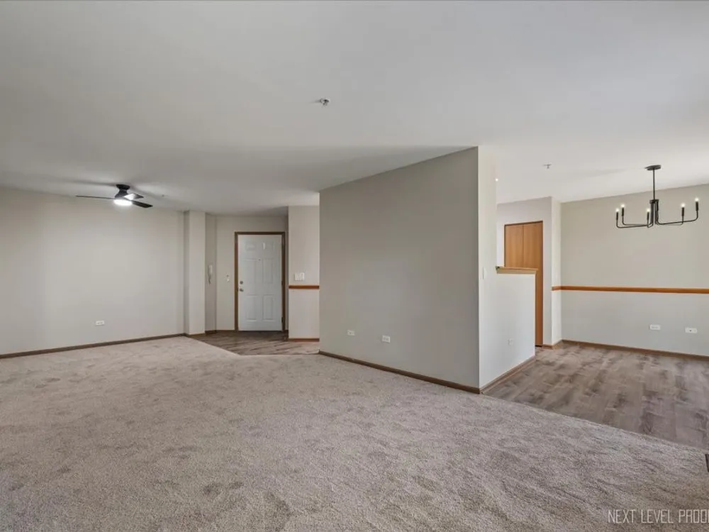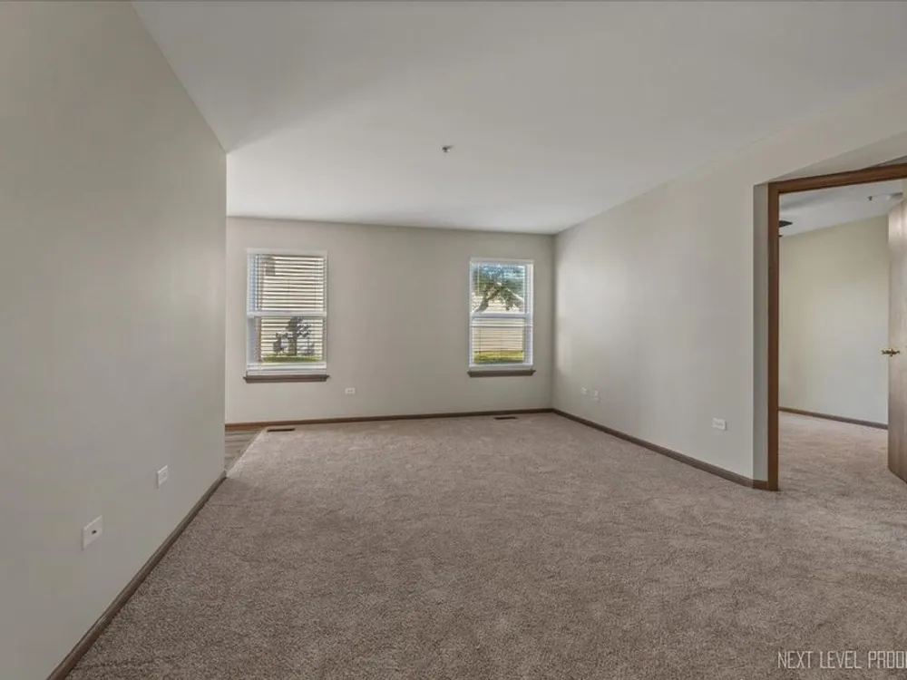 Welcome to Carillon of Plainfield! Fabulous main level ranch-style unit with two bedrooms and two full baths located in an ELEVATOR building with a spacious open layout! This building is conveniently situated near the clubhouse, pool and tennis club! This first floor location provides easy access to you one car interior garage private entrance with storage. Your primary suite has a large walk-in closet and private bath, with an additional full bath for guests and the second bedroom. Laundry has a full-sized washer and dryer. Your kitchen and foyer area enjoys newer luxury vinyl plank flooring, NEW carpet and FRESHLY PAINTED throughout. Carillon is a 55+ active adult GATED community with 24 hour security, new tennis and pickleball courts, updated clubhouse, two outdoor pools, one indoor pool, hot tubs, lovely walking path, (3) 9-hole golf courses with an on-site restaurant, Talk of the Town monthly newsletter, and so much more! Close to I 55, restaurants, shopping and all the area has to offer. Contact me today to schedule your private showing. Happy to Help!