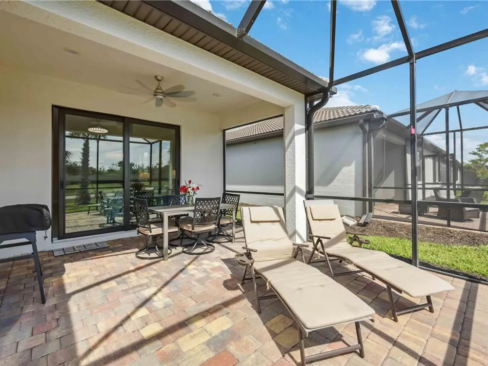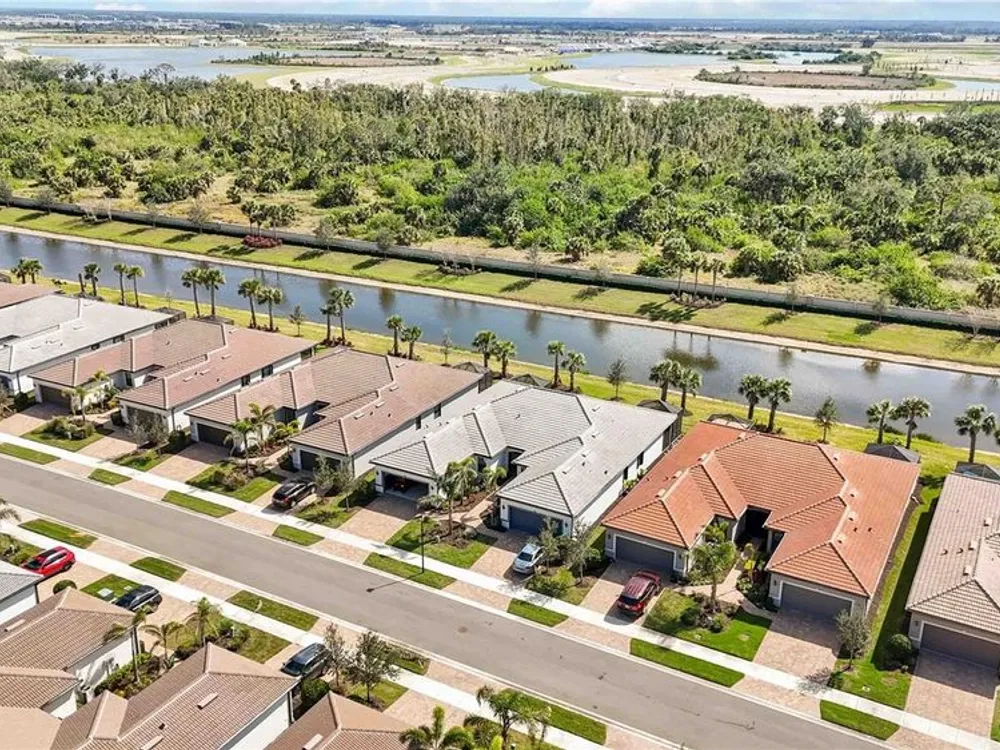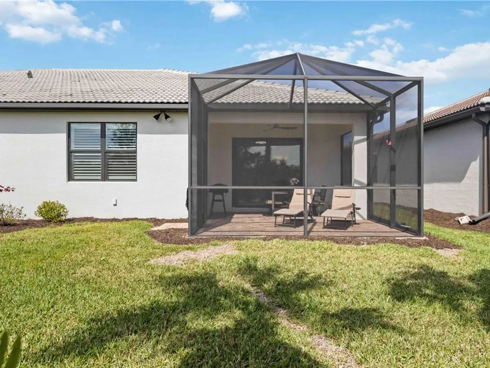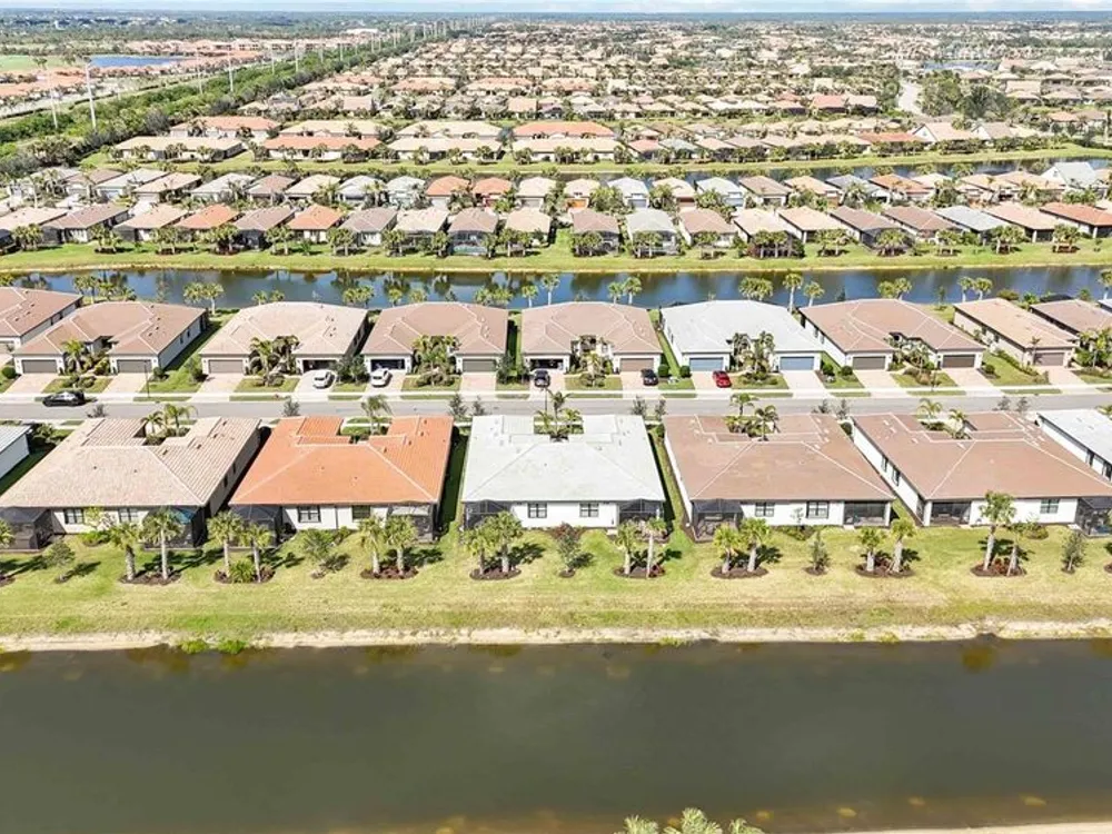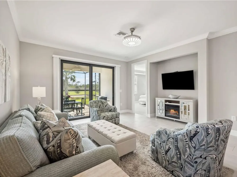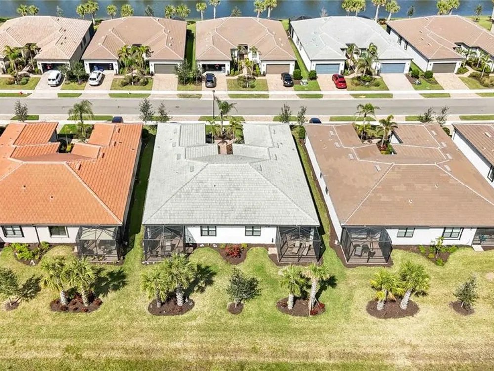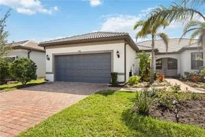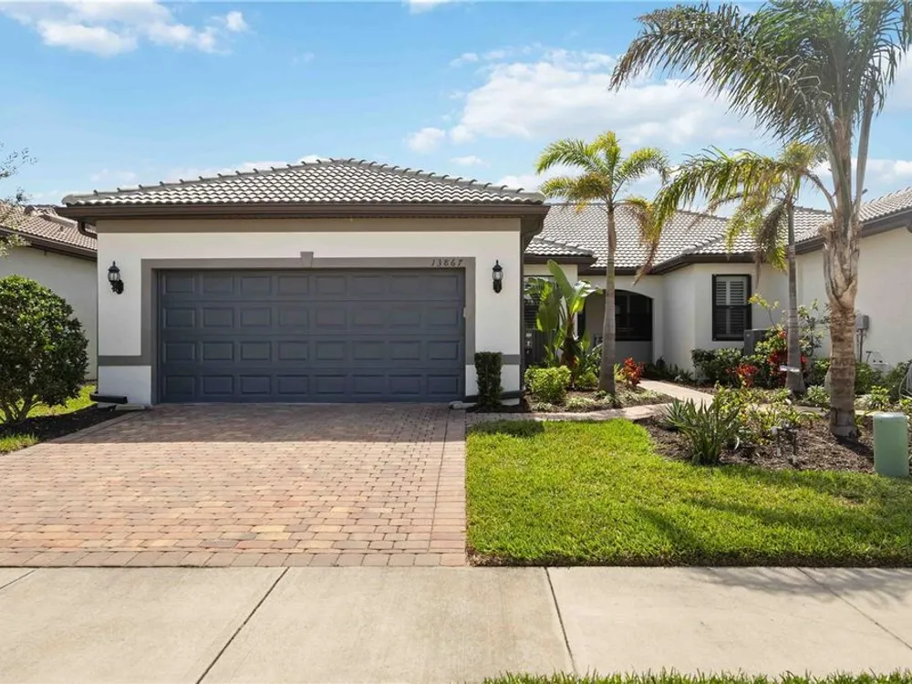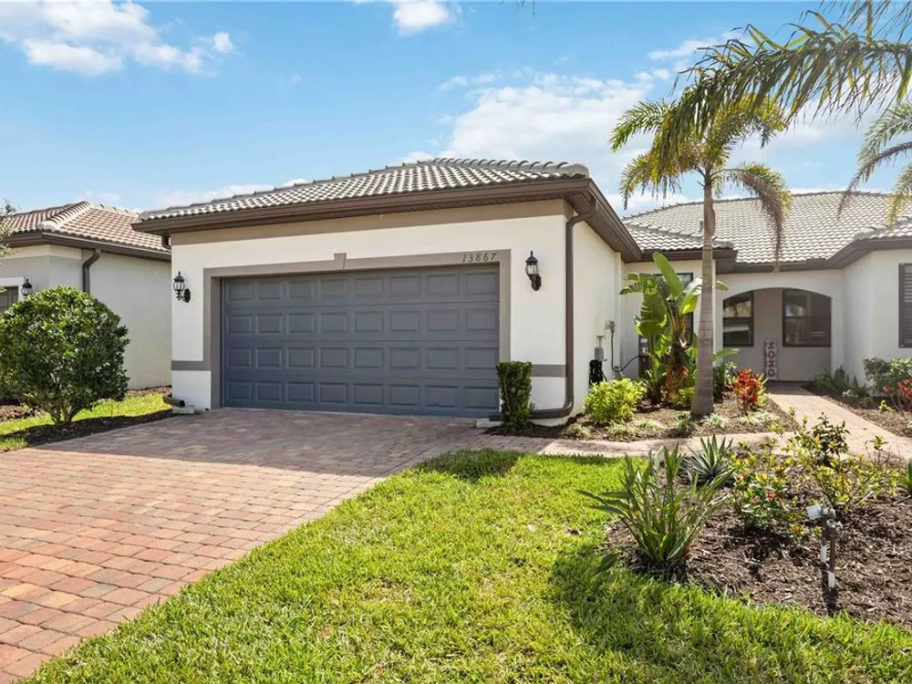 Peace of mind with IMPACT WINDOWS & DOORS! Built in 2021 and lightly lived in seasonally, with 1611 sqft, this Cascadia Villa features 2 bedrooms, 2 bathrooms, and a versatile flex room, offering an exquisite blend of comfort and style in a resort-style, maintenance-free community. From the moment you step inside, you'll be captivated by the villa’s bright and sun-filled living spaces, adorned with crown molding and custom plantation shutters for an elegant coastal feel. Large tile flooring flows seamlessly throughout the main areas, while the bedrooms boast upgraded plush carpet for ultimate comfort. Entertaining is effortless with a thoughtfully positioned gourmet kitchen that fosters interaction between hosts and guests. This well-designed space boasts 42” upgraded cabinets, quartz countertops, a stylish glass tile backsplash, and premium appliances, including an induction stove and sleek refrigerator. Under-cabinet lighting enhances the ambiance, while a breakfast bar provides additional seating. The spacious master suite is a serene oasis, featuring a tray ceiling, expansive windows with tranquil lake views, and a spa-like en-suite bath. Indulge in the luxury of double vanity sinks, a walk-in shower with a frameless glass surround, and a built-in bench for added relaxation. Designed for year-round enjoyment, the extended south-facing lanai offers breathtaking Florida sunsets over the lake—a perfect setting to relax and unwind. Built by DiVosta, this home includes IMPACT WINDOWS, DOORS and a tied-down tile roof, ensuring durability and peace of mind. Community Living: Islandwalk is a vibrant, friendly lifestyle community that offers an array of recreational amenities, including multiple pools, lap pools, a clubhouse with a full-time activities director, two fitness centers, 12 pickleball courts, har-tru tennis courts, bocce ball, two fire pits, a dog park, basketball, and playground. The monthly newsletter is packed with social events planned by a full-time activities director. Why wait… move in and let the fun begin! But don't forget your sunglasses, as the white sandy beach is just 9 miles away. To enjoy an afternoon of shopping or dining, hop on your bike or golf cart and head to the new Wellen Park Downtown, featuring an 80-acre lake with recreational activities for everyone! The community of Islandwalk boasts the LOWEST CDD FEE in all of Wellen Park! HOA fees in Islandwalk are a great value and include: lawn care, tree trimming, mulch, high-speed internet, basic cable with 3 DVR boxes, all the resort-style amenities, on-site management seven days a week, and a full-time Lifestyle Director. Furniture can be purchased under a separate contract.